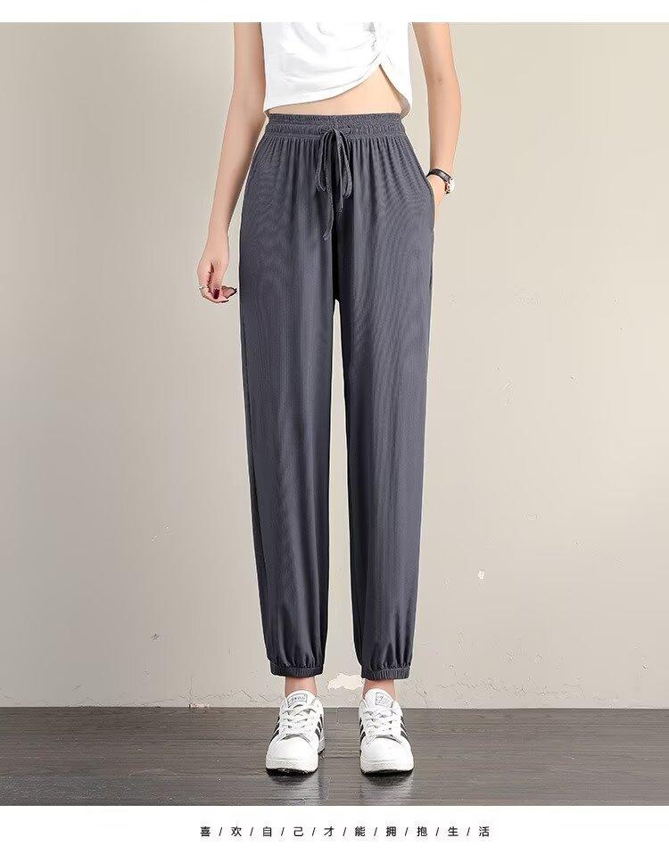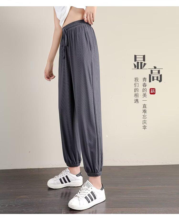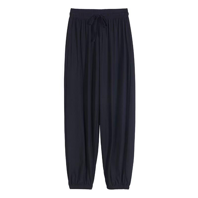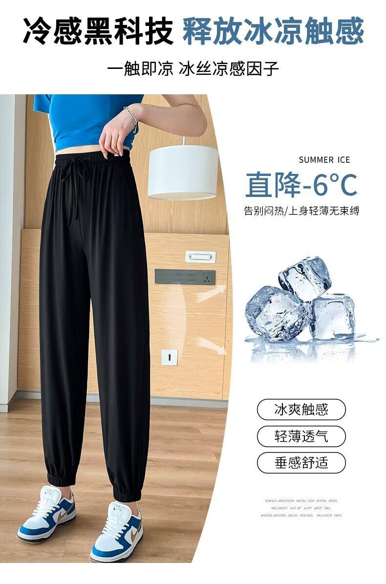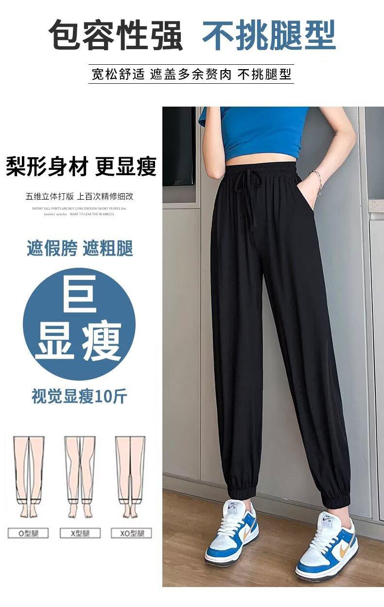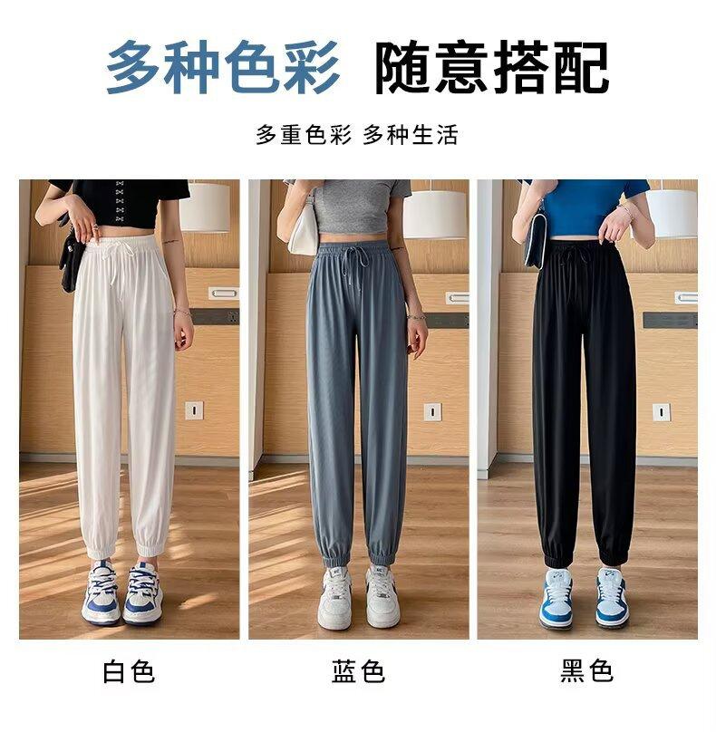Pantalones anchos de seda de hielo para mujer, nuevos pantalones de verano para chica gordita, ajustados, rectos y holgados, informales.