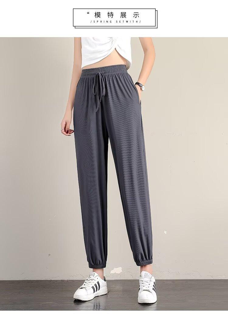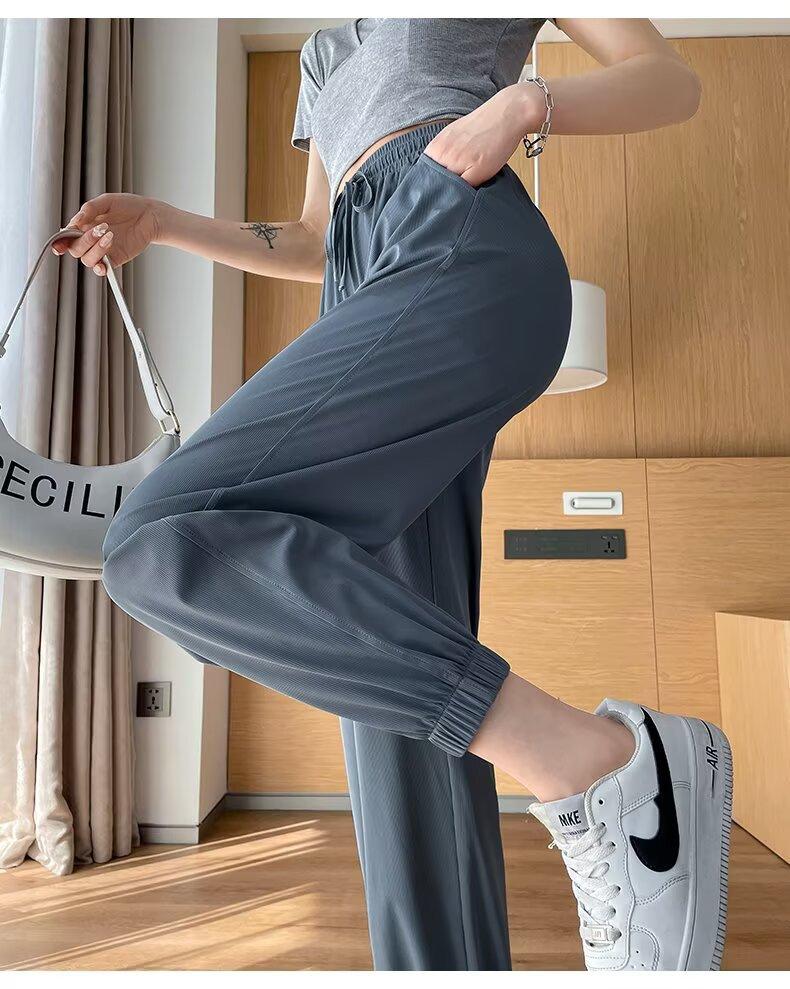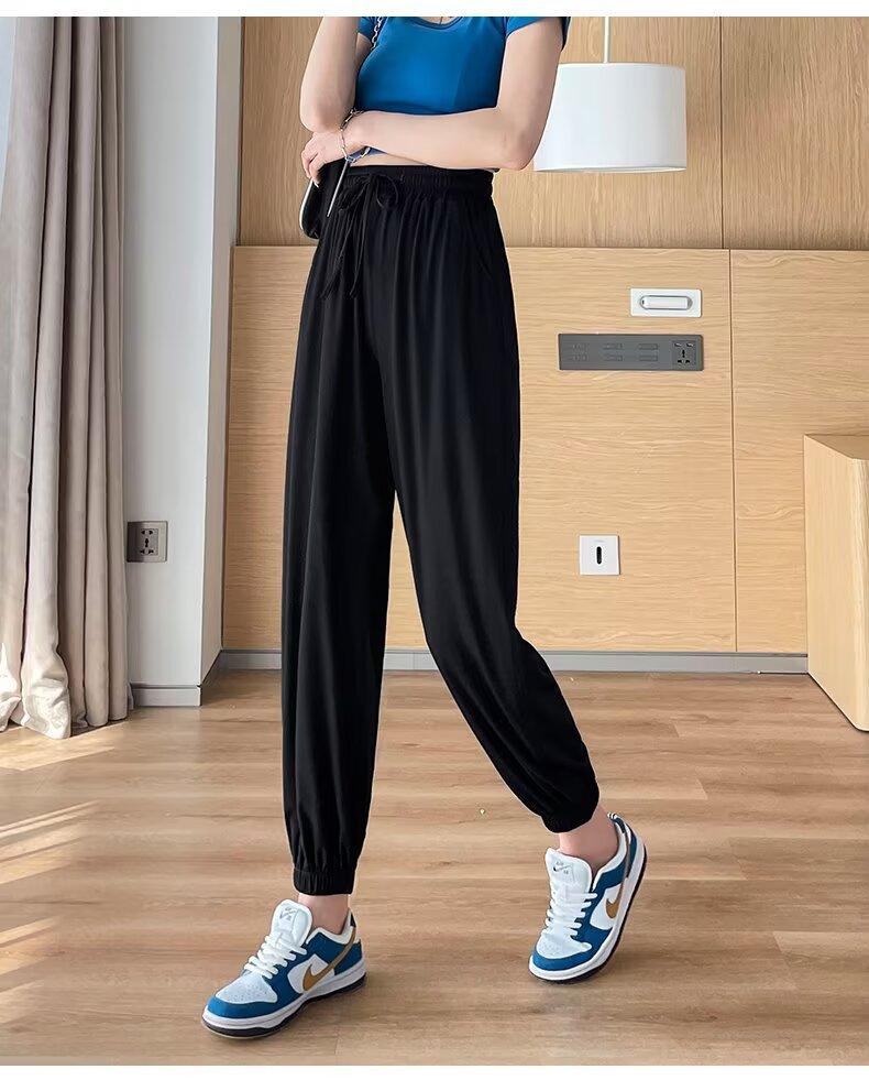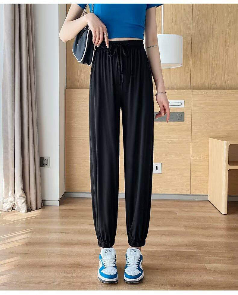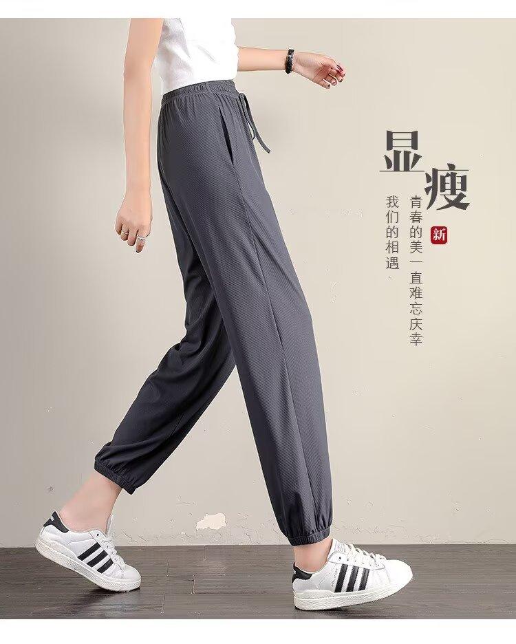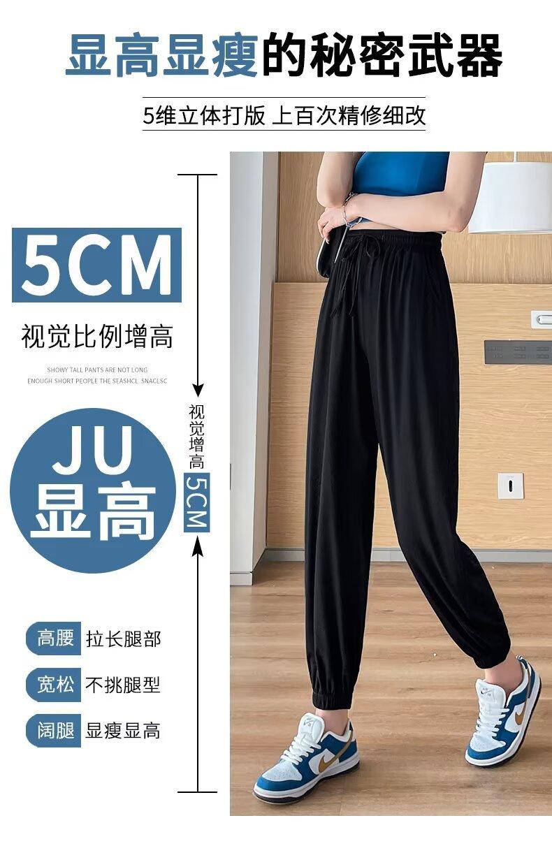 Pantalones anchos de seda de hielo para mujer, nuevos pantalones de verano para chica gordita, ajustados, rectos y holgados, informales.