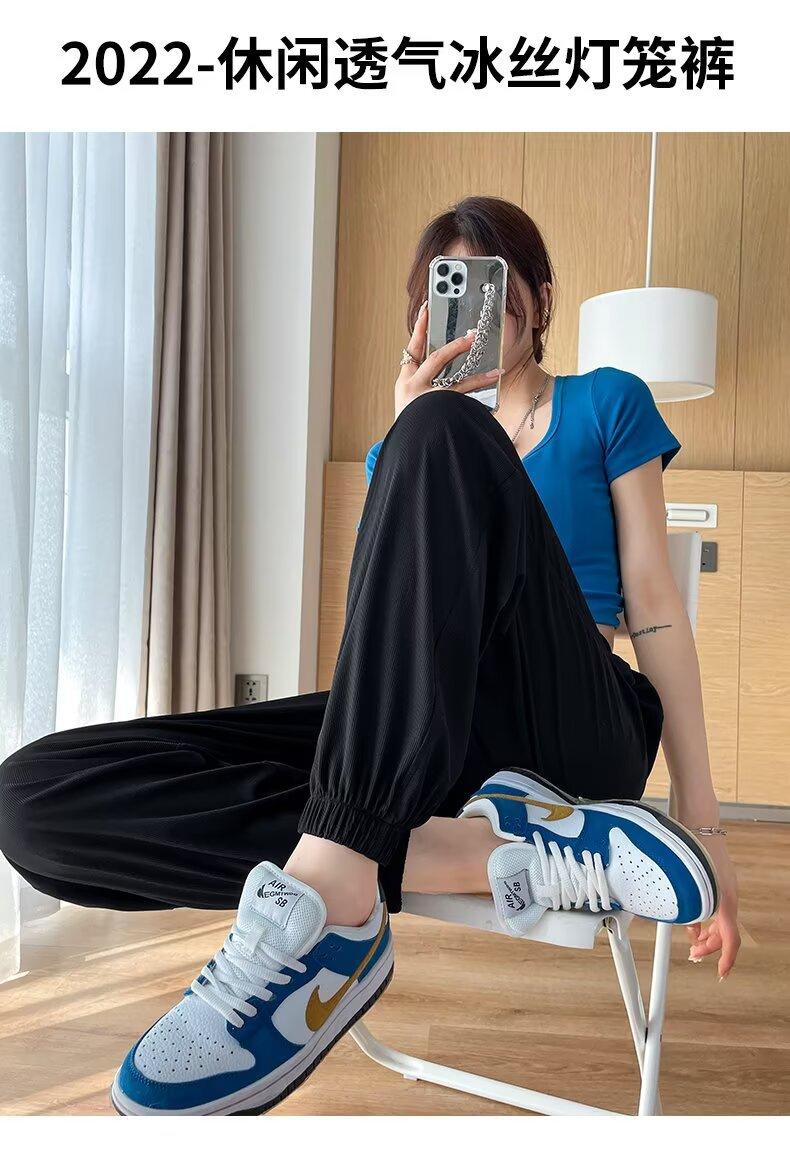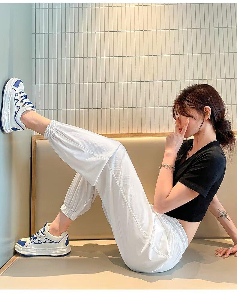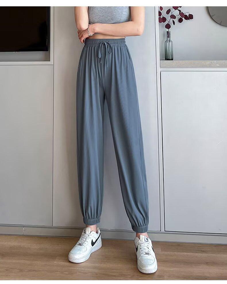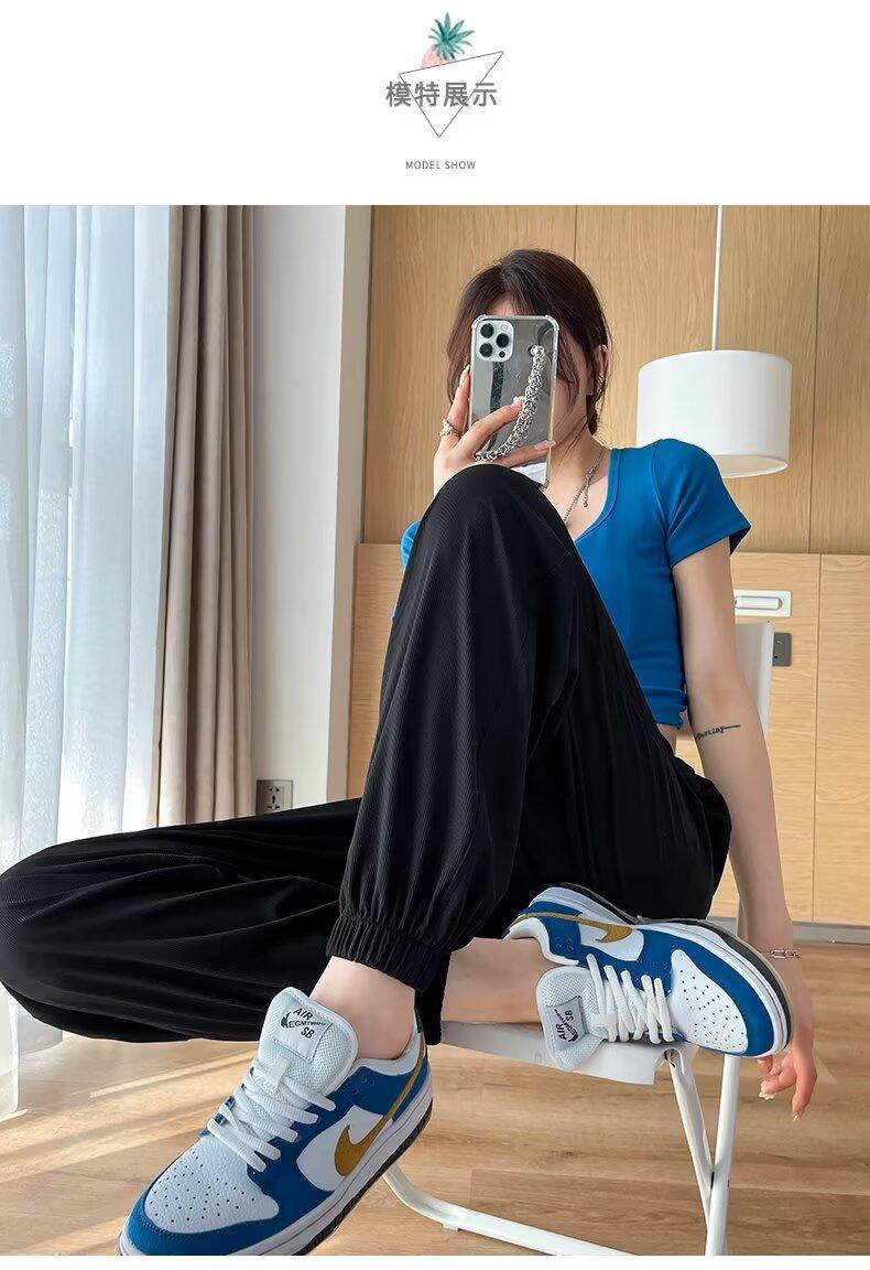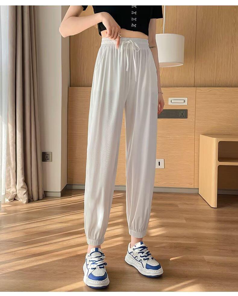 Pantalones anchos de seda de hielo para mujer, nuevos pantalones de verano para chica gordita, ajustados, rectos y holgados, informales.