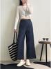 Calças Retas de Lyocell Anti-Desbotamento de Nove Pontos de Perna Larga Verão 2025 Novo Jeans Azul Escuro Solto Slim para Mulheres