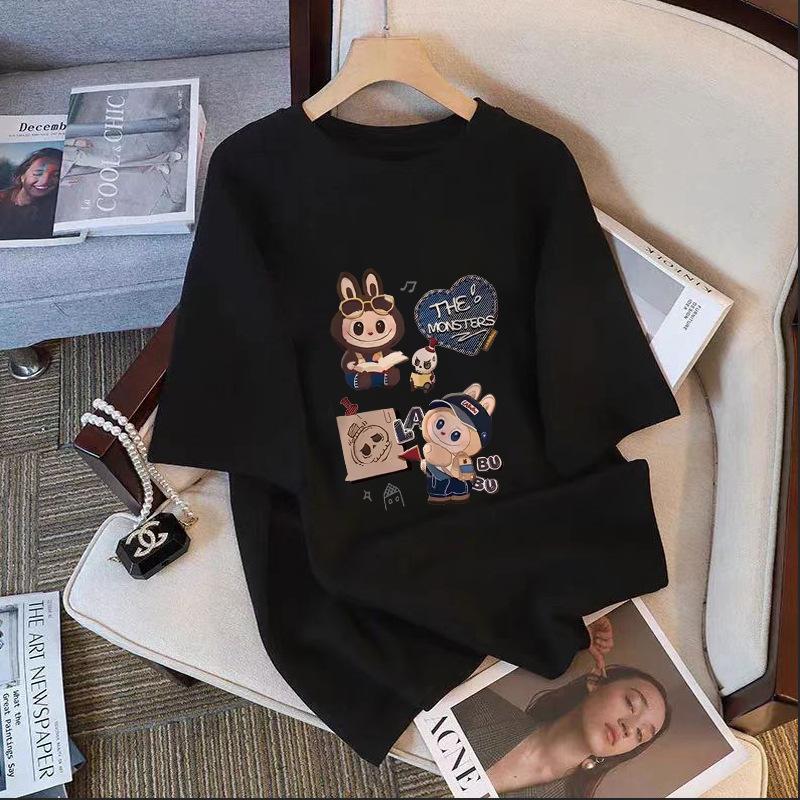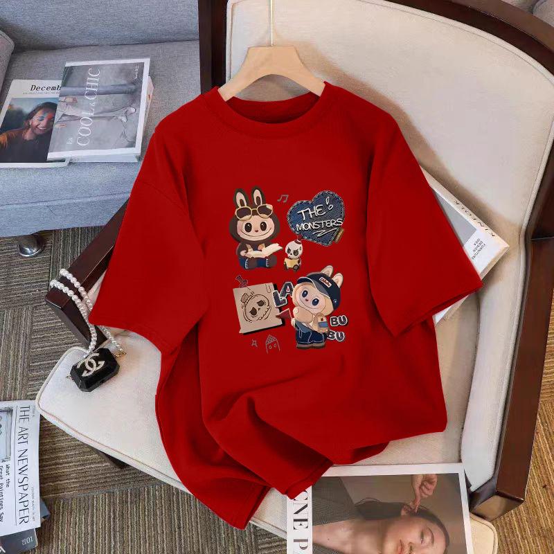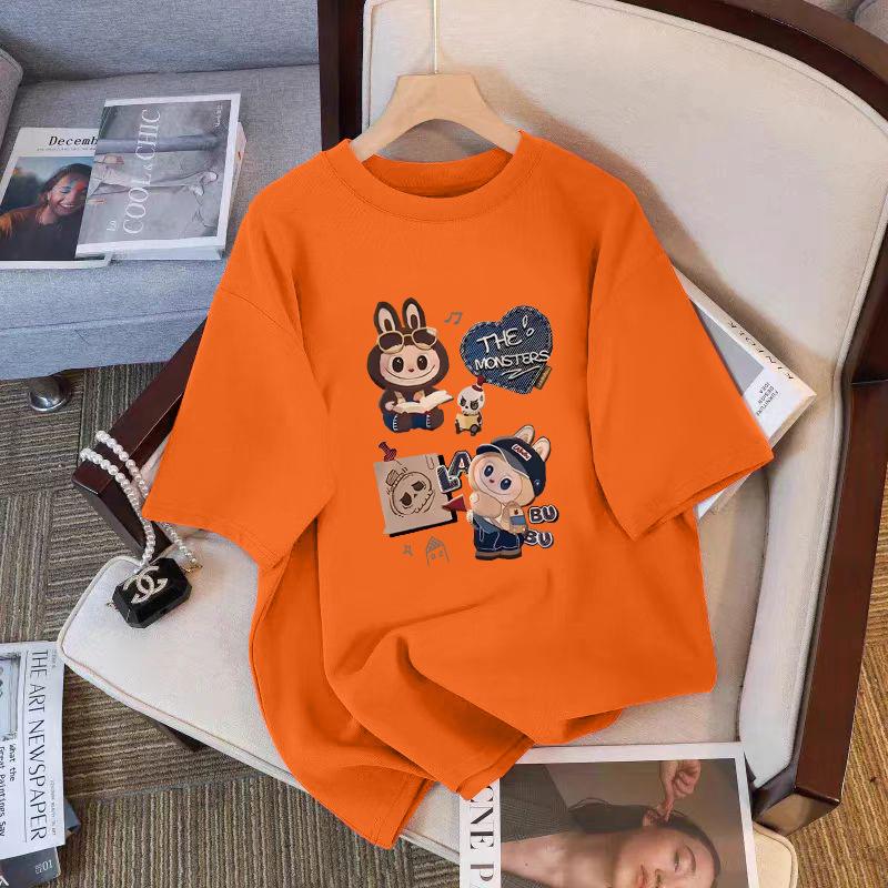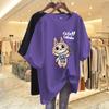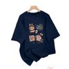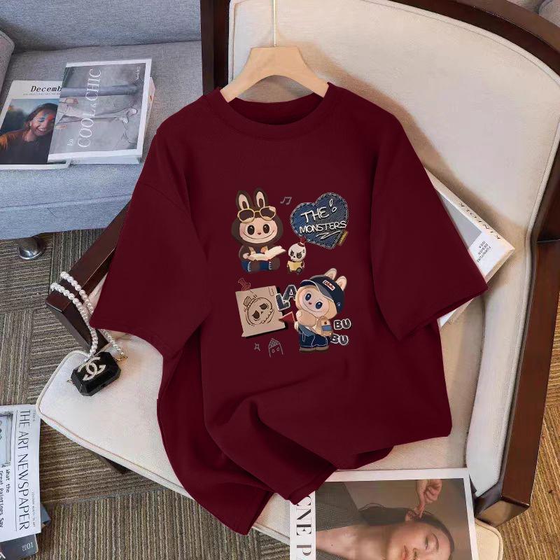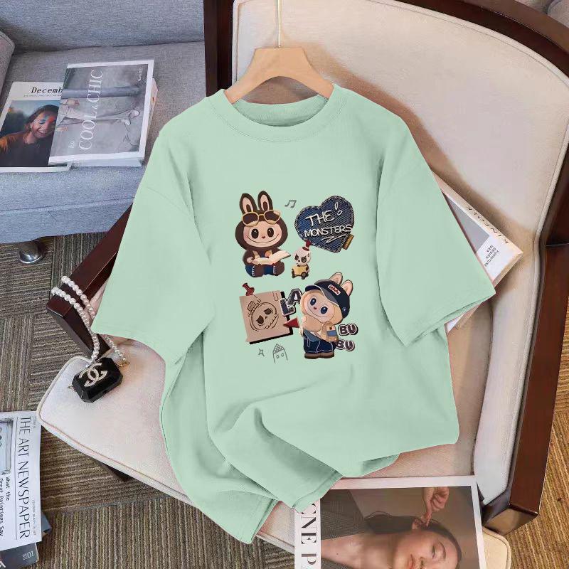 Camiseta de Manga Corta con Estampado de Dibujos Animados para Mujer 100% Algodón Puro Verano Nuevo Estilo Top de Punto Versátil Moda Camiseta Holgada