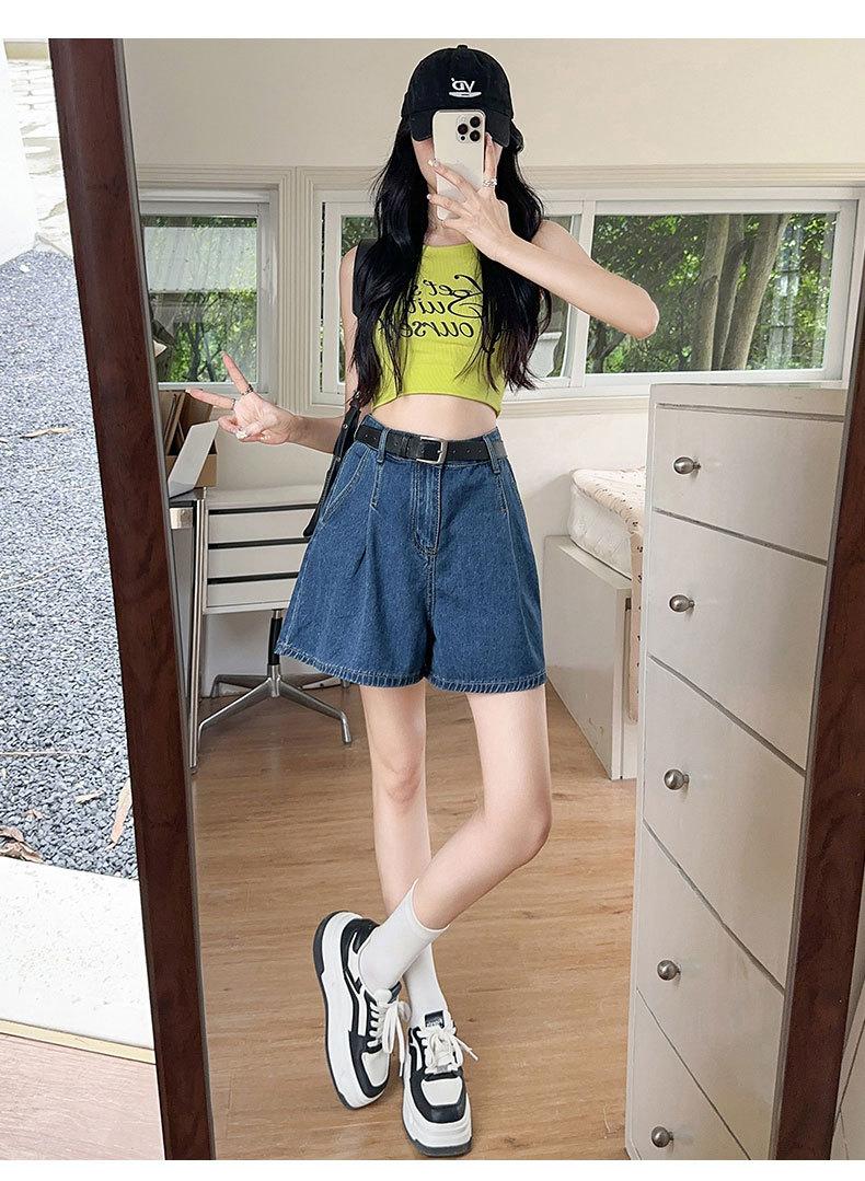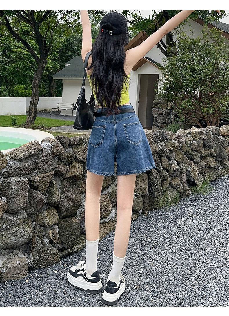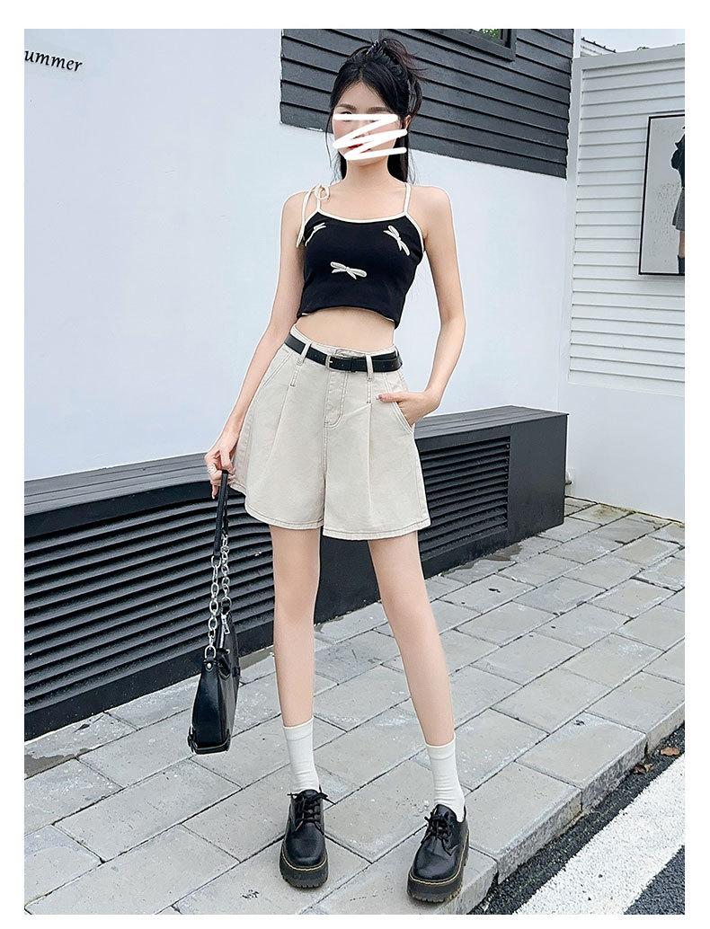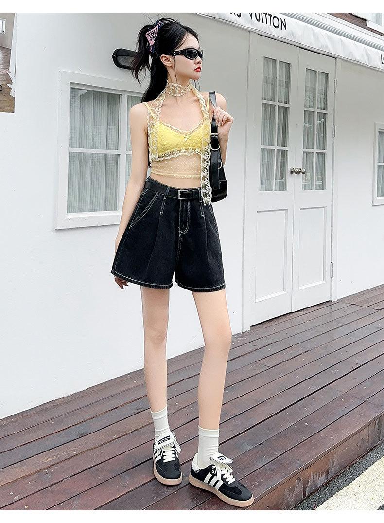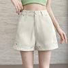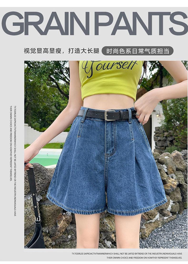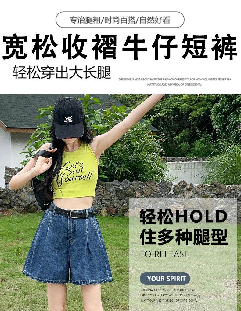 [Cinturón de Regalo] Shorts de Mezclilla de Pierna Ancha para Mujer Primavera/Verano 2025 Nuevo Diseño con Pliegues en Forma de A Shorts de Chica Caliente