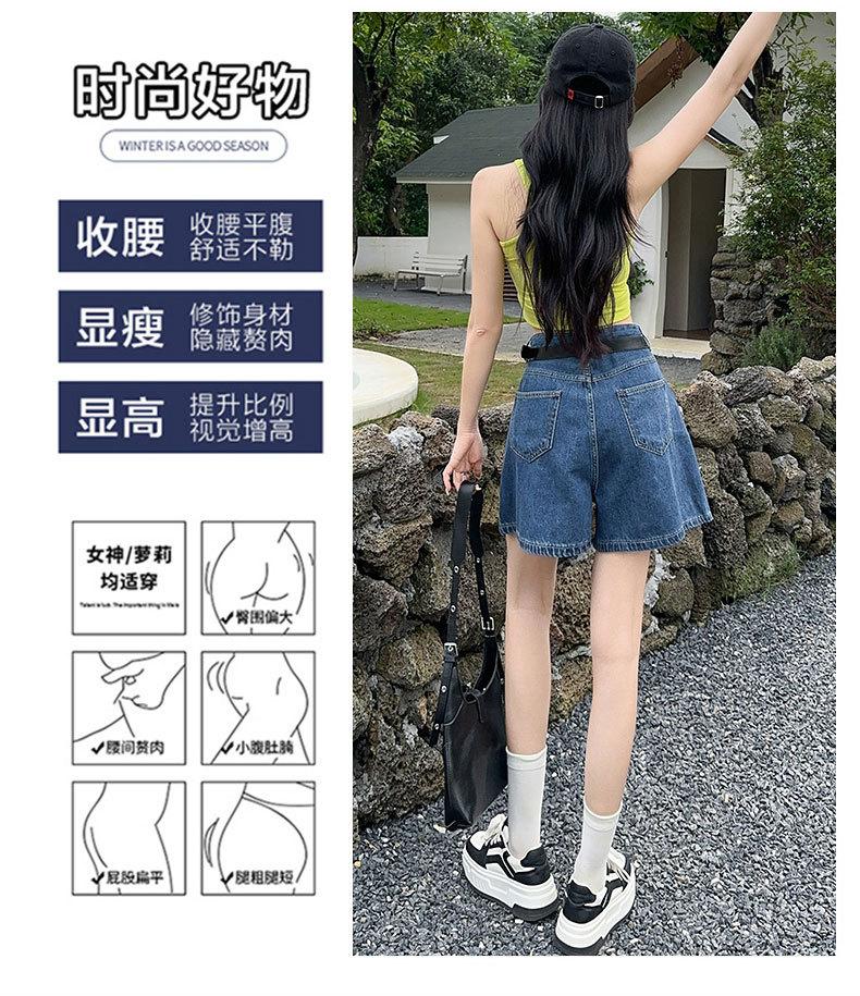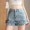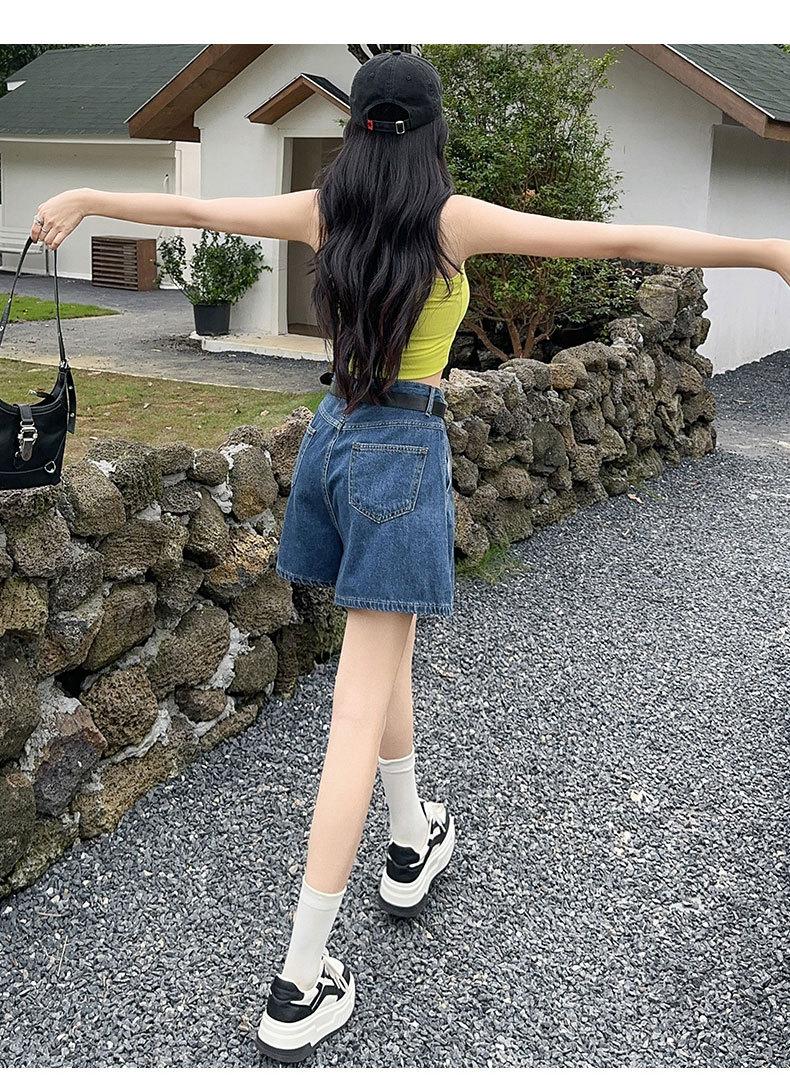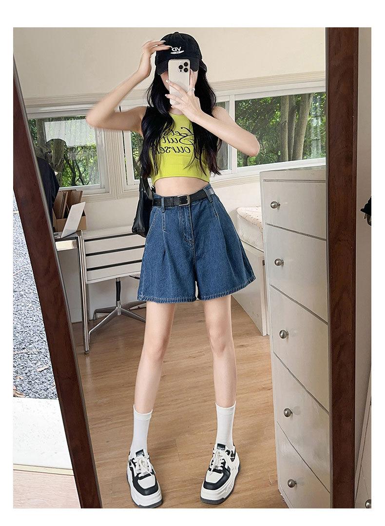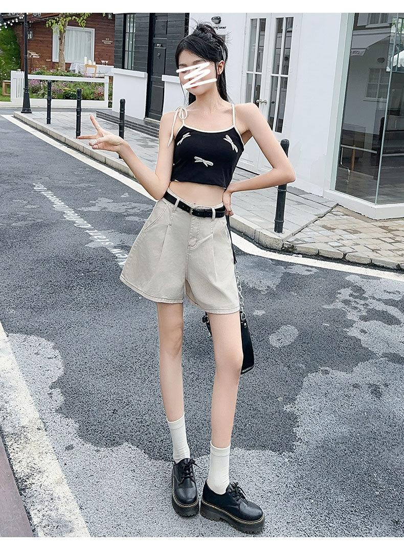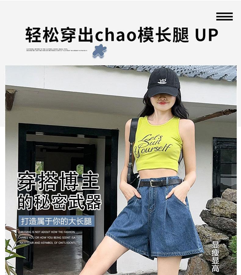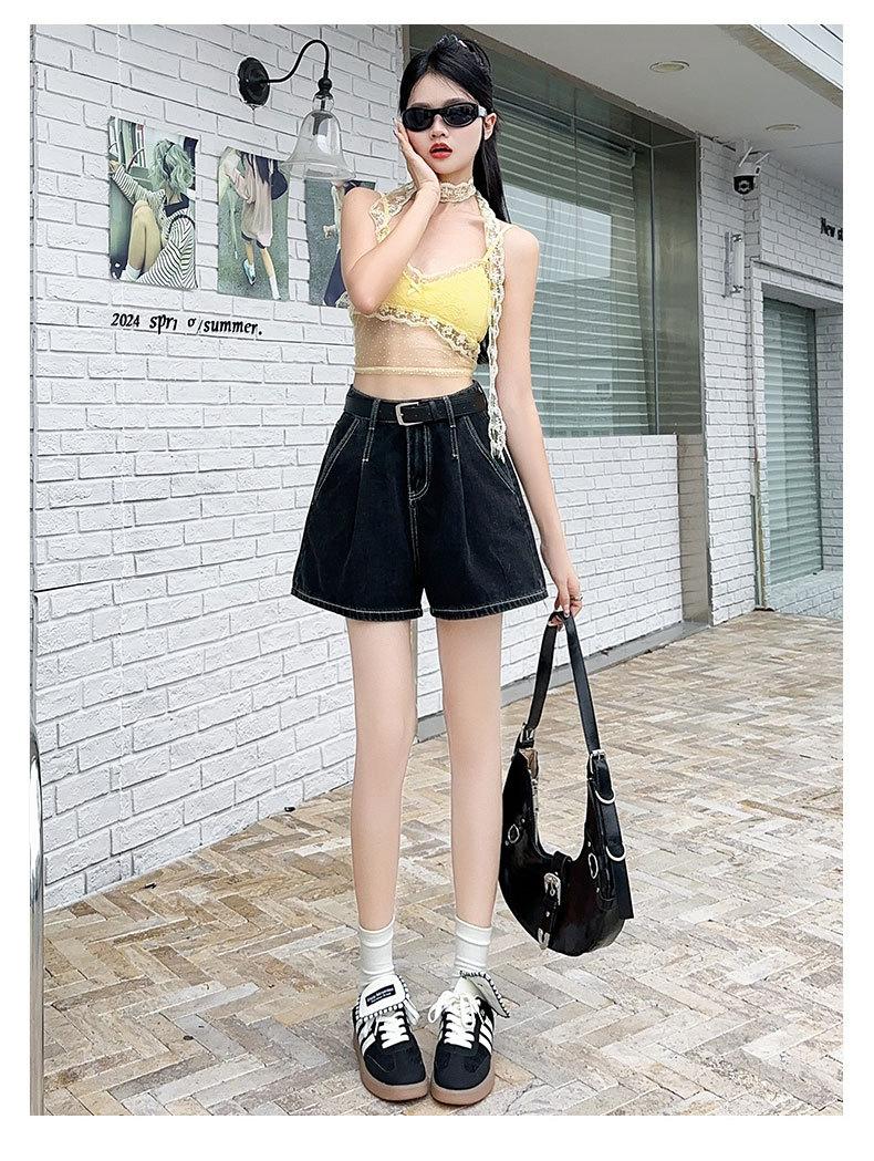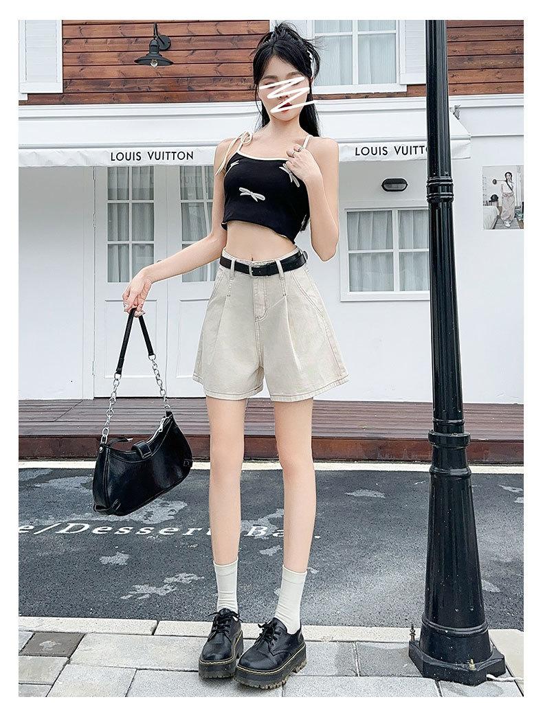 [Cinturón de Regalo] Shorts de Mezclilla de Pierna Ancha para Mujer Primavera/Verano 2025 Nuevo Diseño con Pliegues en Forma de A Shorts de Chica Caliente