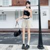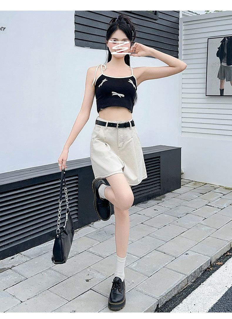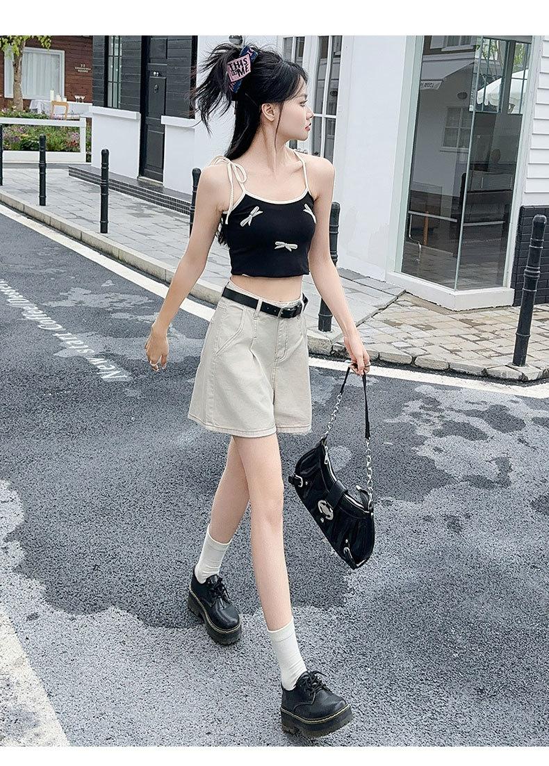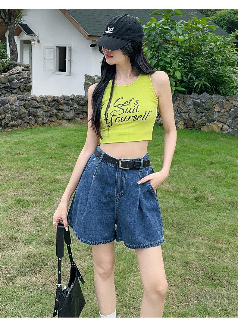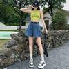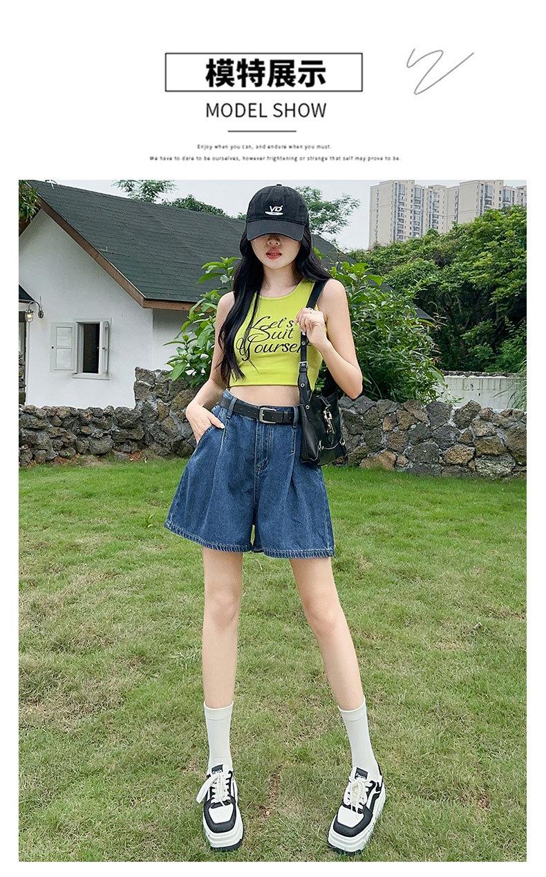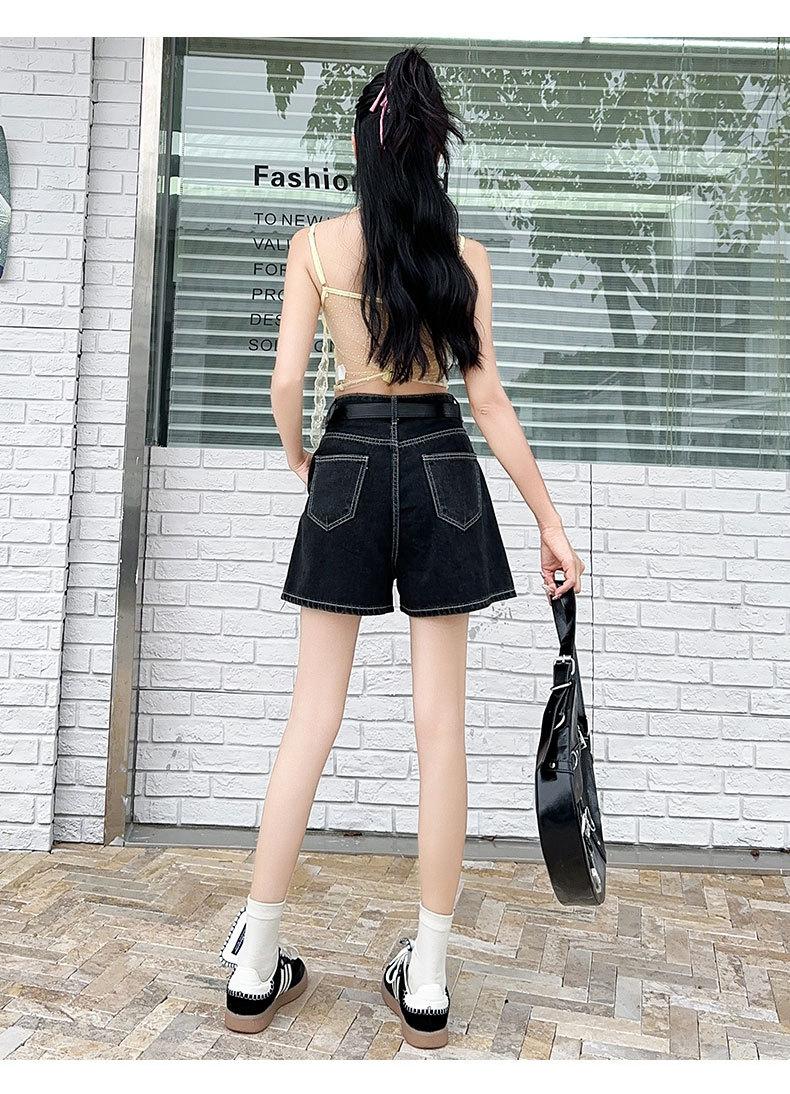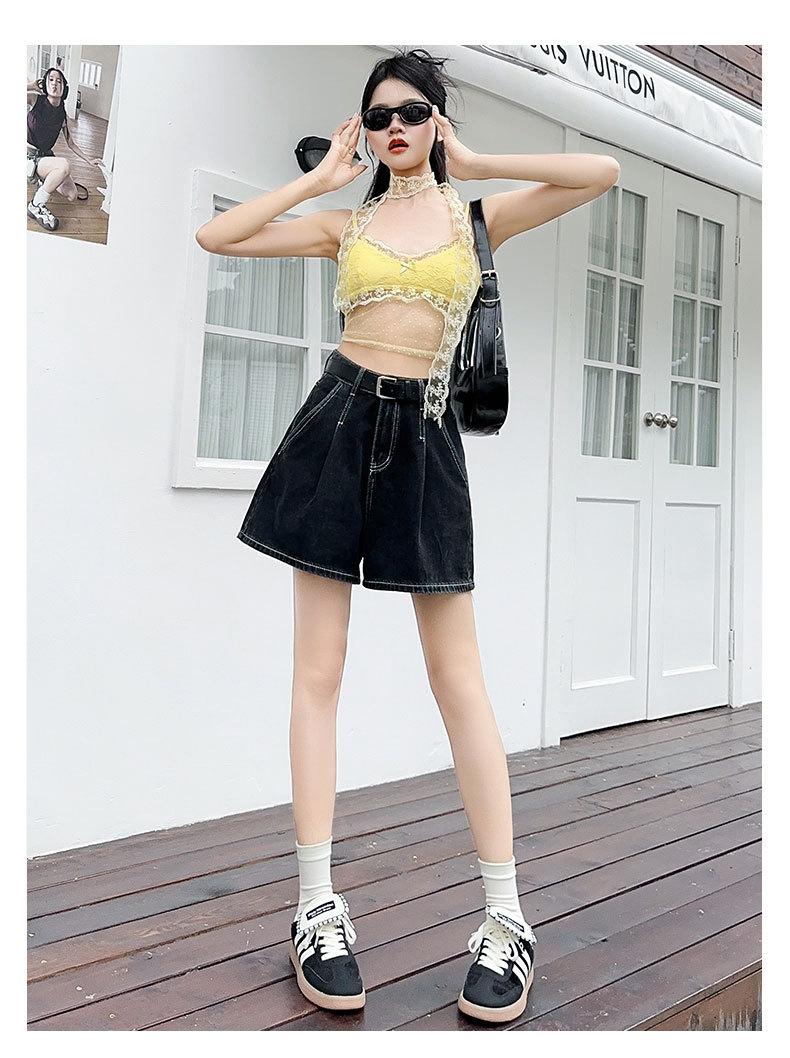 [Cinturón de Regalo] Shorts de Mezclilla de Pierna Ancha para Mujer Primavera/Verano 2025 Nuevo Diseño con Pliegues en Forma de A Shorts de Chica Caliente