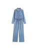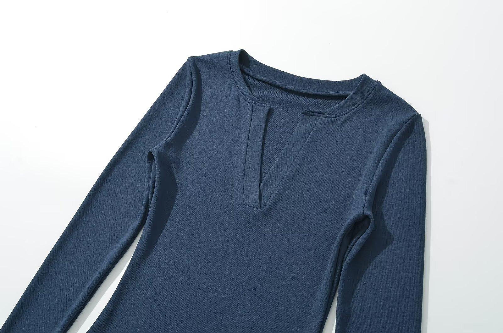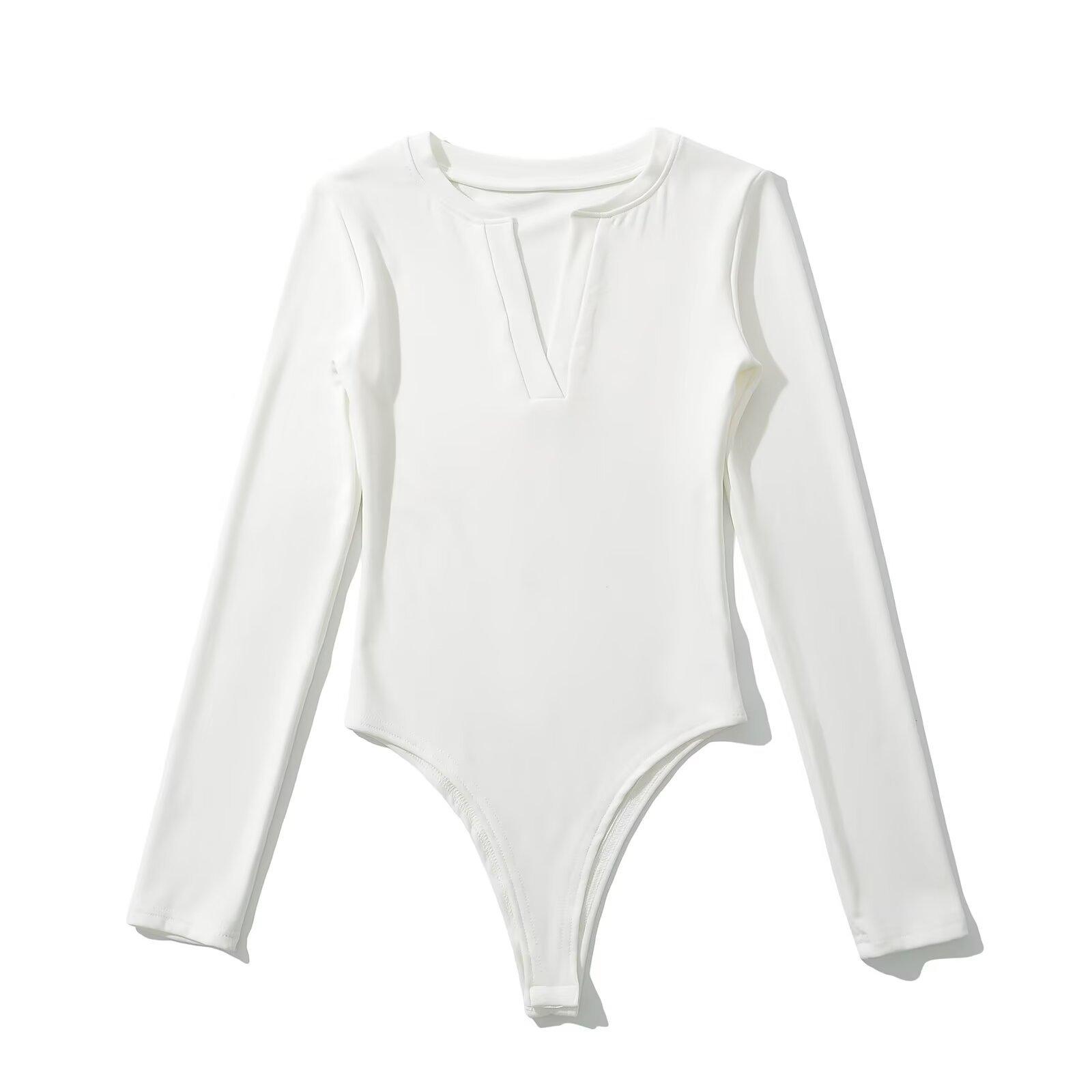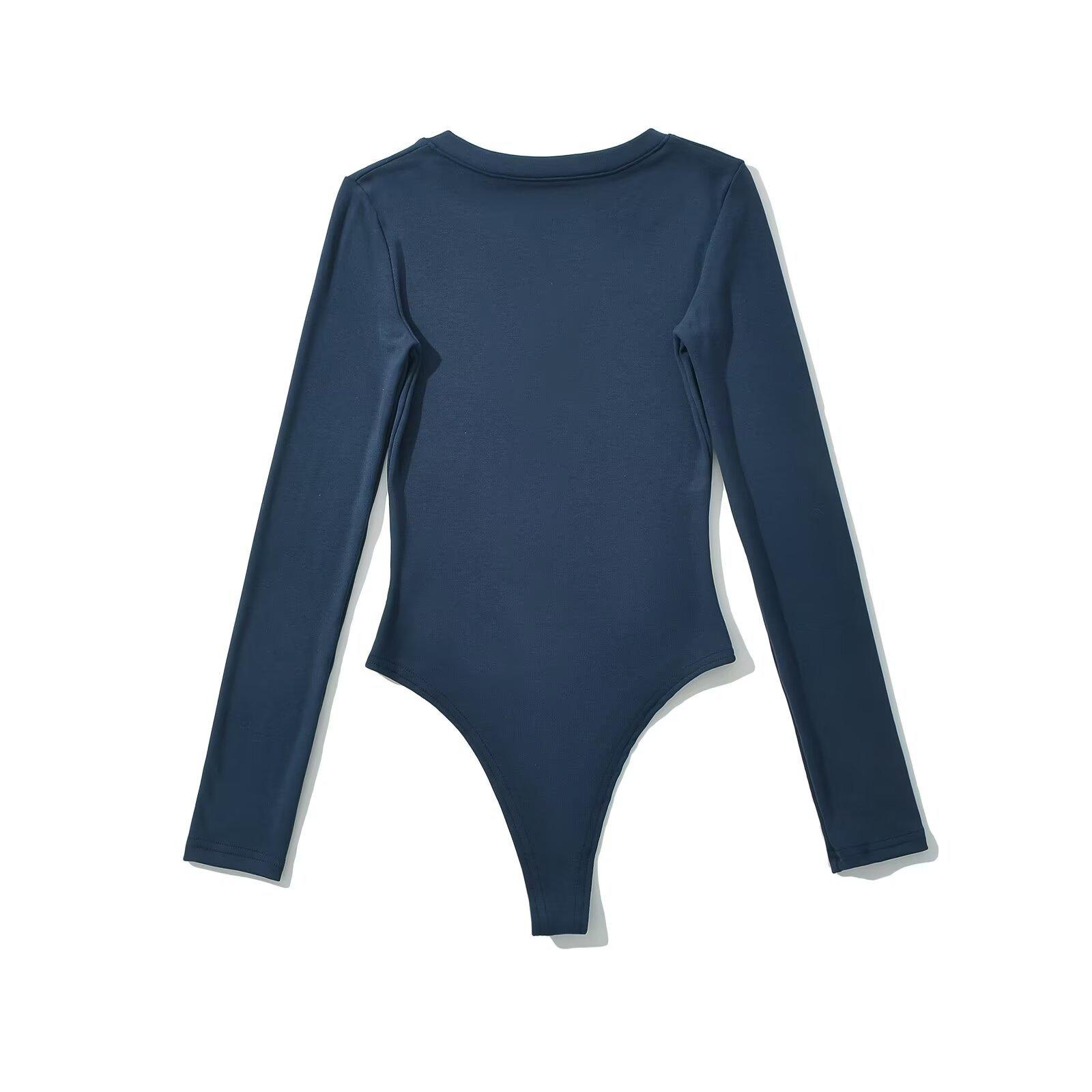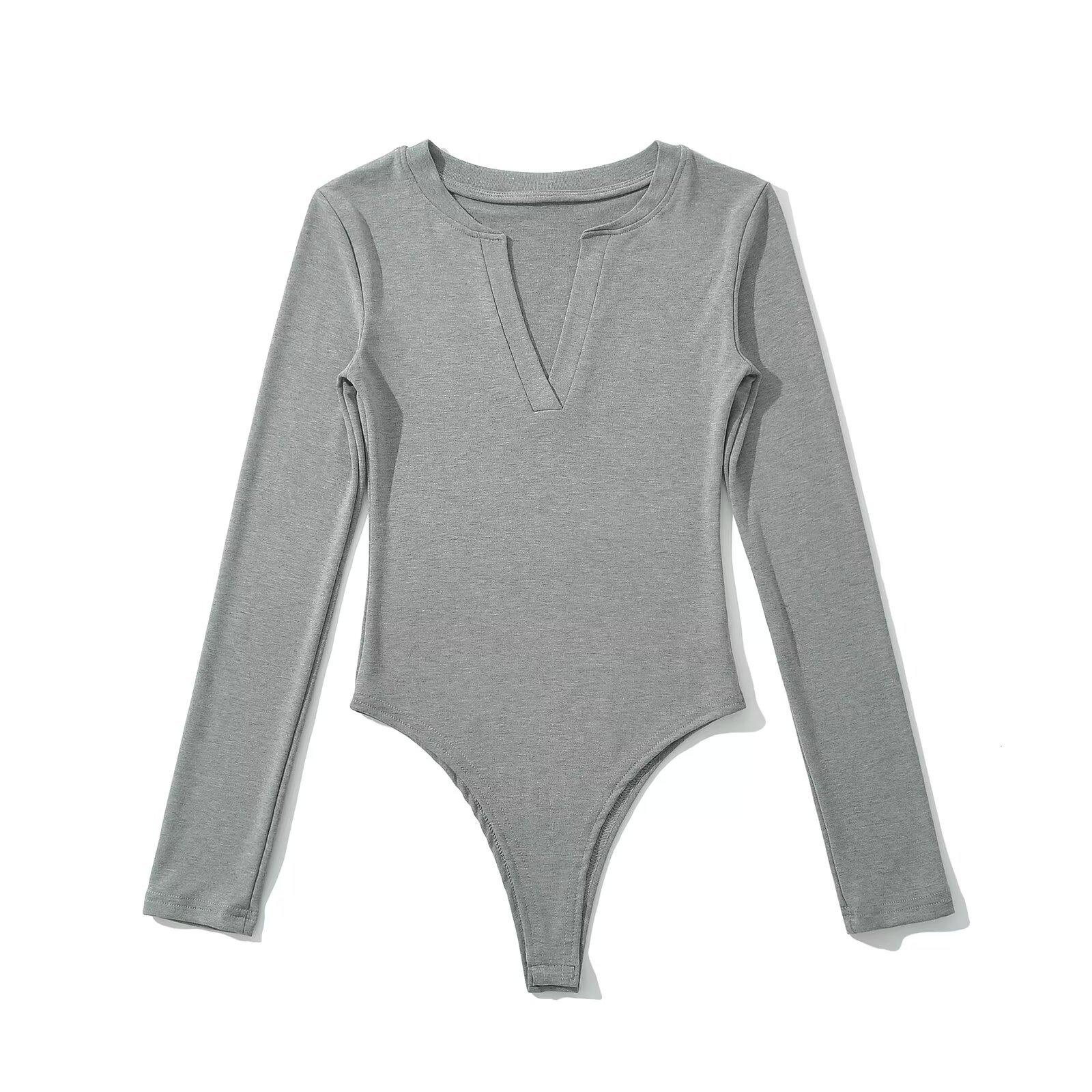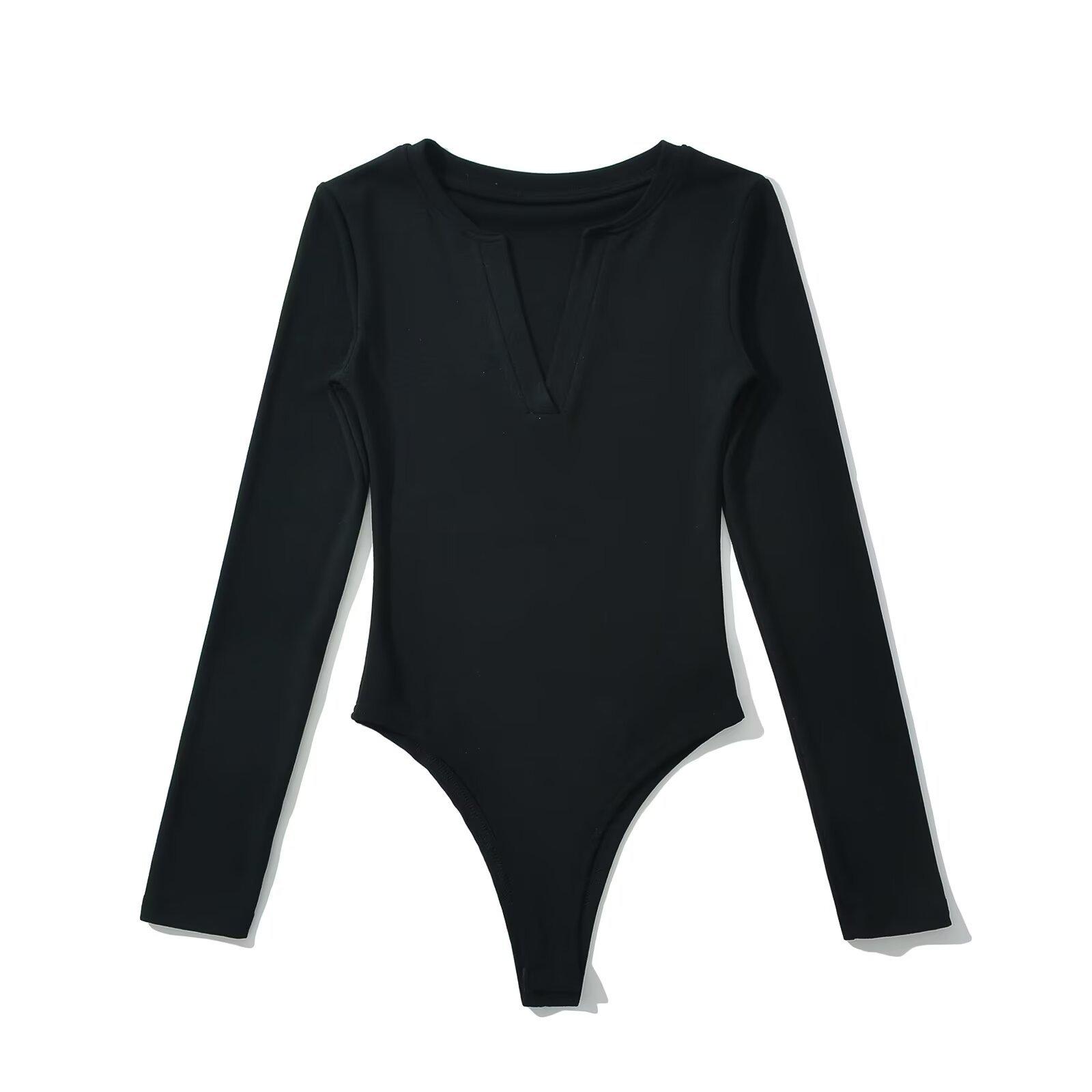 Exportación Transfronteriza Ropa de Mujer 2025 Verano Estilo Europeo y Americano Cuello en V Manga Larga Color Puro Ajustado Mono/Pantalón para Mujer Z168134