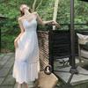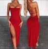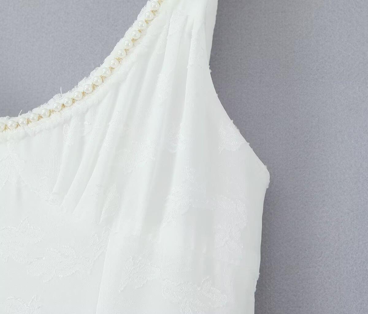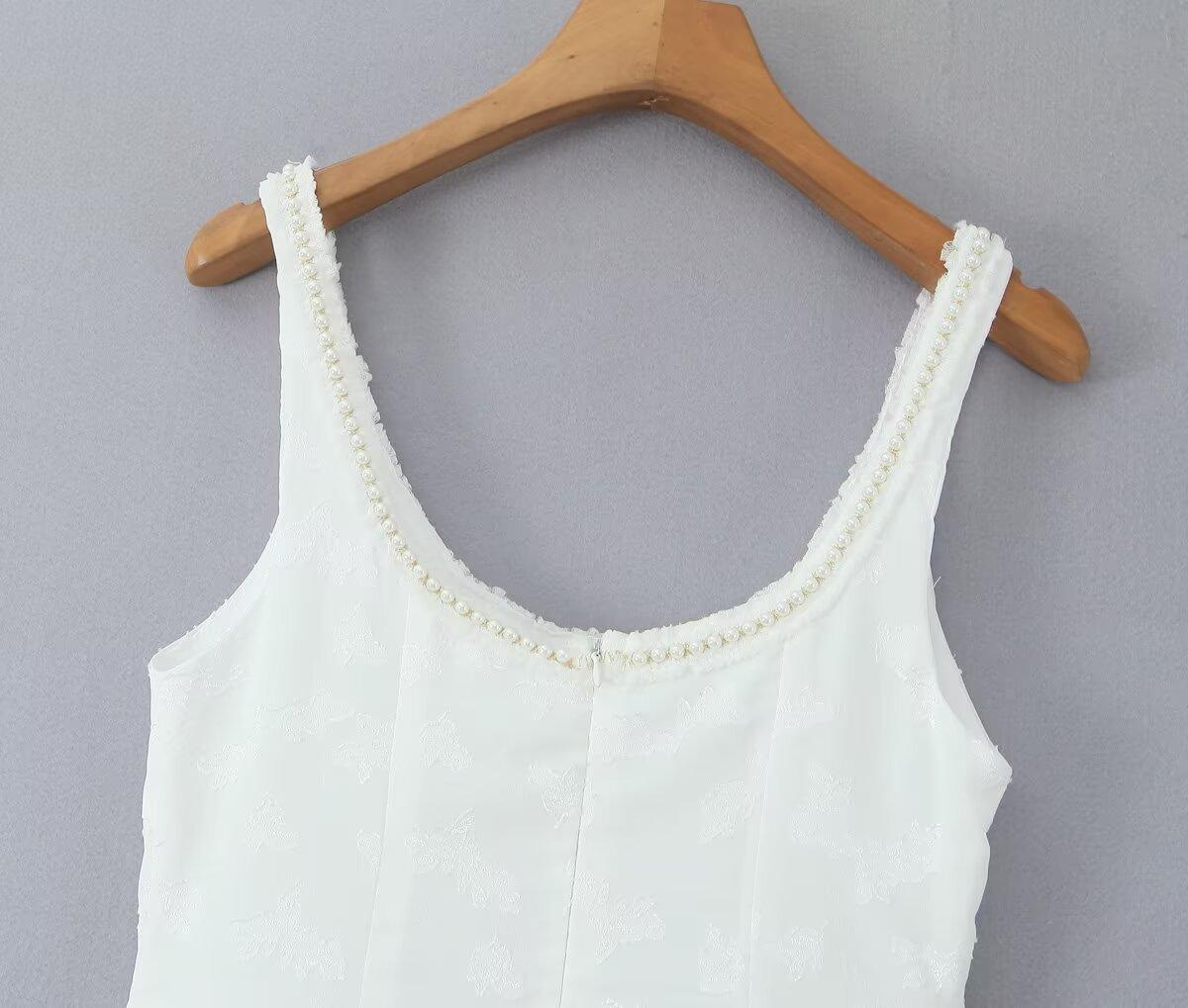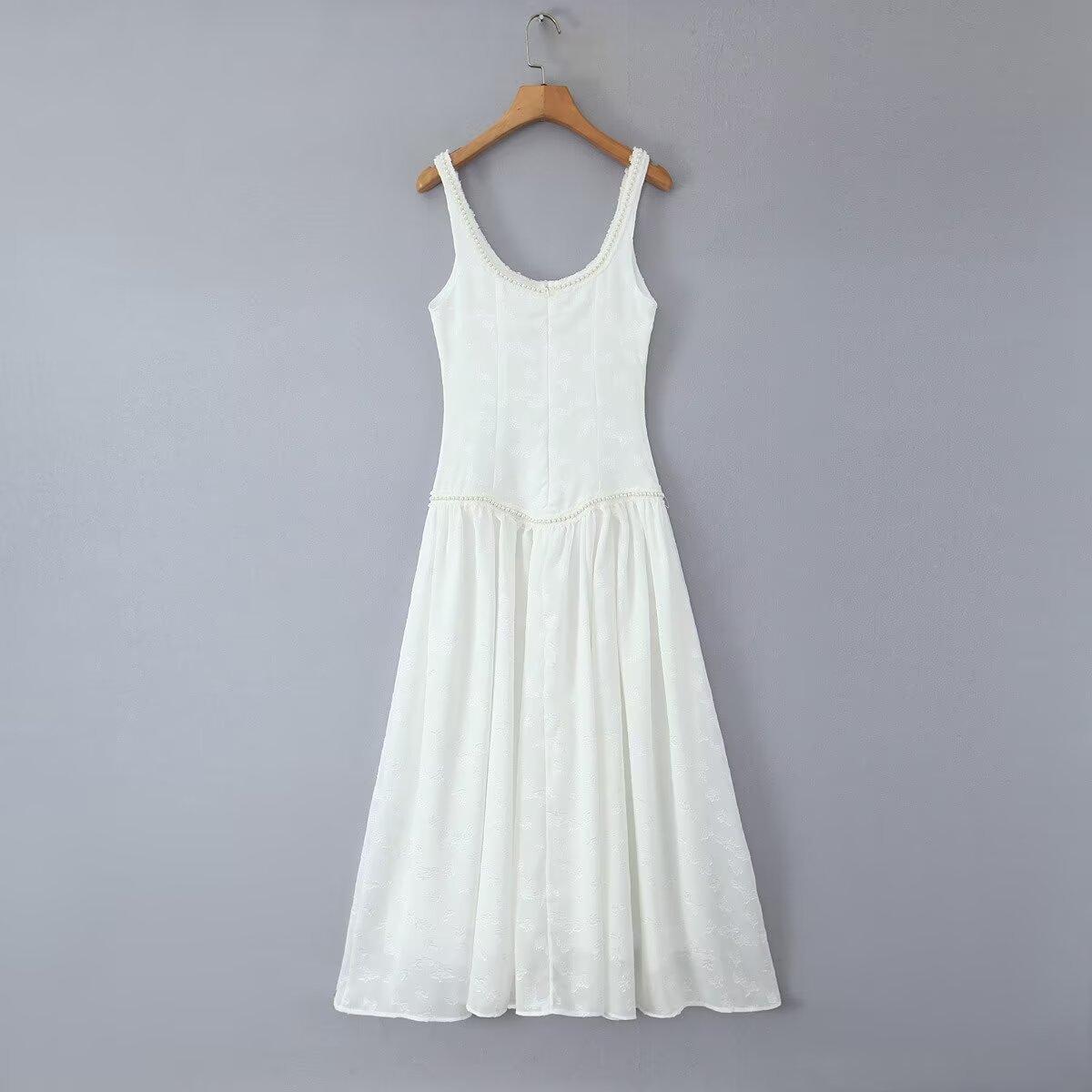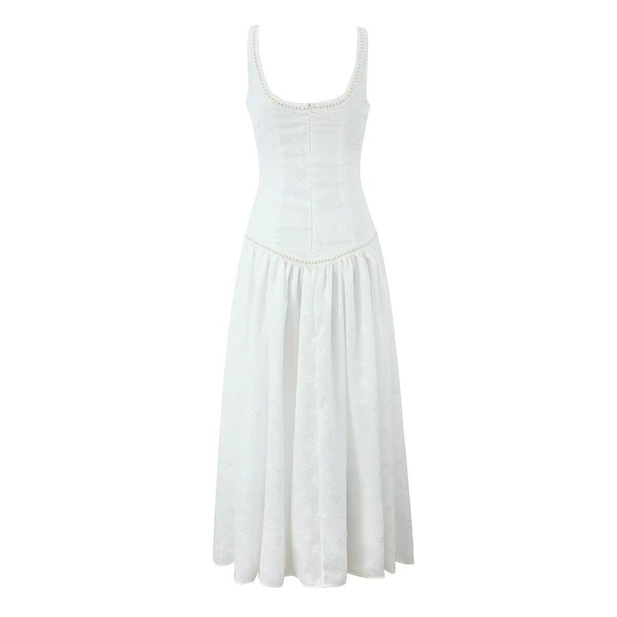 Vestido Largo Sexy con Abertura Estilo Europeo y Americano con Sentido del Diseño Ins Decorado con Perlas Jacquard Vestido de Tirantes para Vacaciones en la Playa de Mujer