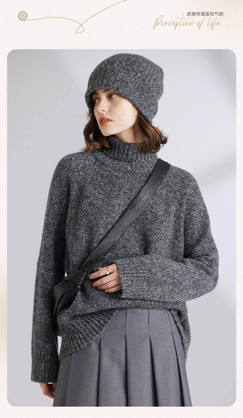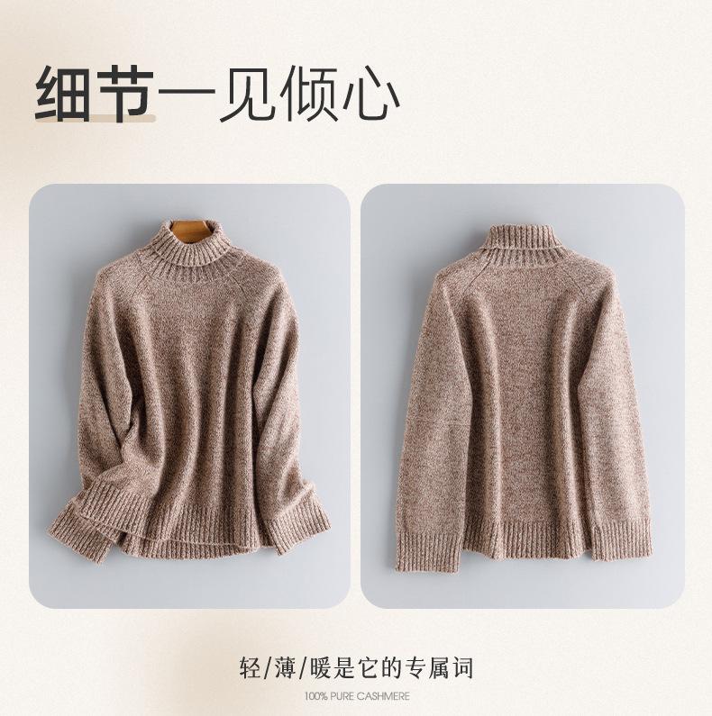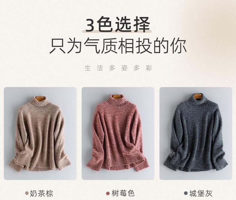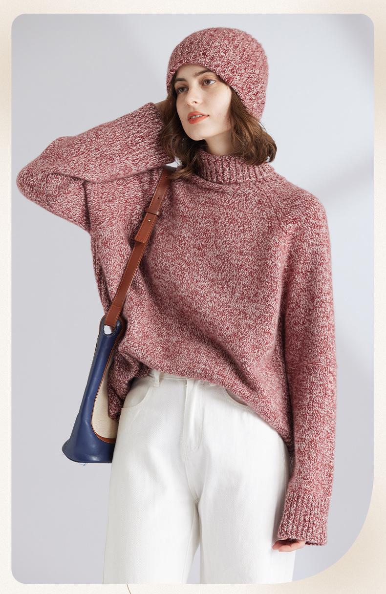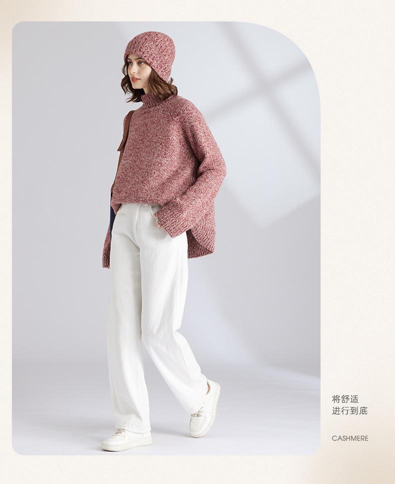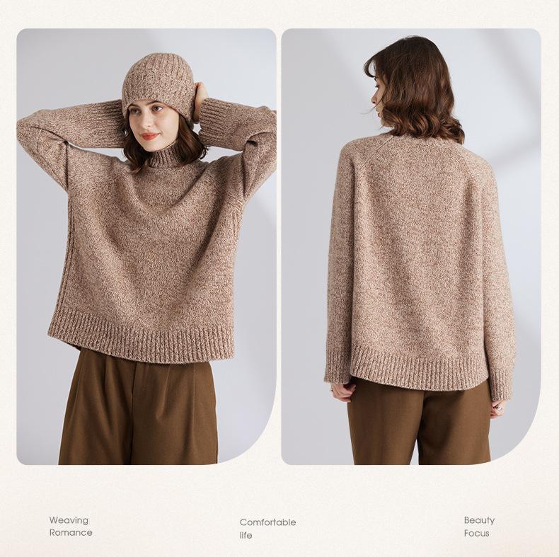 Suéter de Punto Versátil de Cachemira 100% Pura para Mujer, Cuello Alto, Grueso, Holgado, Casual, Sencillo, Estilo Lazy, Nuevo Otoño/Invierno