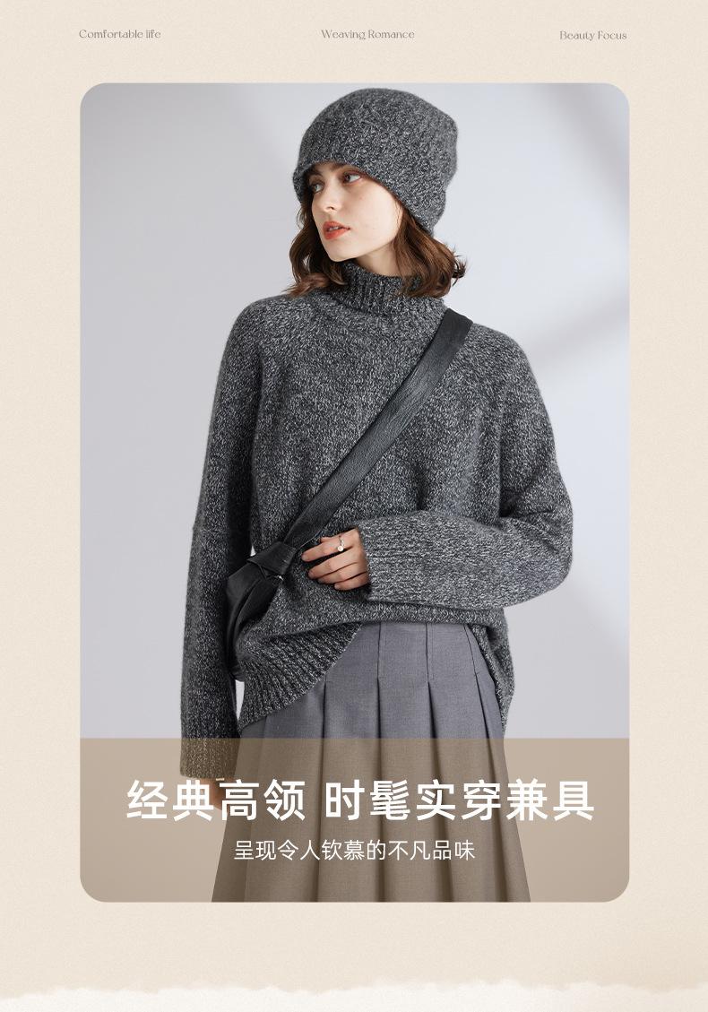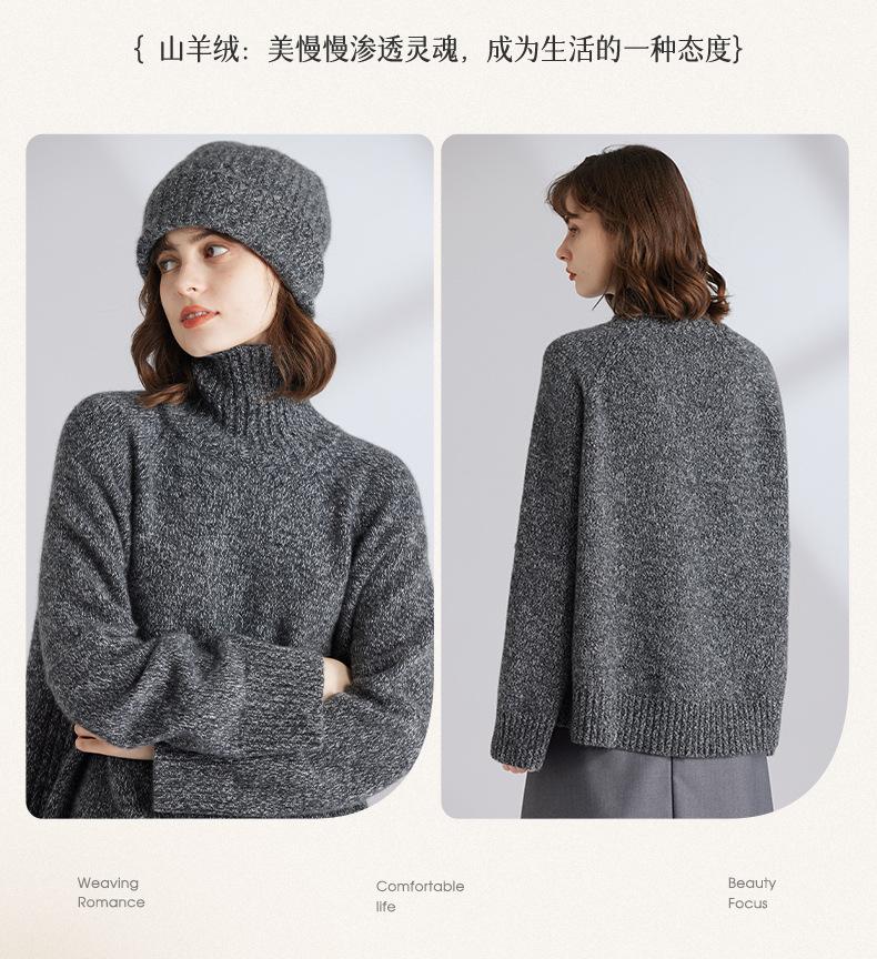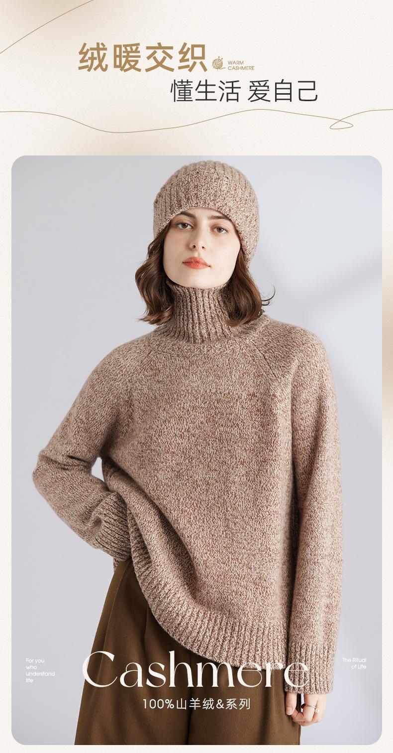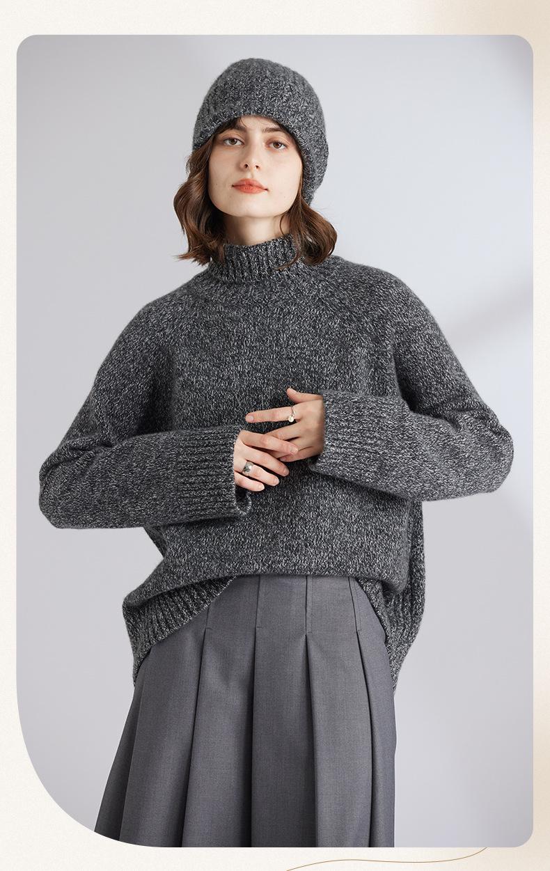 Suéter de Punto Versátil de Cachemira 100% Pura para Mujer, Cuello Alto, Grueso, Holgado, Casual, Sencillo, Estilo Lazy, Nuevo Otoño/Invierno