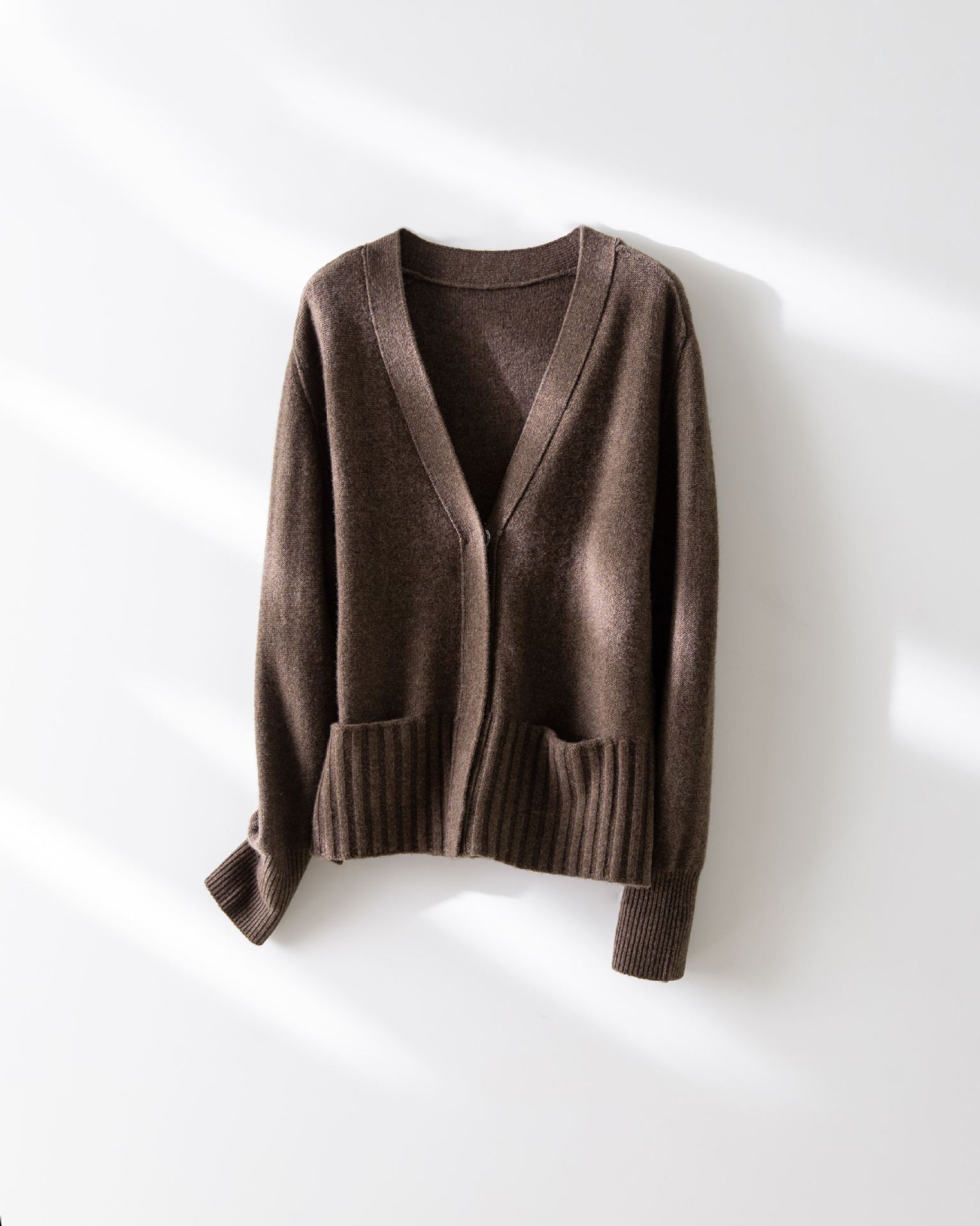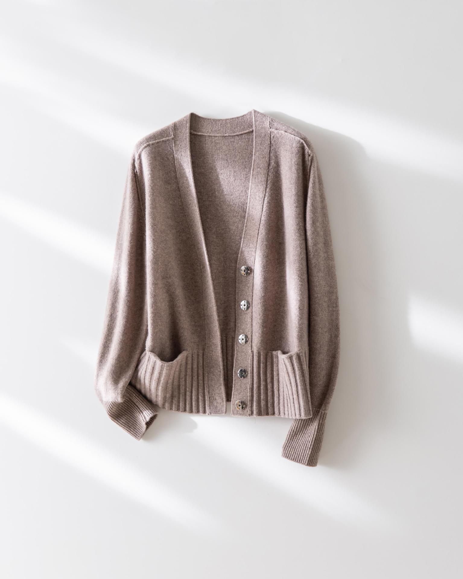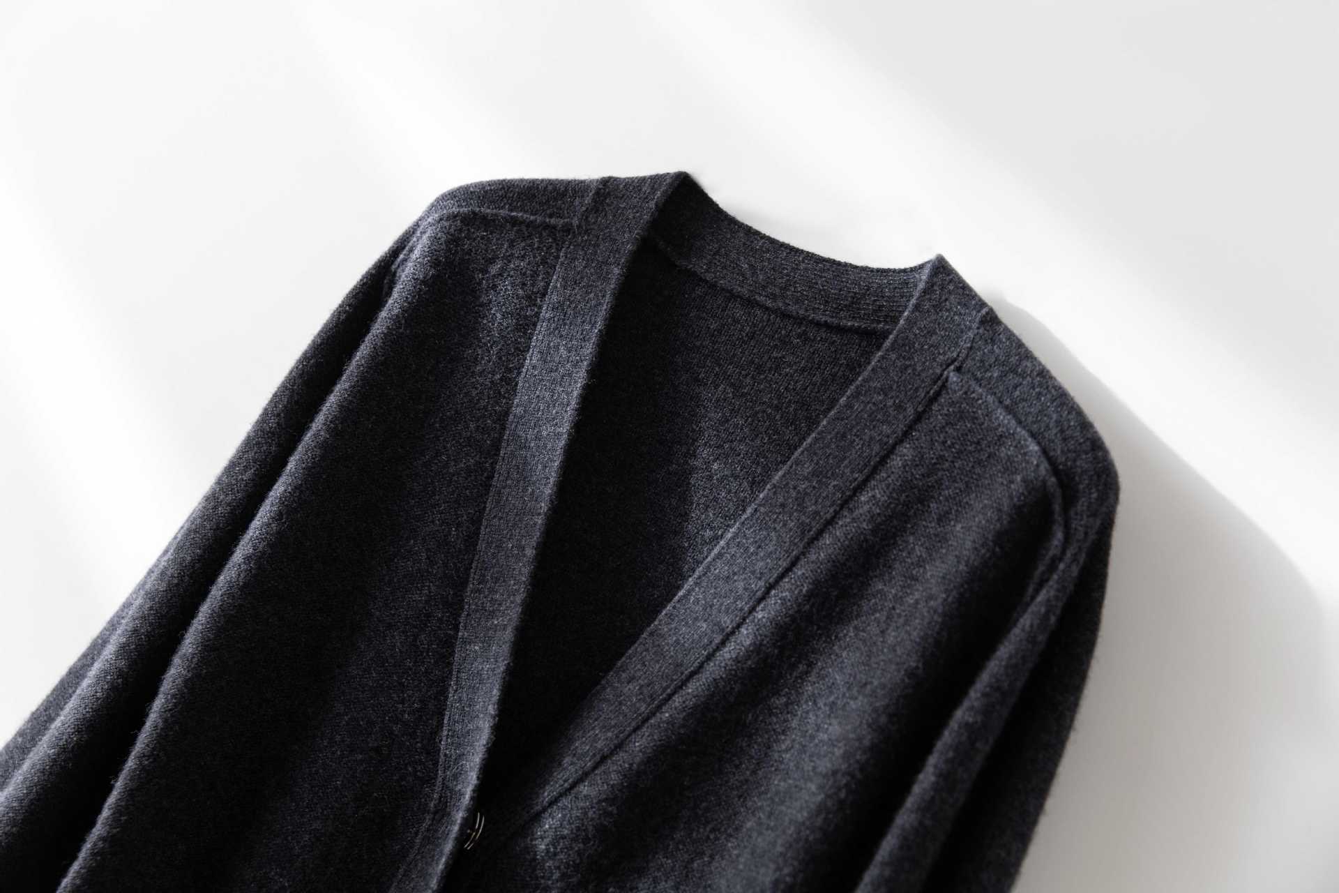 [Hengjia Qy] Cárdigan de Punto Grueso de Lana Virgen para Mujer con Cuello en V de 26 Botones, Versátil, Chaqueta Ajustada y Holgada