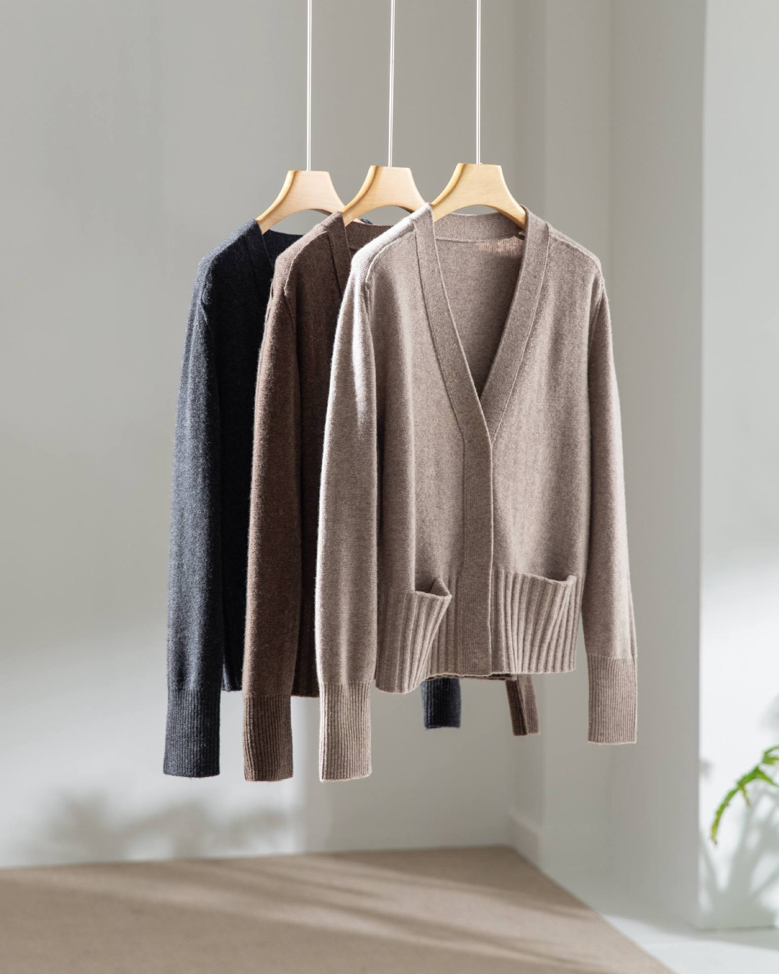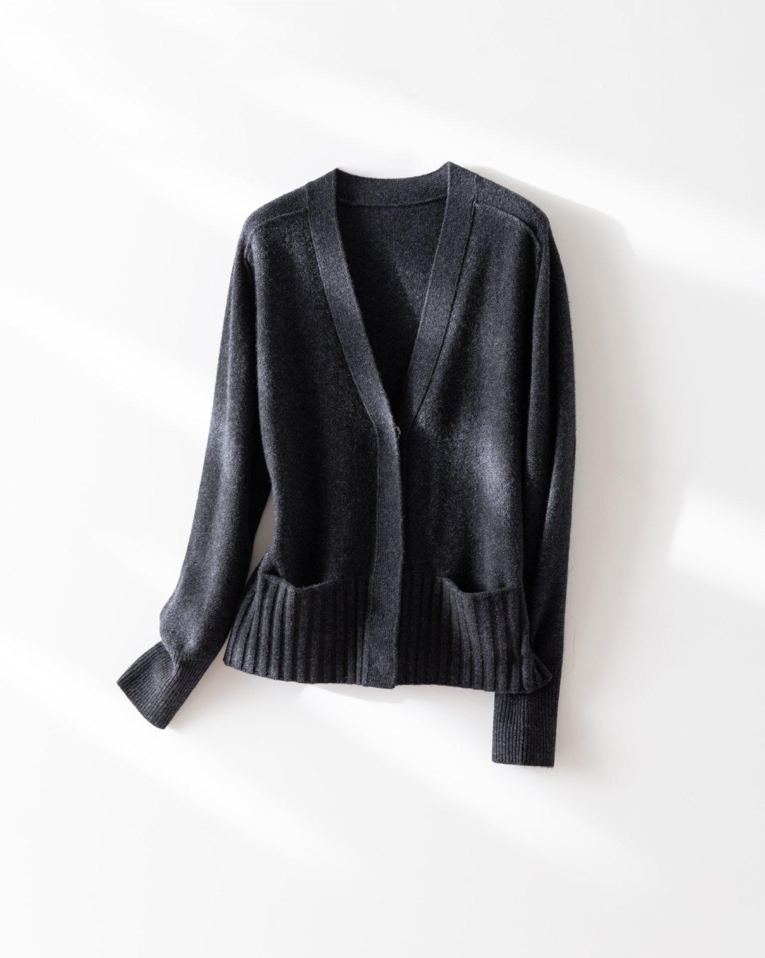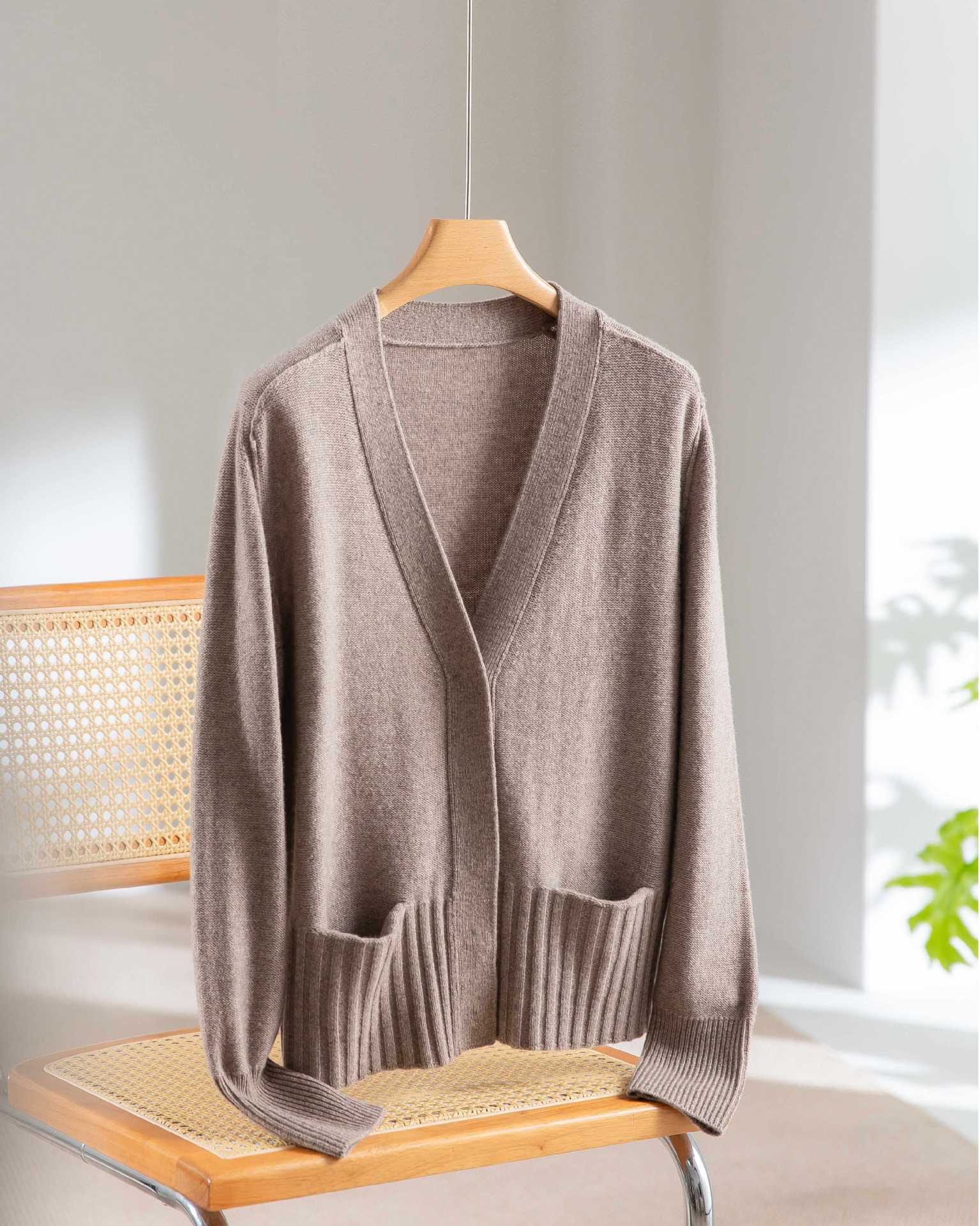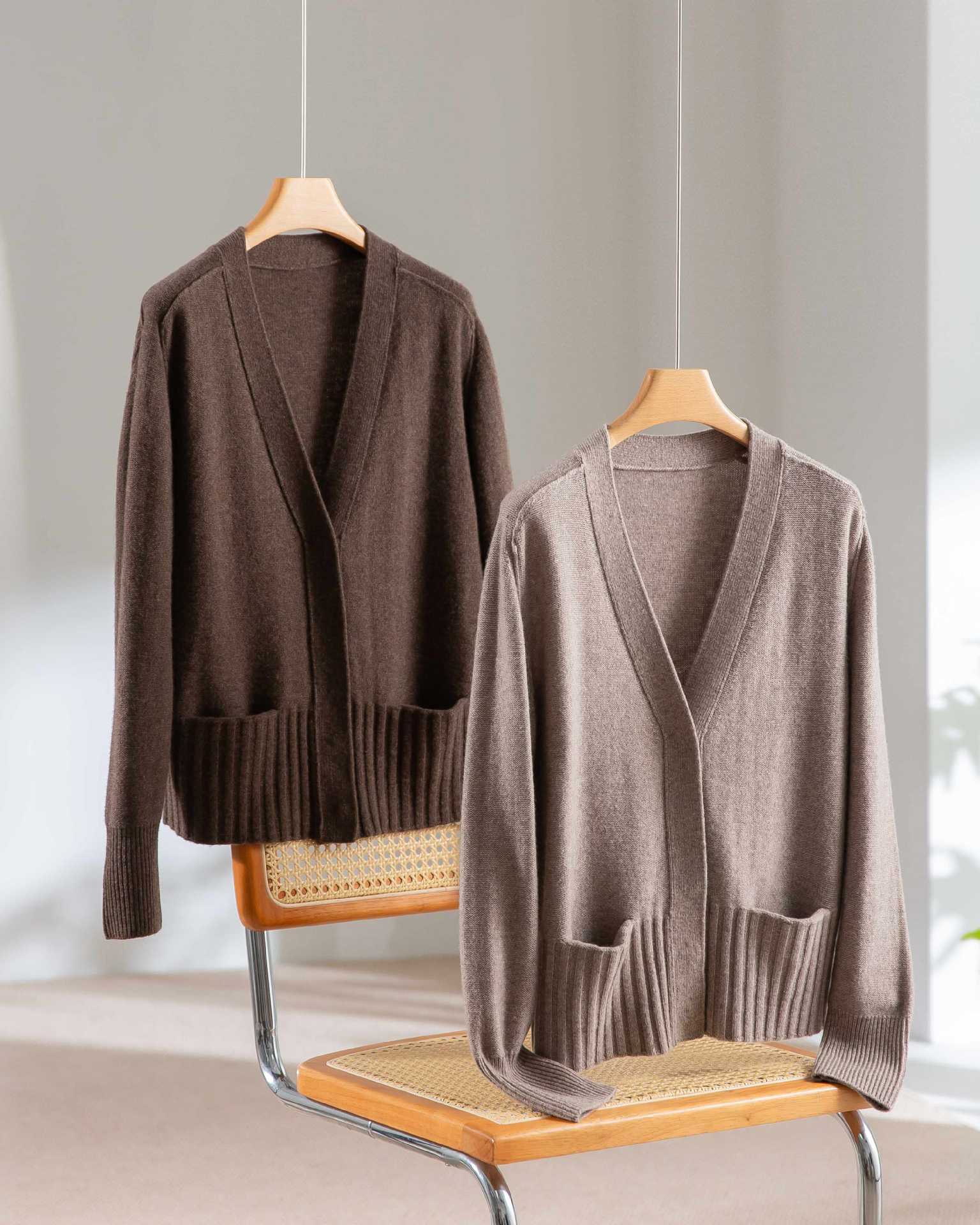 [Hengjia Qy] Cárdigan de Punto Grueso de Lana Virgen para Mujer con Cuello en V de 26 Botones, Versátil, Chaqueta Ajustada y Holgada