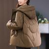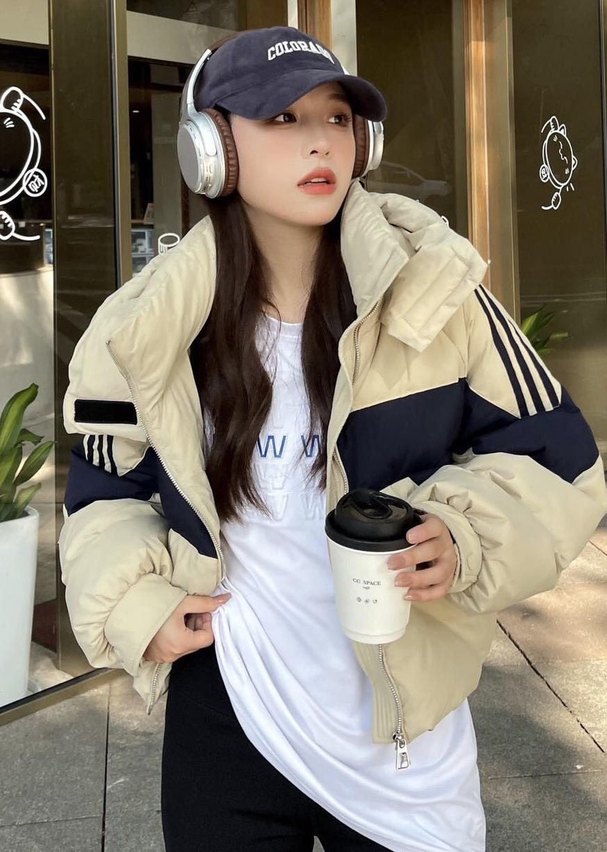 Chaqueta de plumón con capucha de color contrastante fuera de temporada para mujer, corta, 2025, nueva moda, engrosada, de plumón de pato blanco, chaqueta de invierno