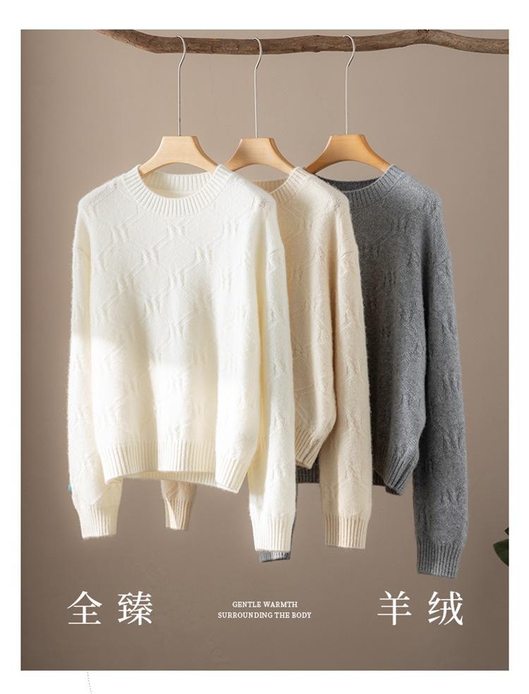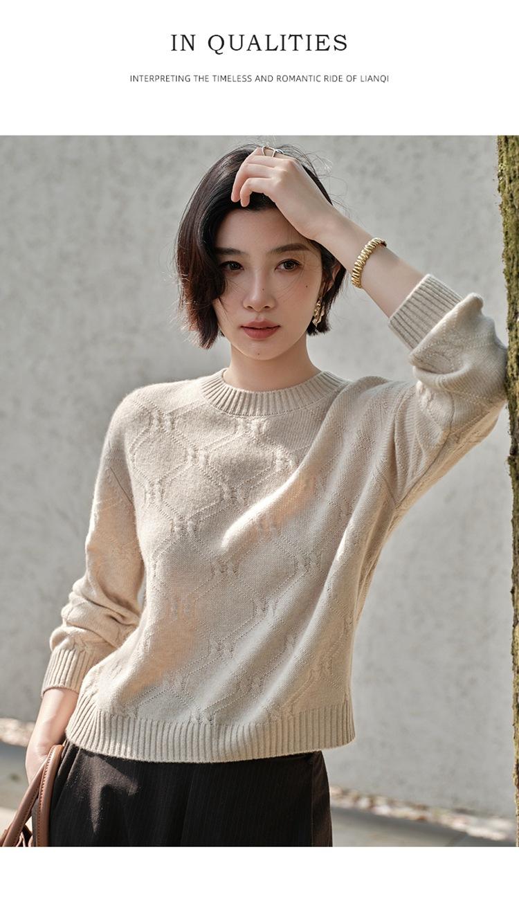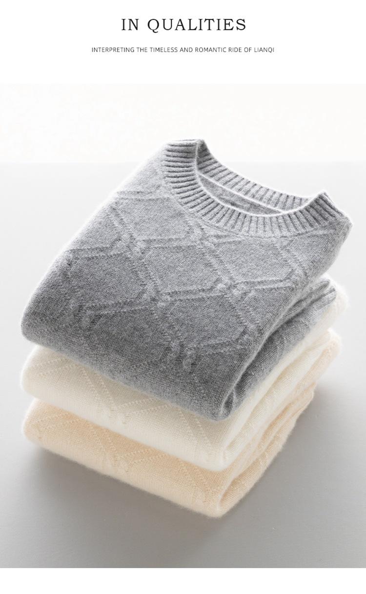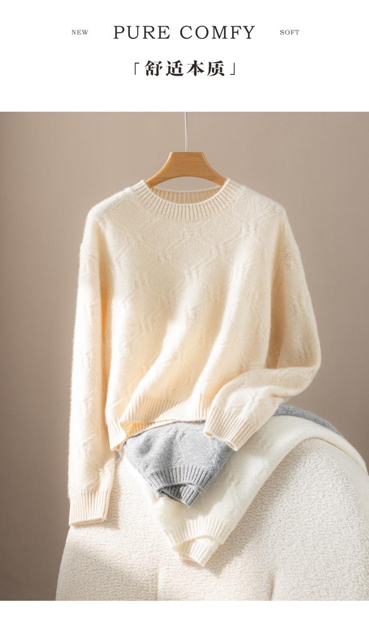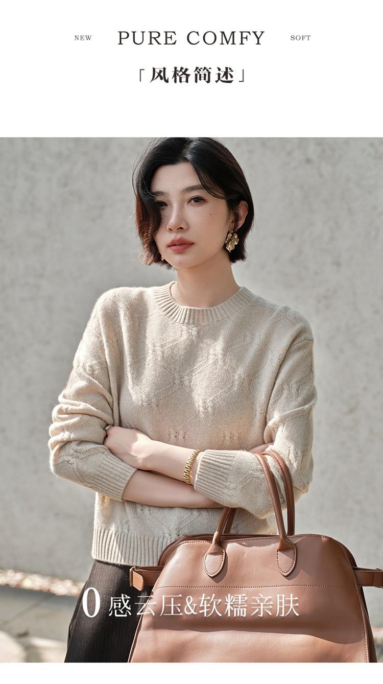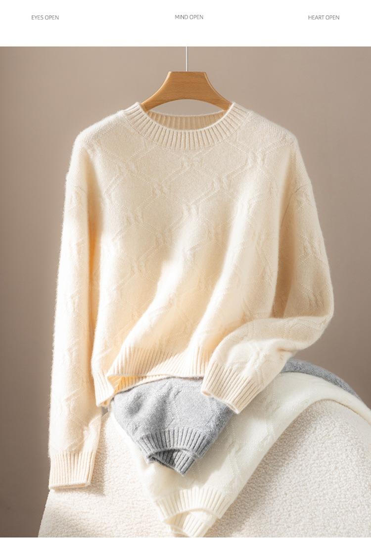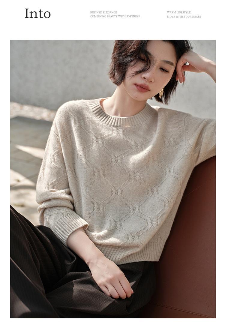 Suéter de Cachemira para Mujer 100% Cachemira Pura Suéter Otoño e Invierno Nuevo Cuello Redondo Manga Raglán Manga Larga Jersey Tejido Base