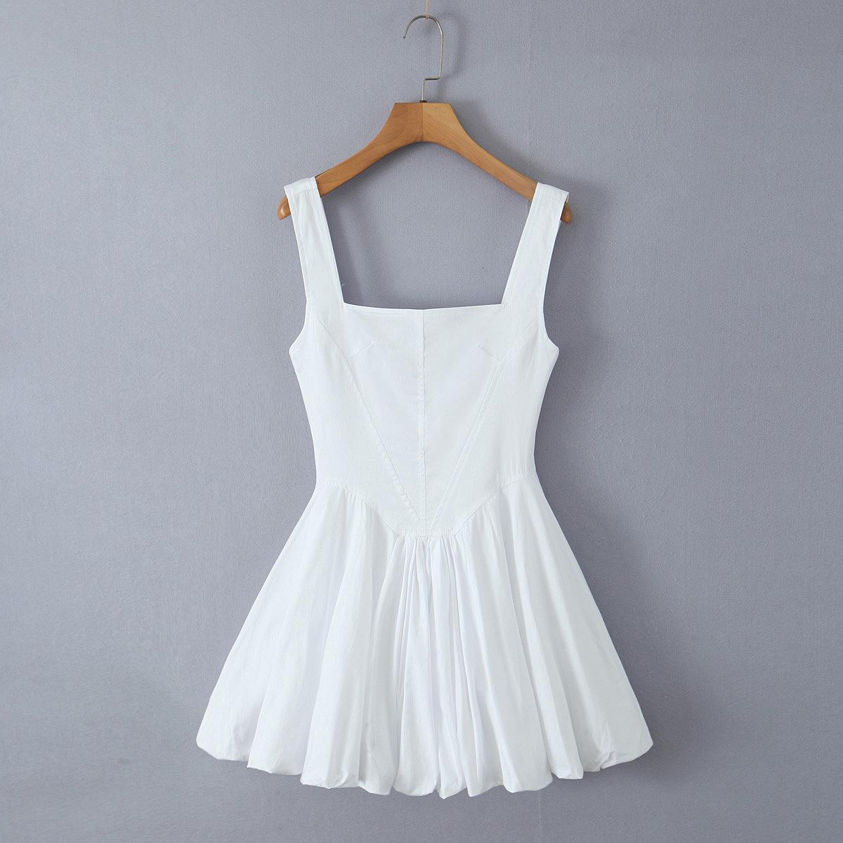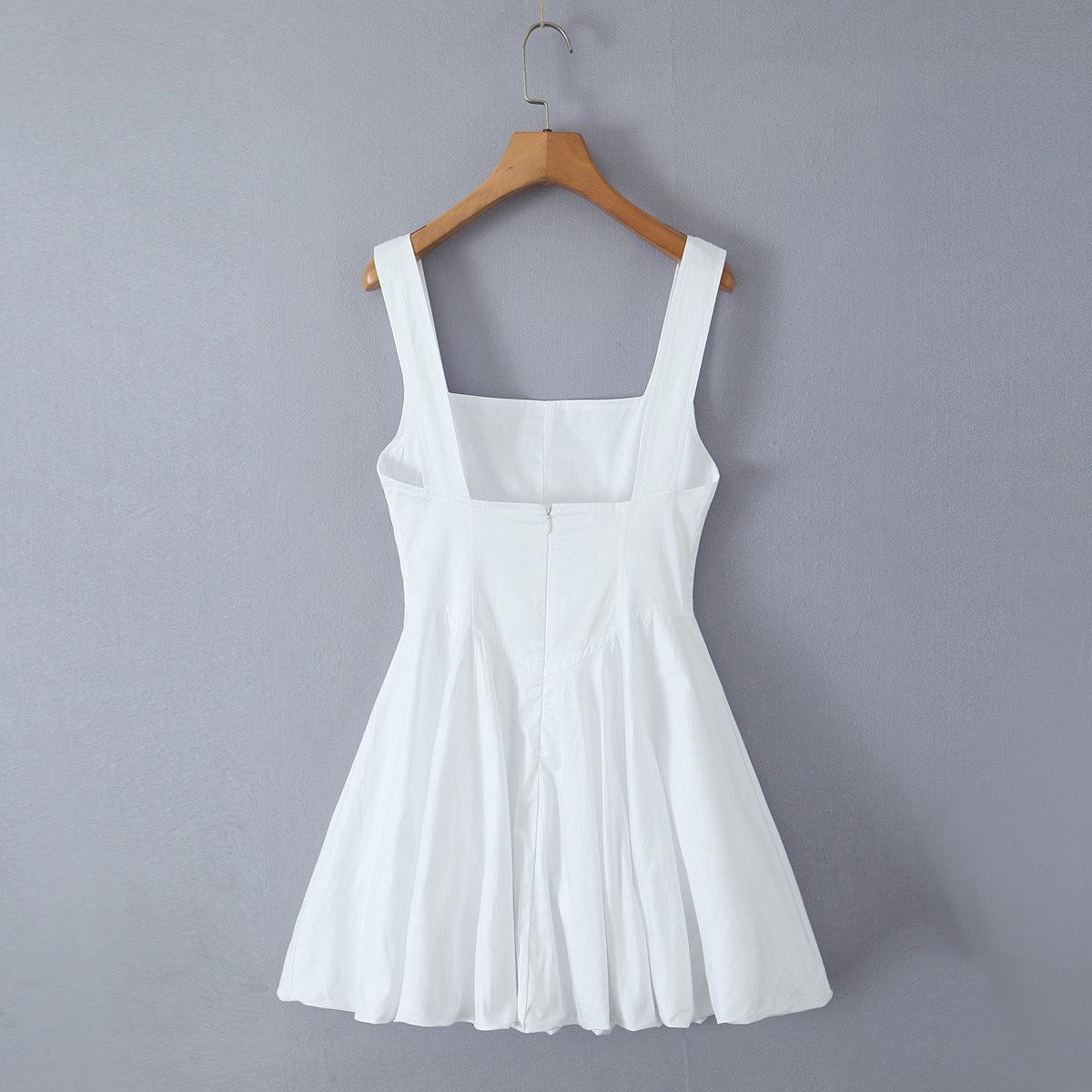 Vestido de algodón dulce de nicho francés para mujer, estilo europeo y americano, sexy, cuello cuadrado, cintura plisada, adelgazante, línea A