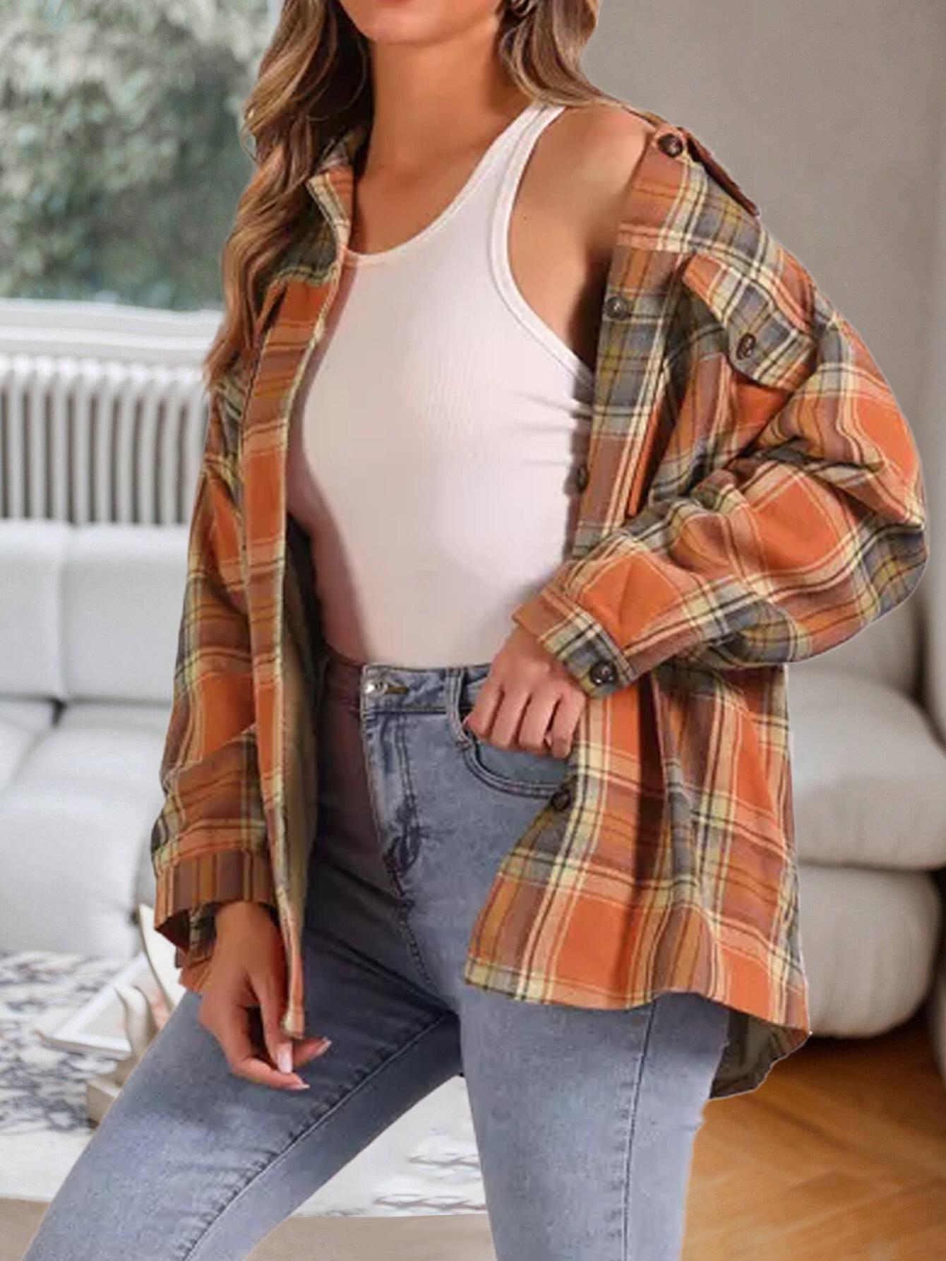 Camisa Holgada de Cuadros Nueva de Otoño de Moda Transfronteriza Europea y Americana de Amazon 2025