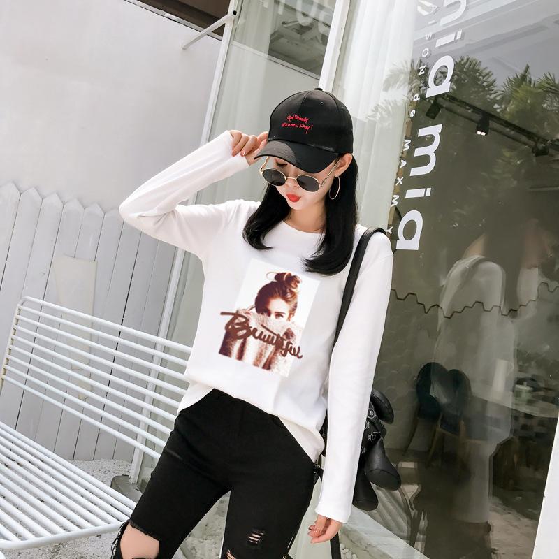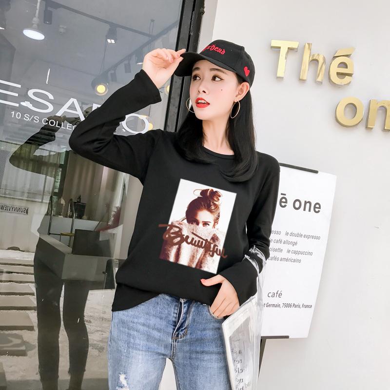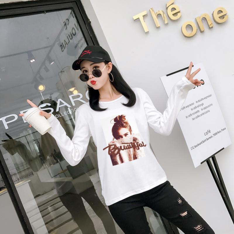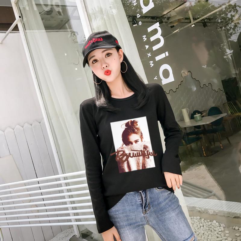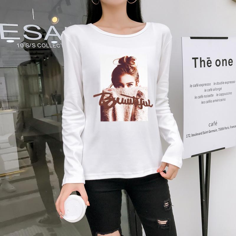 Otoño 2025 Nuevo Estilo Coreano Moda Ropa de Mujer Estampado de Retrato de Personaje Camiseta de Manga Larga Camiseta Básica Top para Estudiante