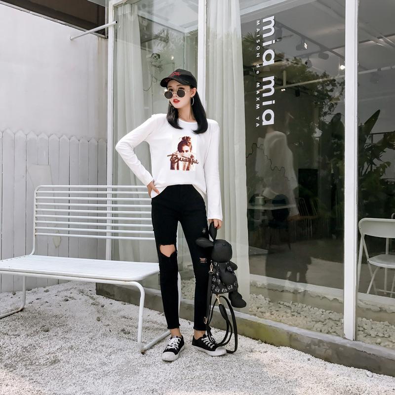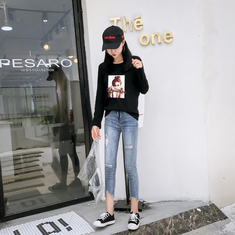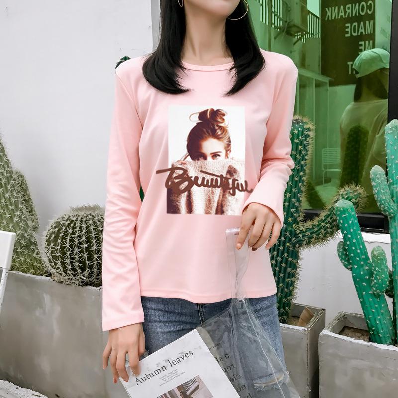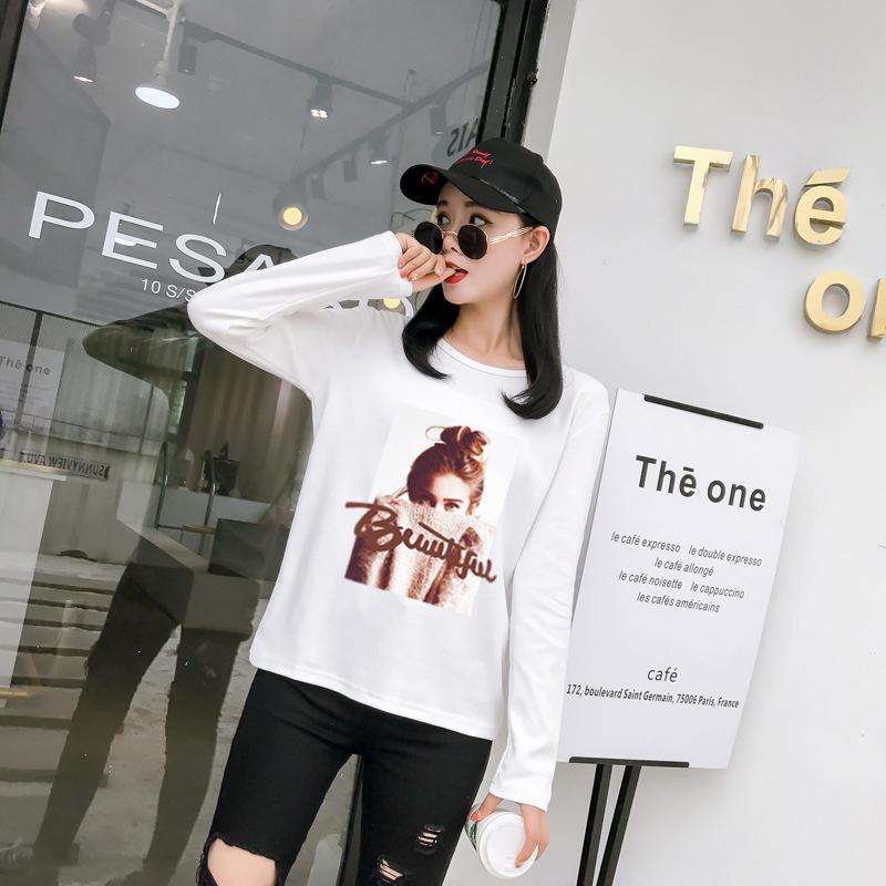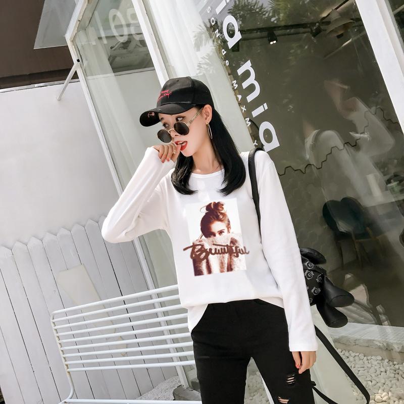 Otoño 2025 Nuevo Estilo Coreano Moda Ropa de Mujer Estampado de Retrato de Personaje Camiseta de Manga Larga Camiseta Básica Top para Estudiante