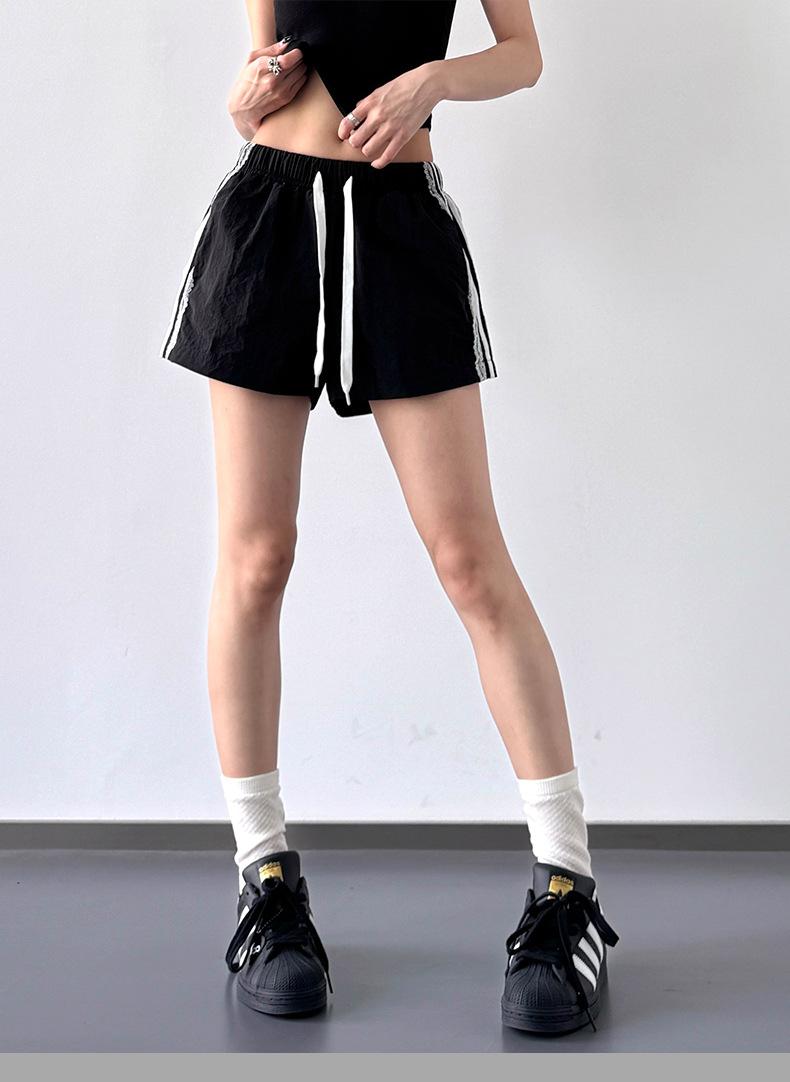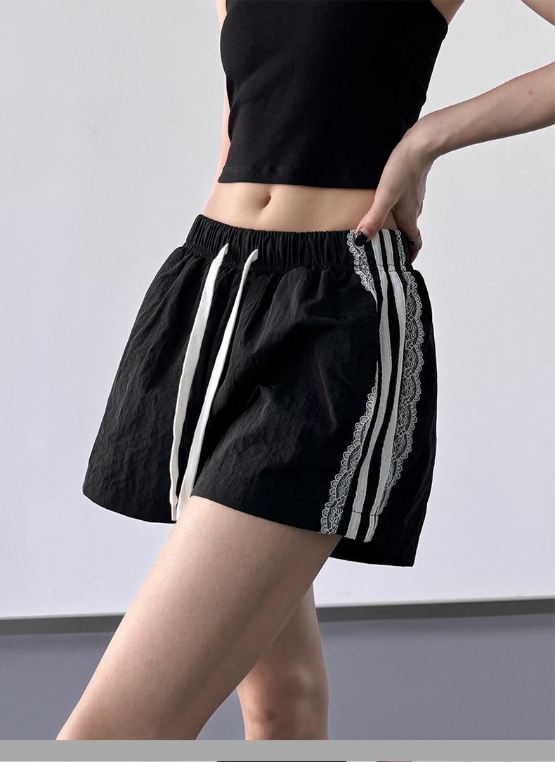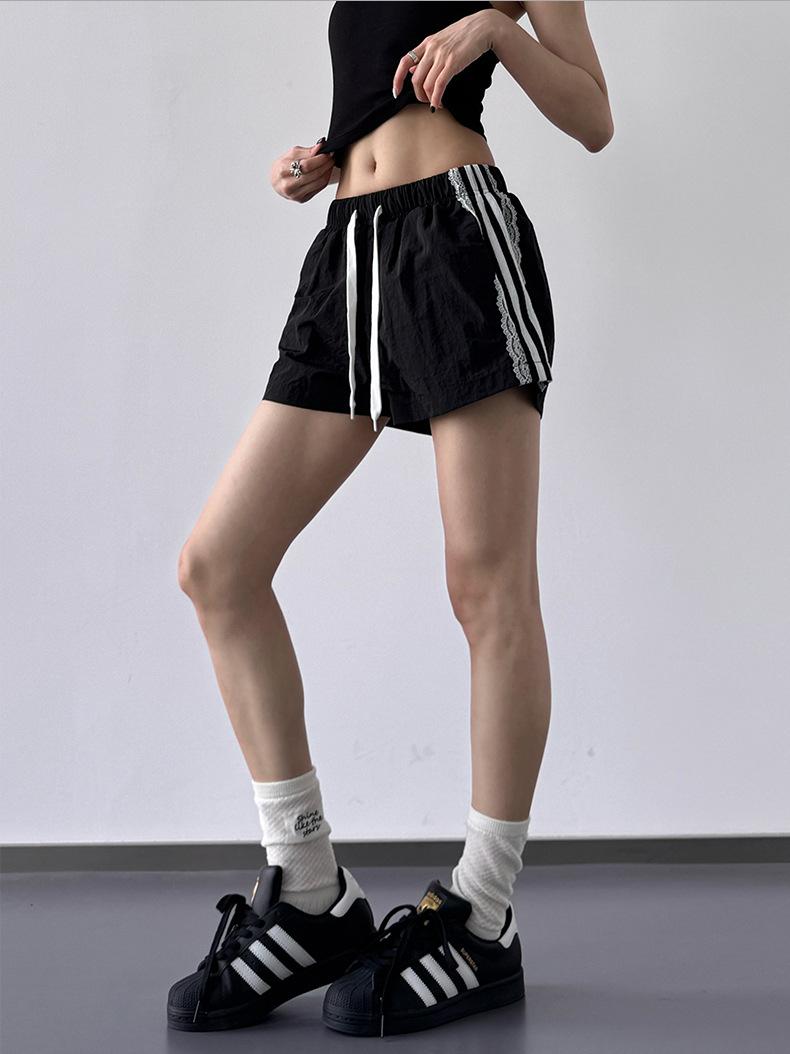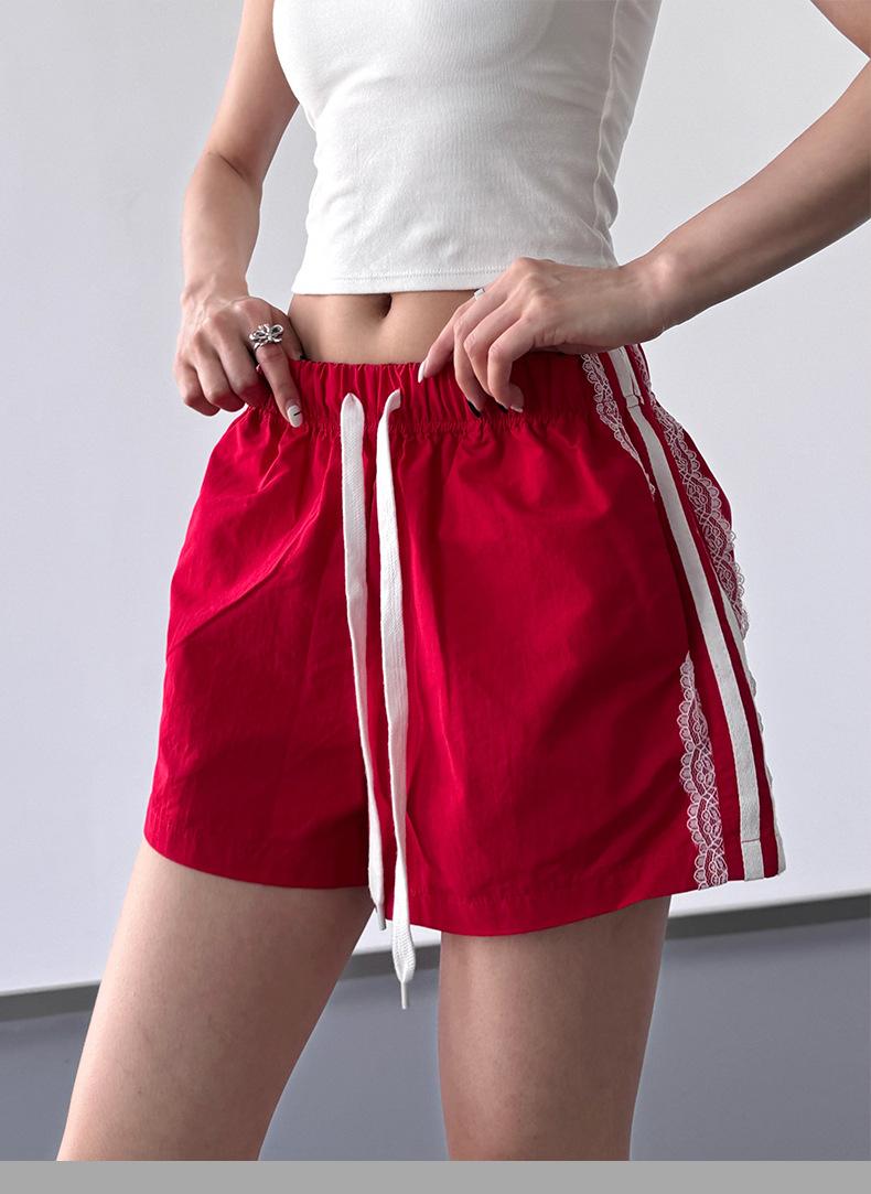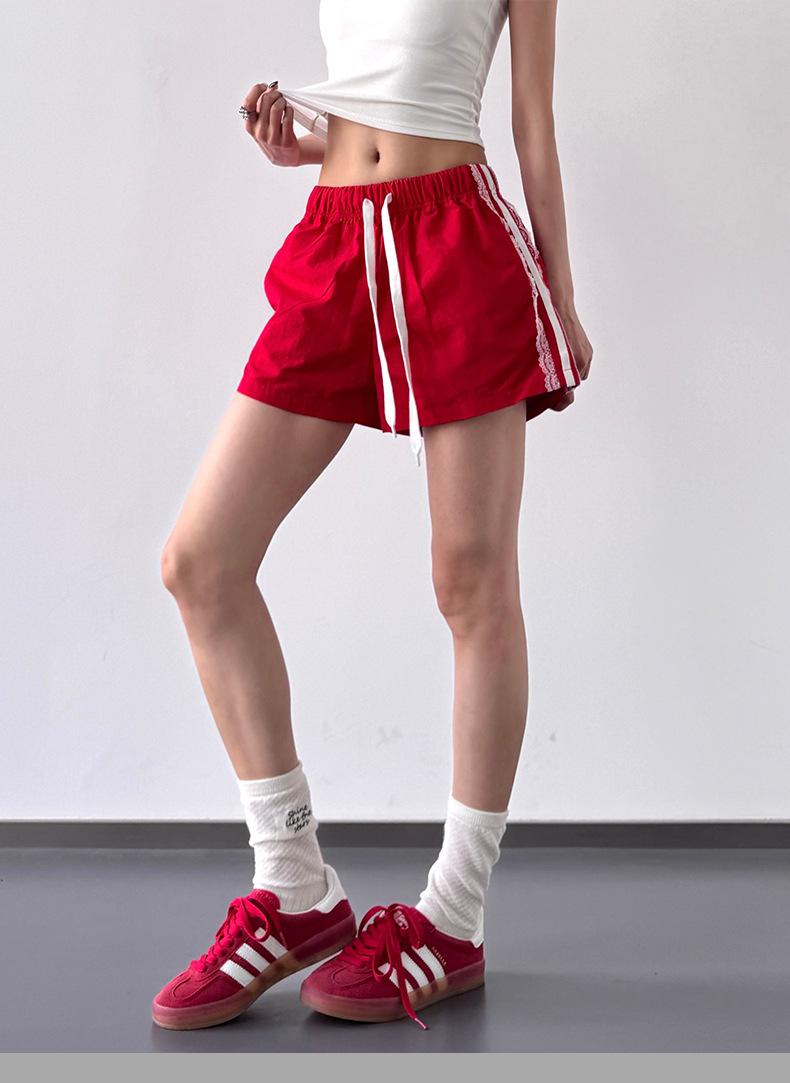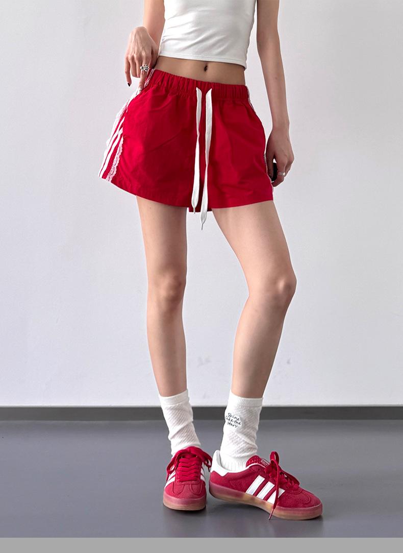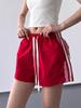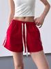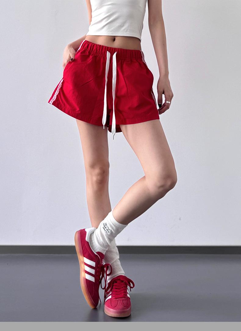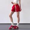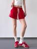 Shorts Deportivos con Costuras de Encaje para Mujer Verano 2025 Nuevo Rojo Holgado con Cordón Ajustable Slim A-line Pantalones Casuales