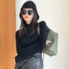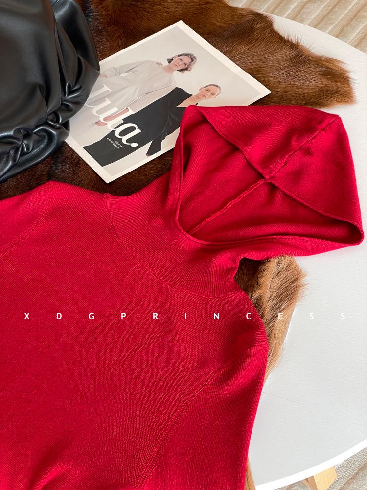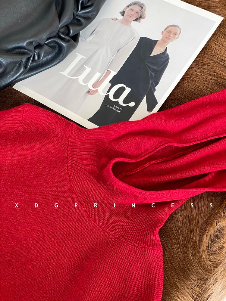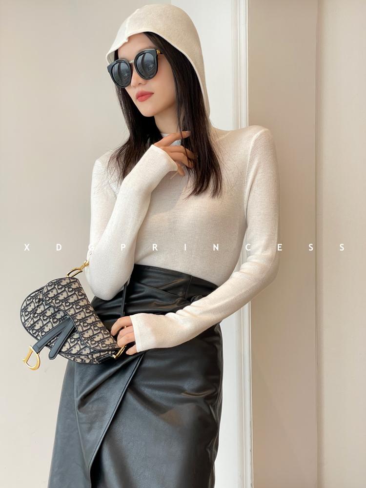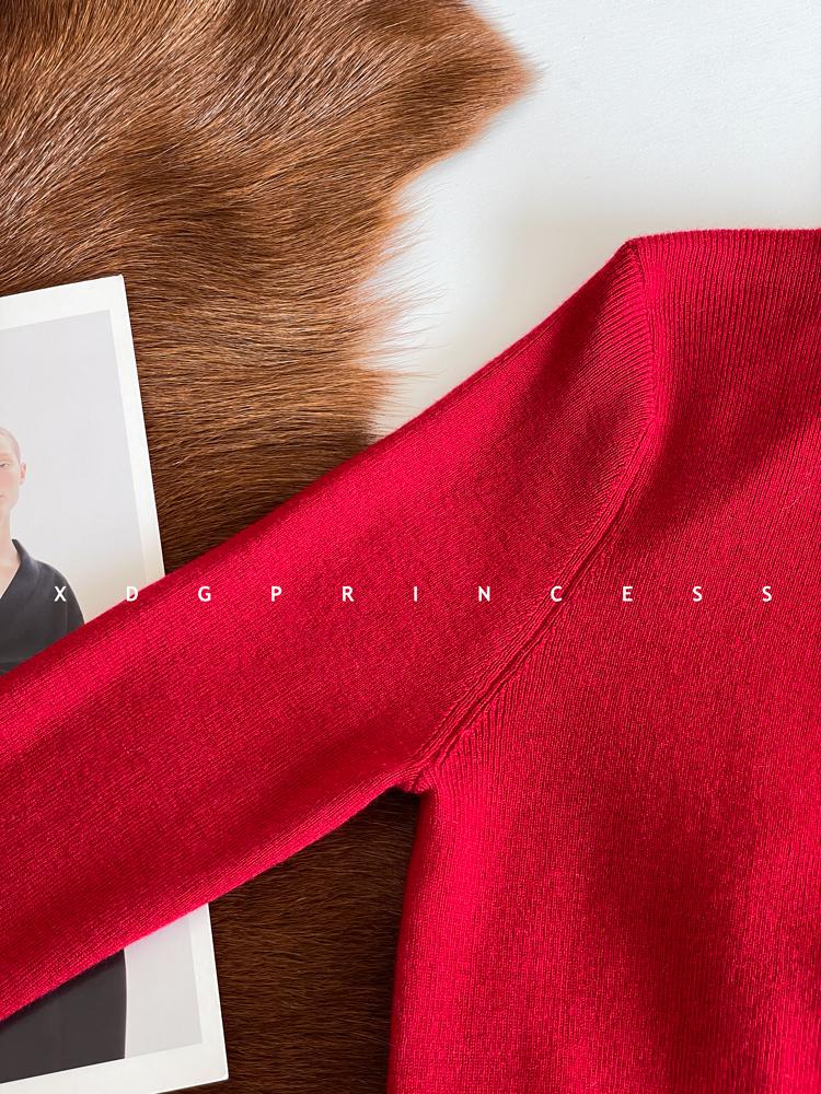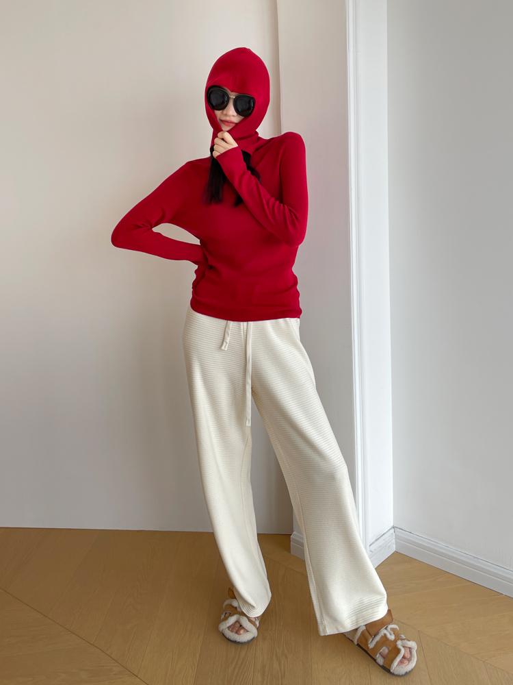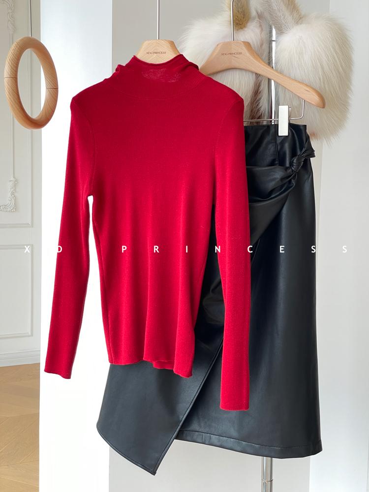 Nueva Ropa de Punto con Capucha Roja para Mujer en Otoño e Invierno Nueva Ropa de Punto Base Interior de Corte Slim Jersey de Manga Larga
