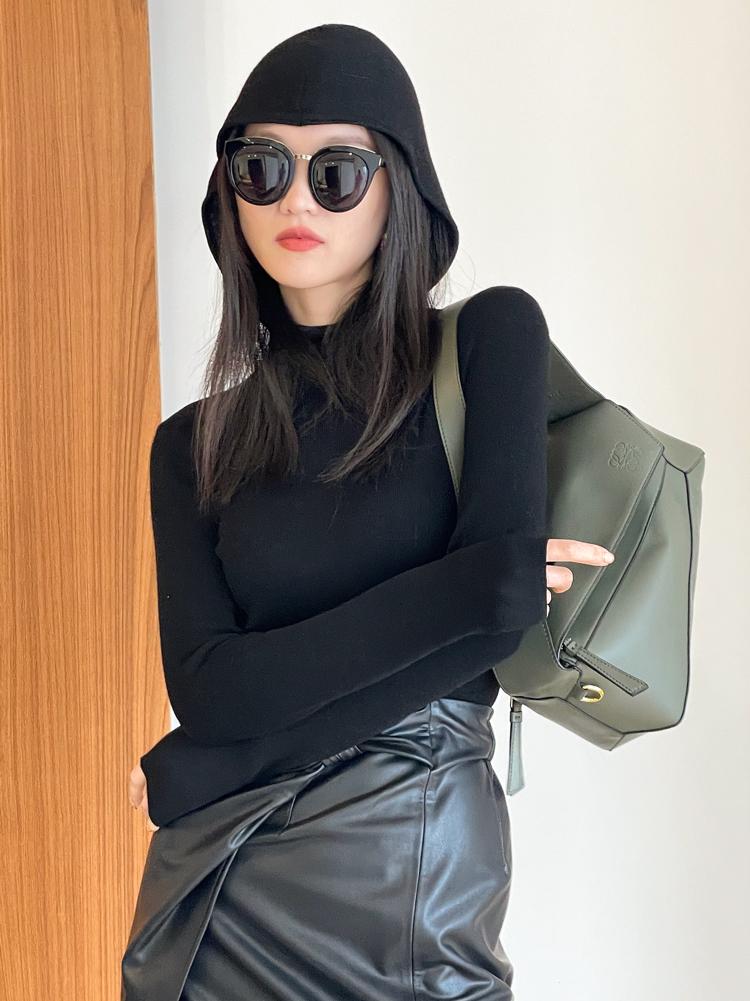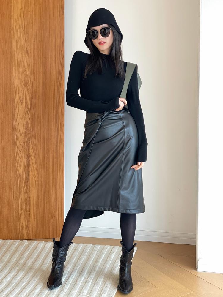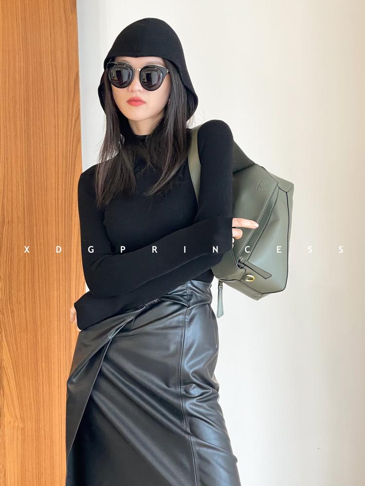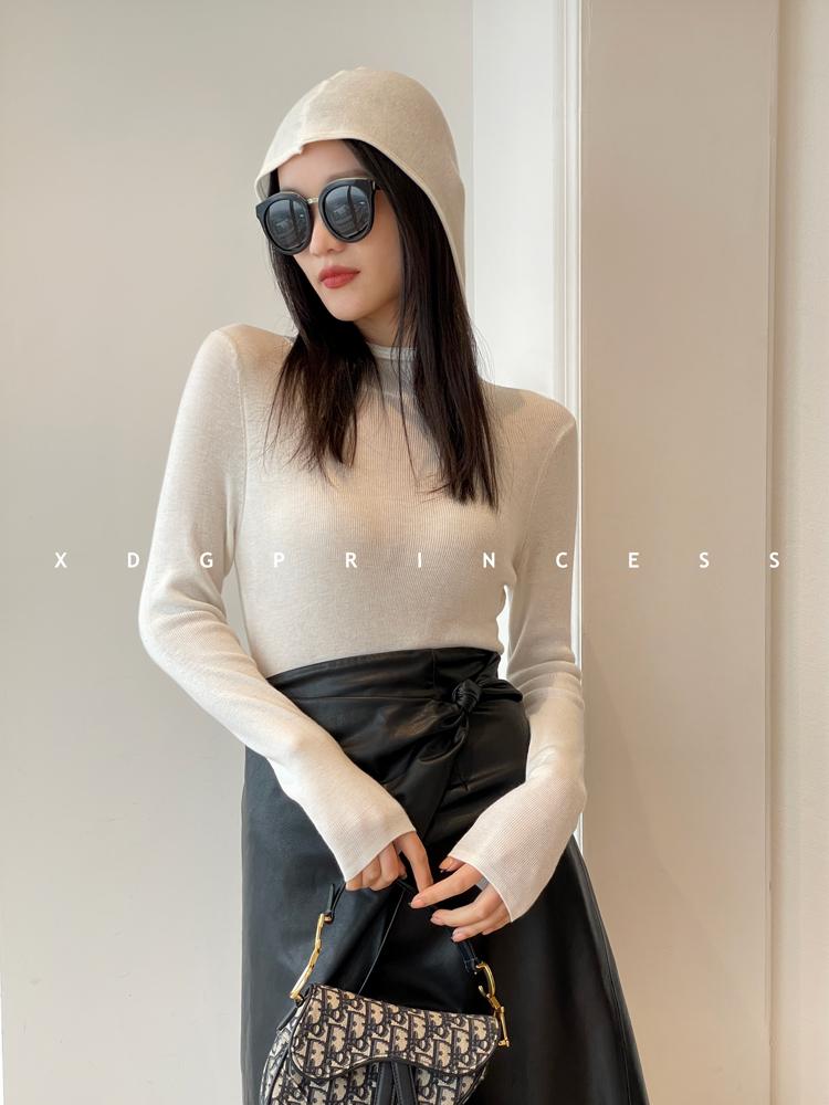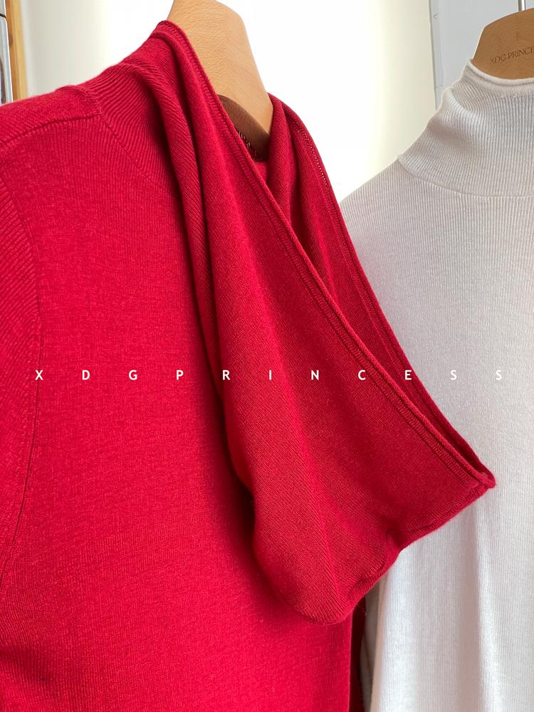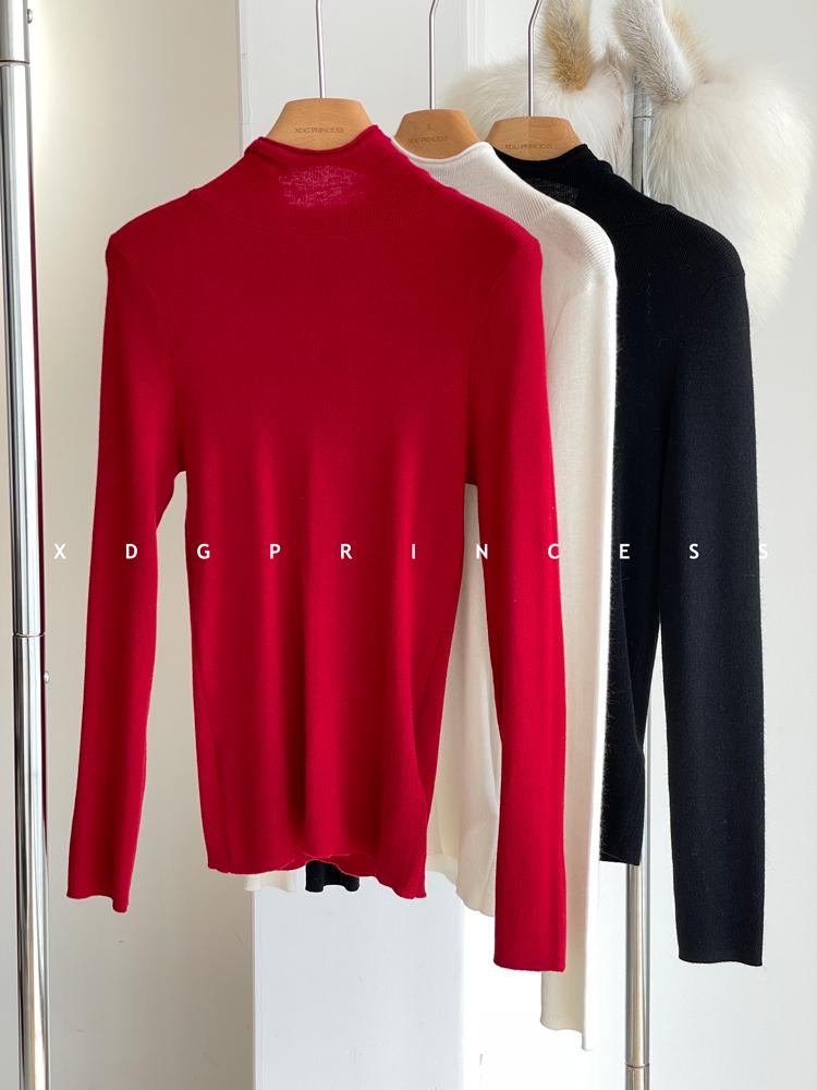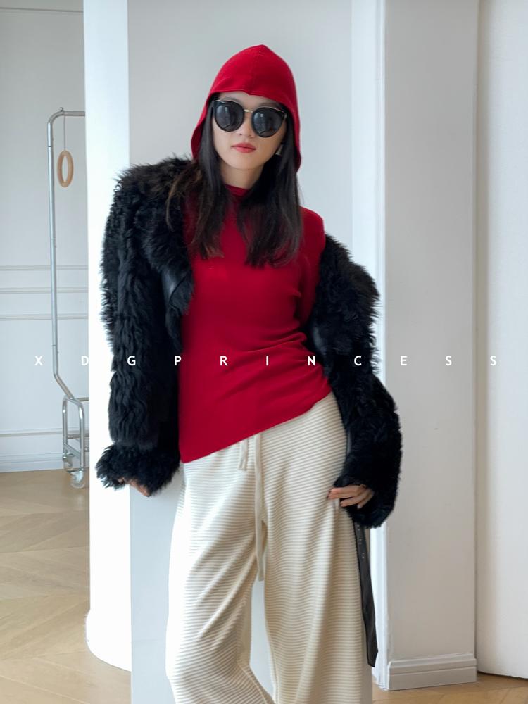 Nueva Ropa de Punto con Capucha Roja para Mujer en Otoño e Invierno Nueva Ropa de Punto Base Interior de Corte Slim Jersey de Manga Larga