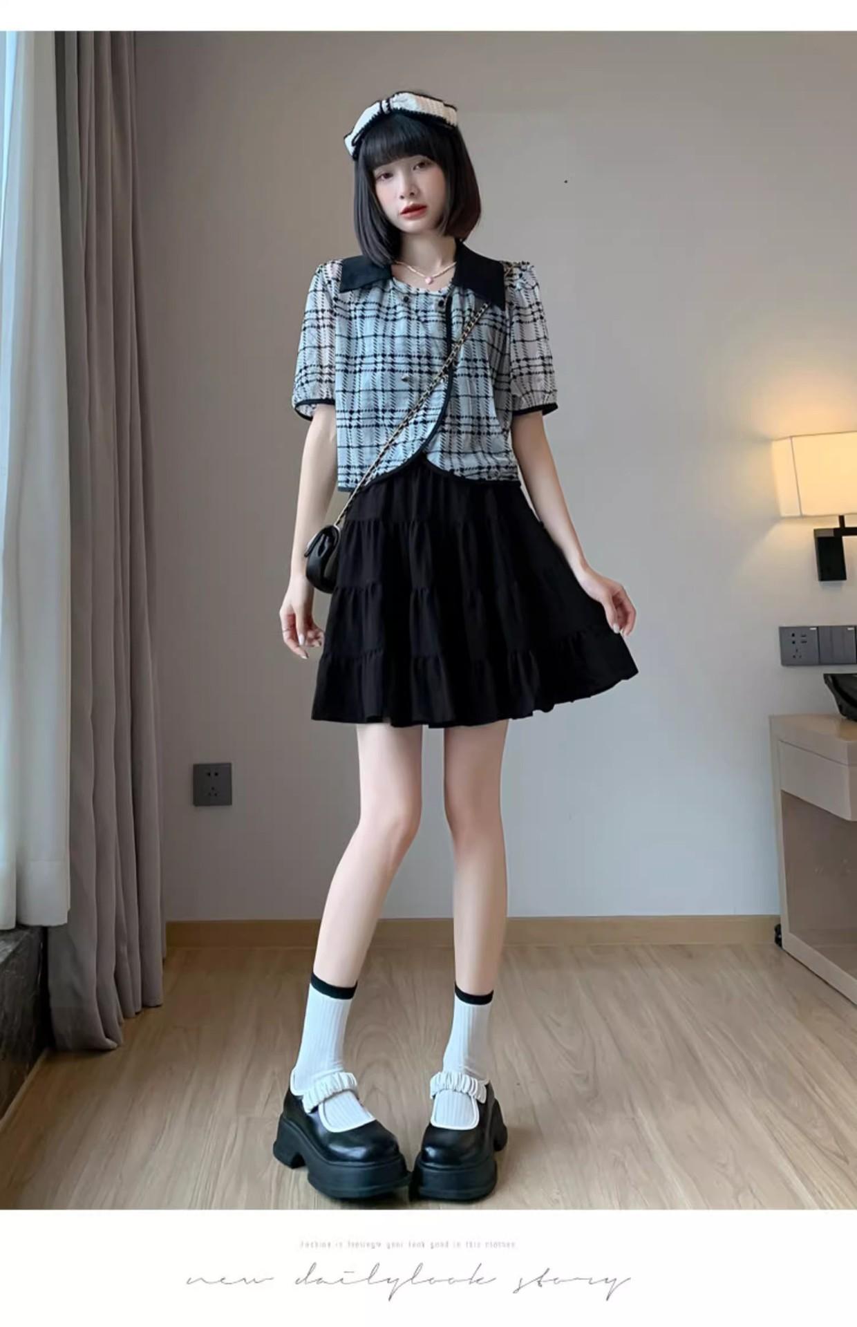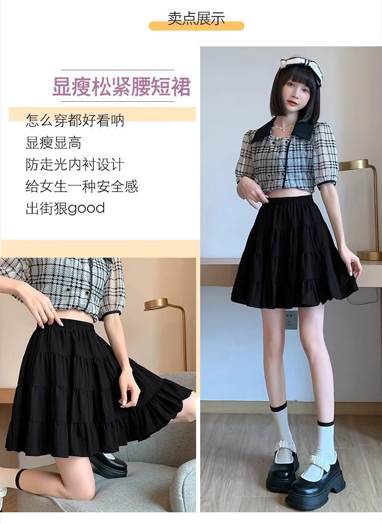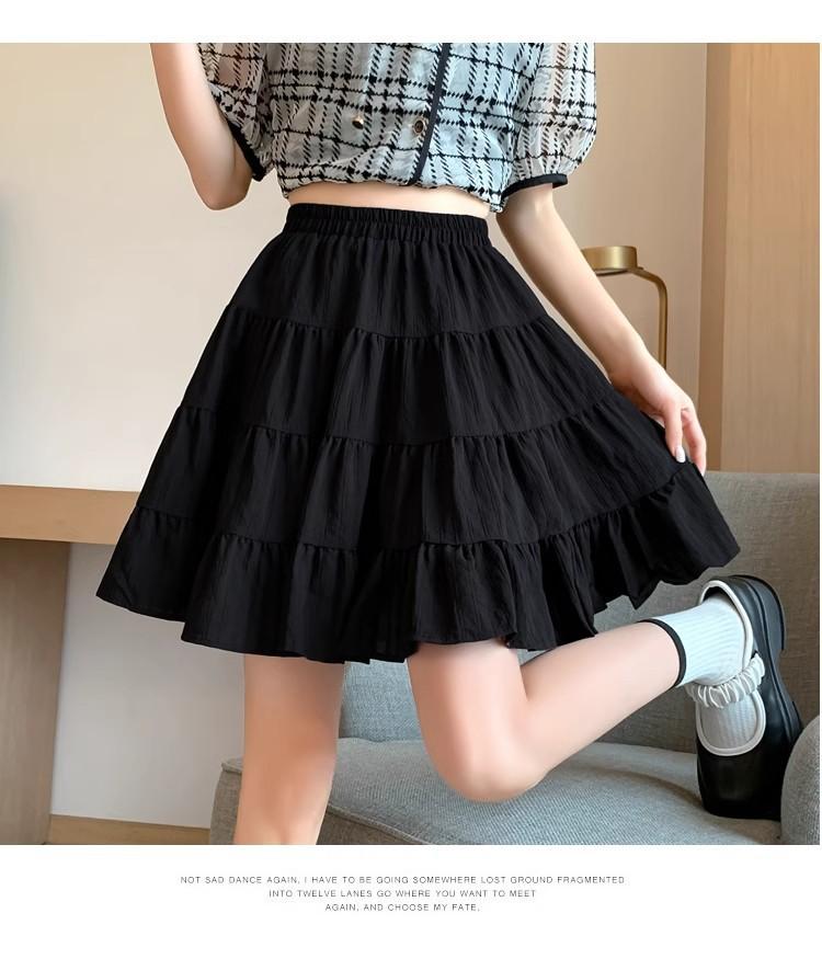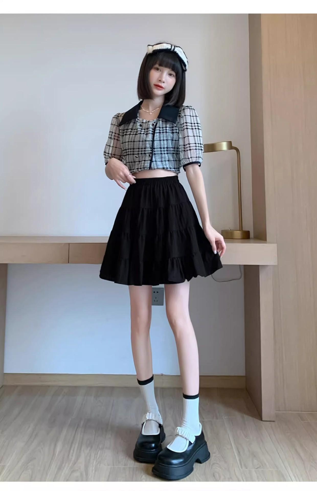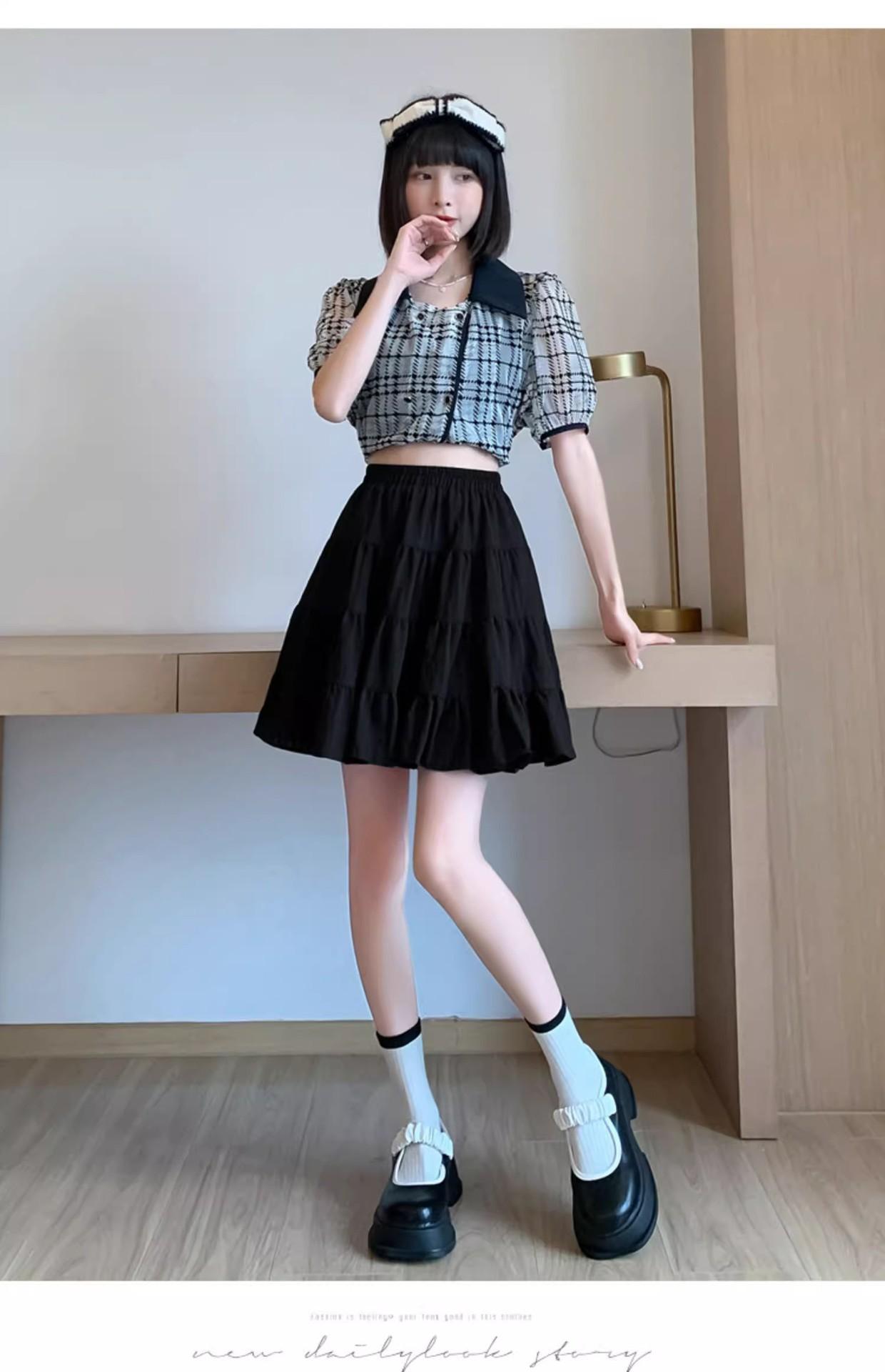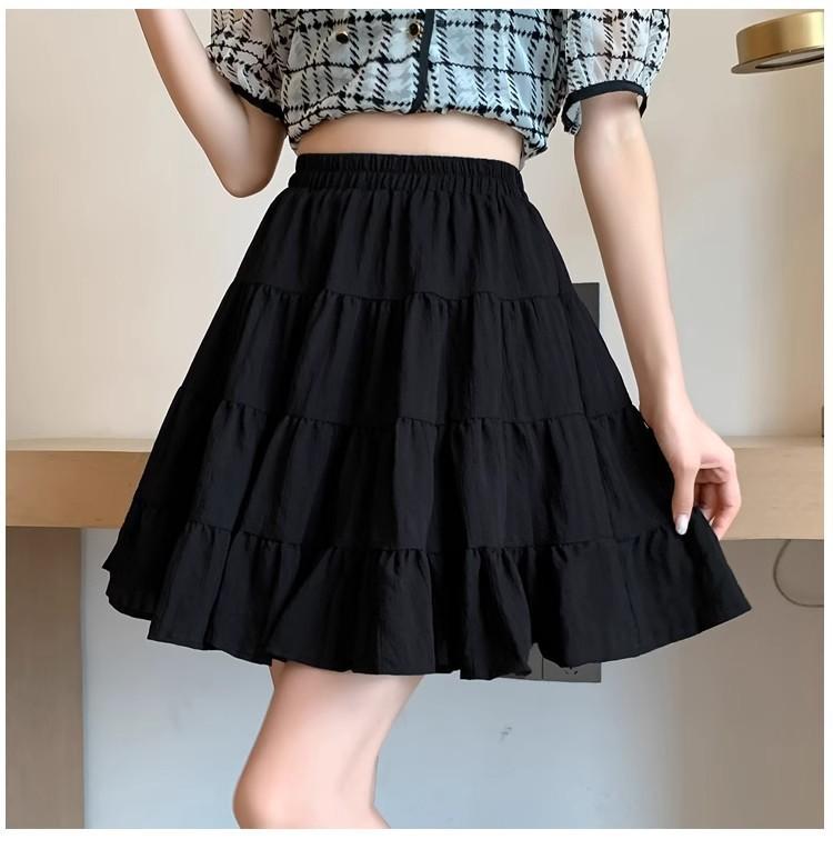 Falda Paraguas Negra Mujer Primavera 2025 Nueva Falda Corta de Cintura Alta Falda Línea A Falda con Aspecto Adelgazante Falda de Un Paso Media Falda