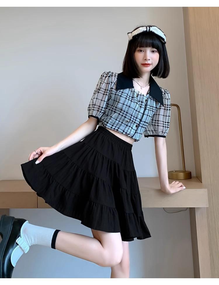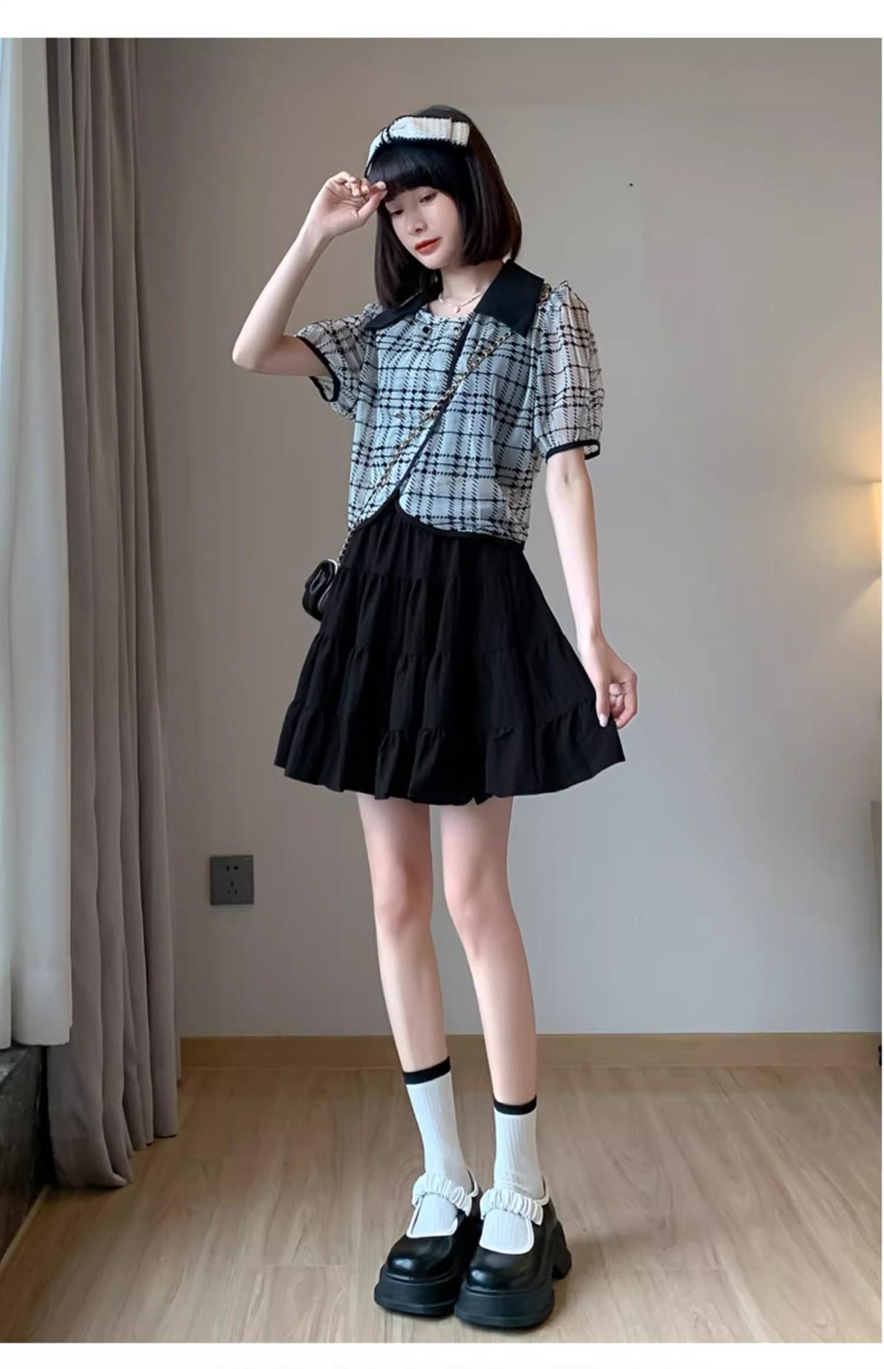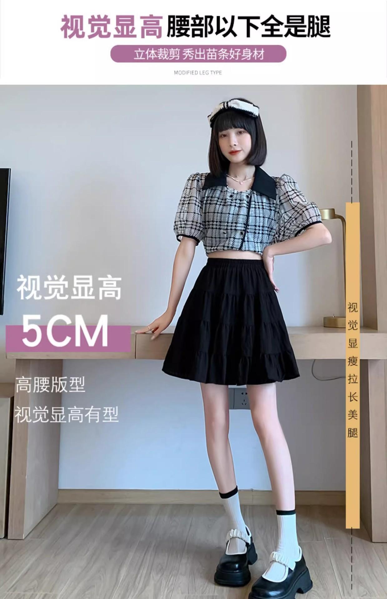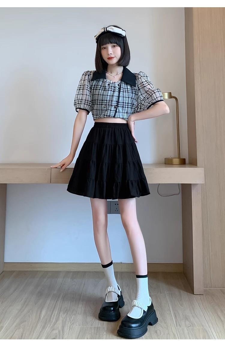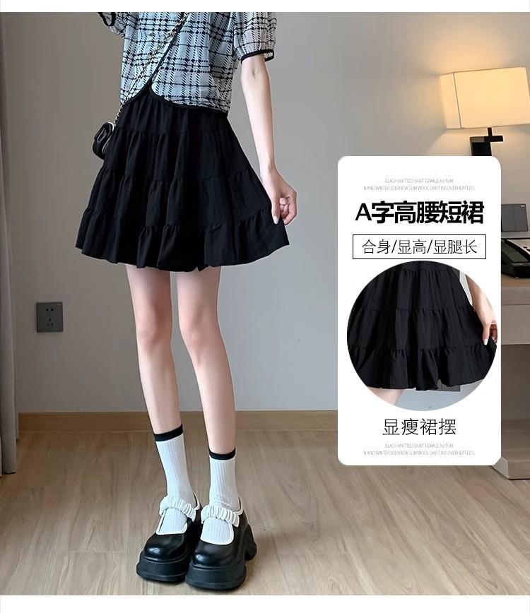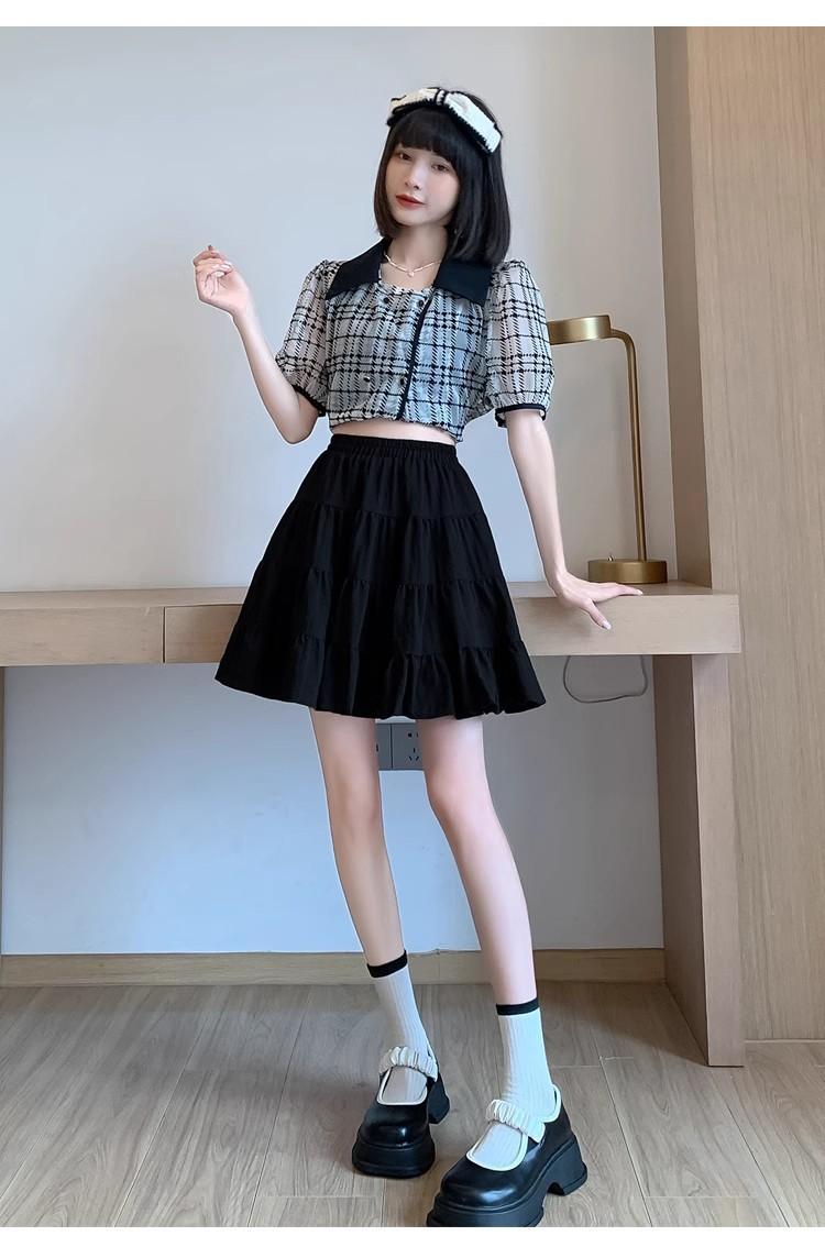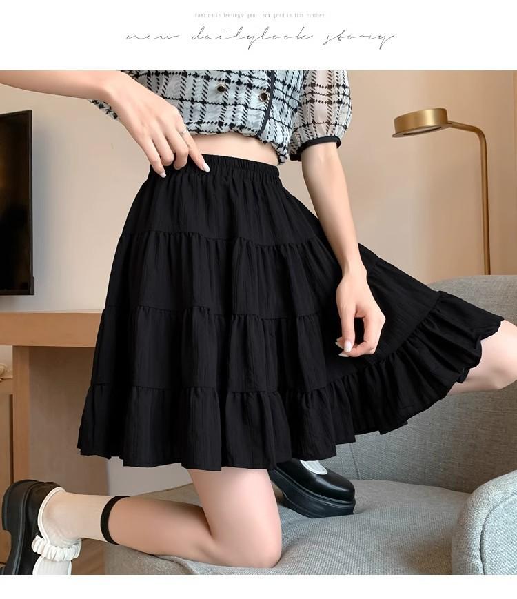 Falda Paraguas Negra Mujer Primavera 2025 Nueva Falda Corta de Cintura Alta Falda Línea A Falda con Aspecto Adelgazante Falda de Un Paso Media Falda