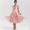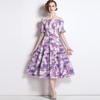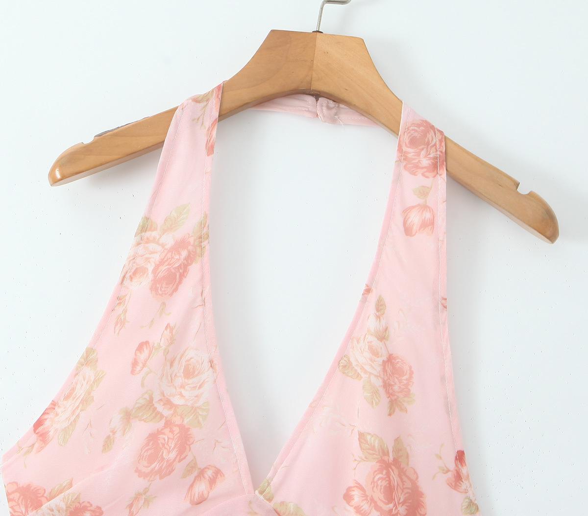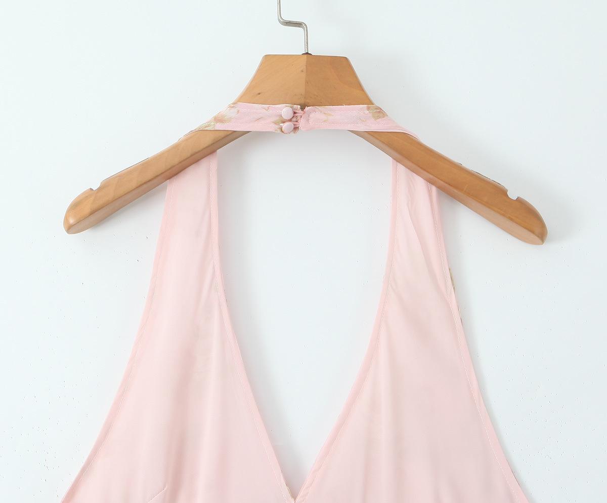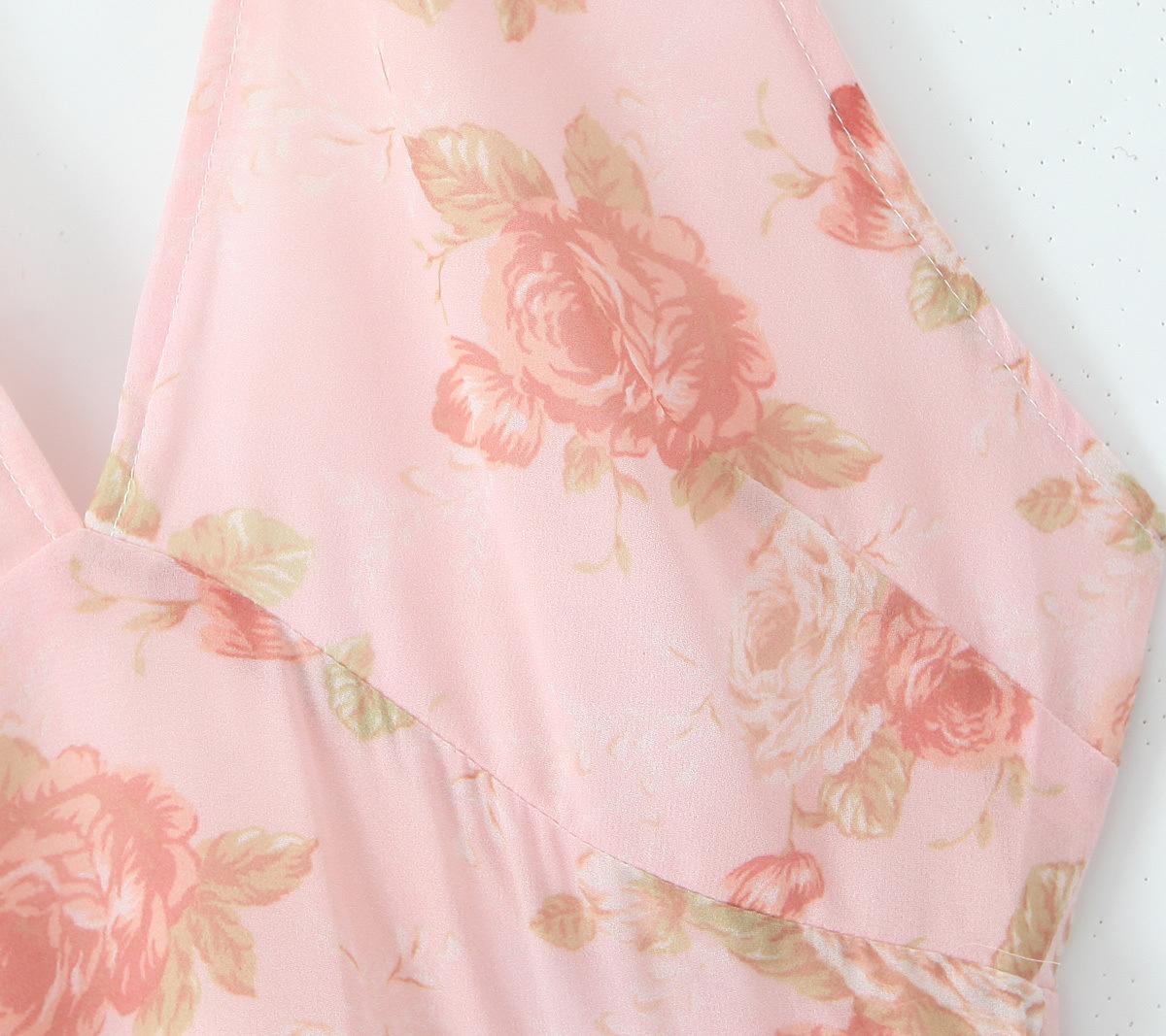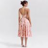 Casa del Mismo Estilo Estilo Europeo y Americano Estilo Francés Retro Romántico Vestido Estampado Cuello V Espalda Descubierta Vestido de Vacaciones