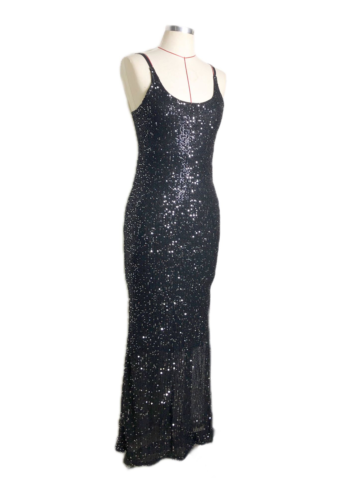 Vestido Largo de Noche con Lentejuelas y Tirantes Nuevos para Fiesta de Noche, Vestido de Lentejuelas para Banquete, Ajustado, con Temperamento Elegante