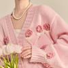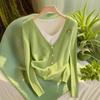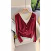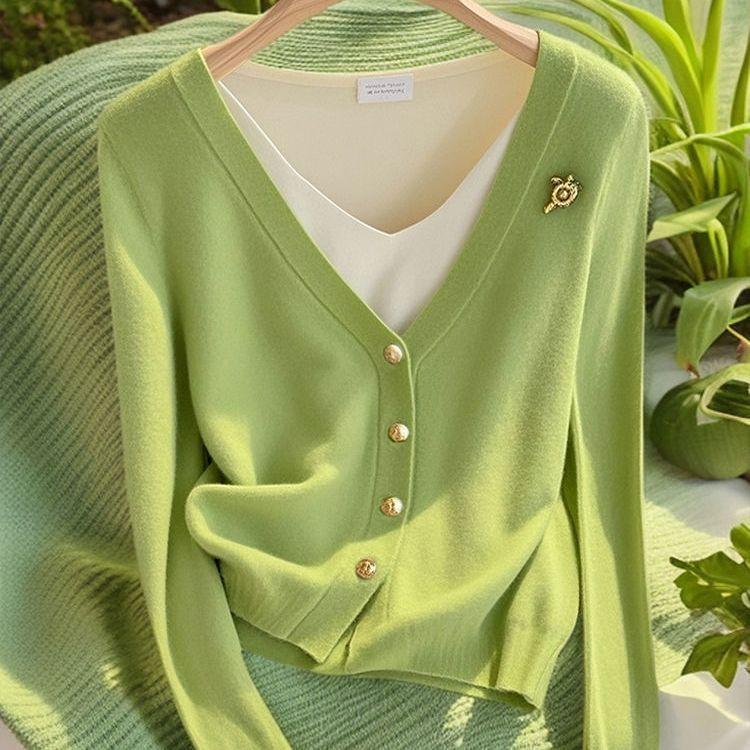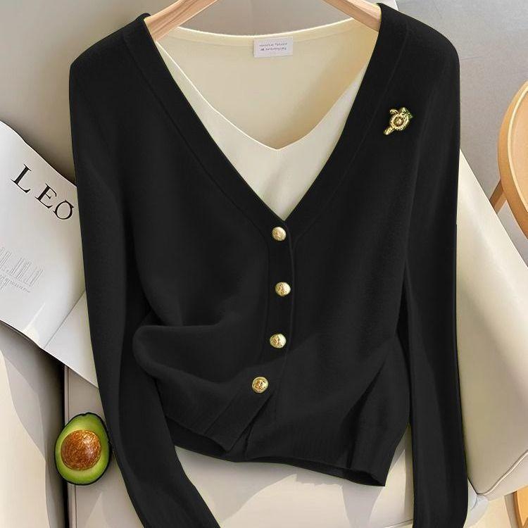 Otoño 2025 Nuevo Estilo Estilo Chanel Cárdigan de Punto Rosa Falso de Dos Piezas para Mujer Único Súper Bonito Top Base Interior