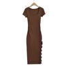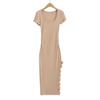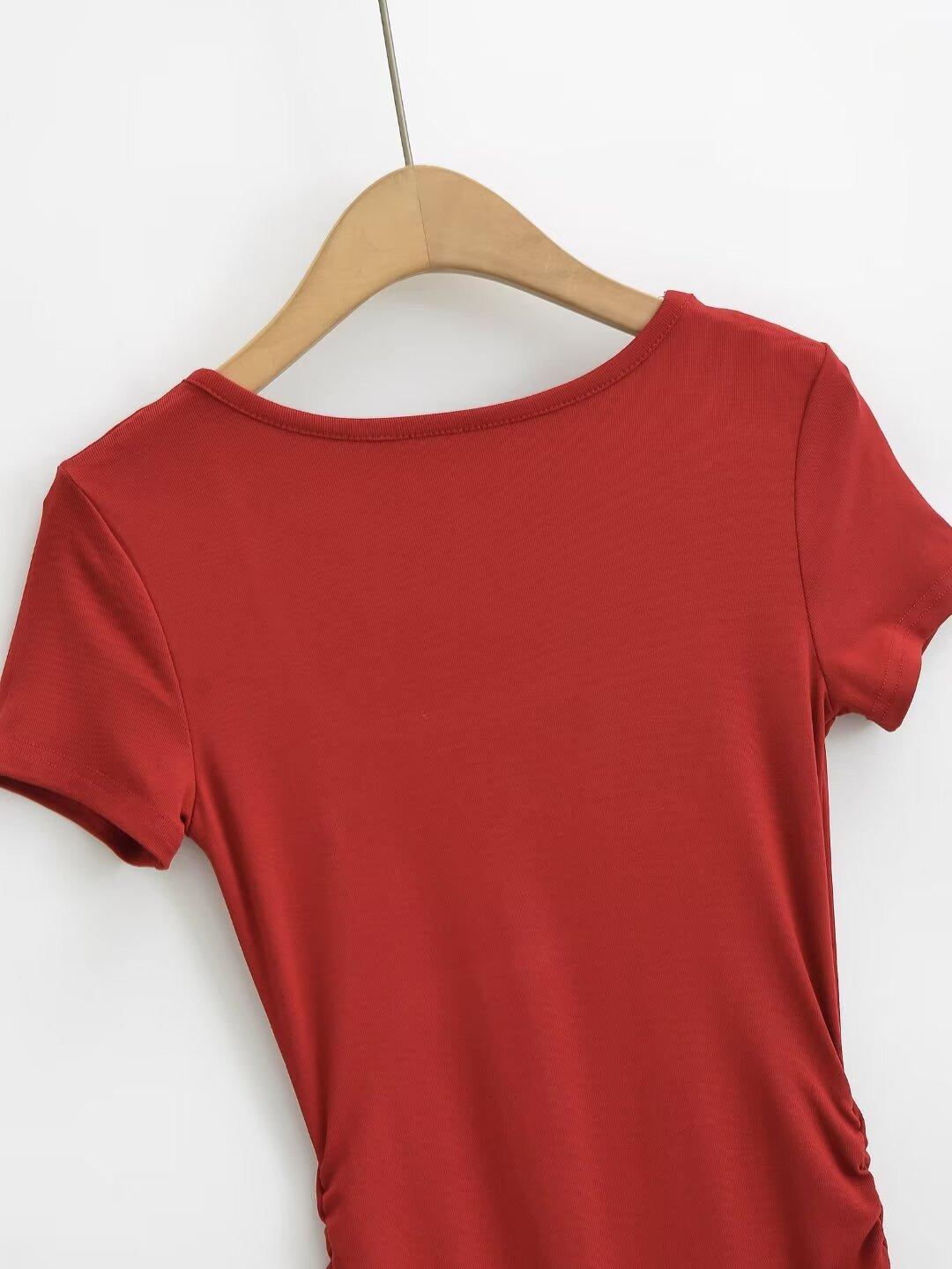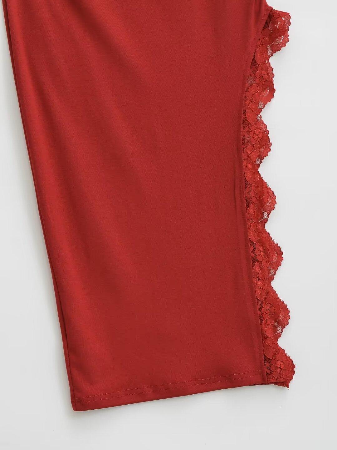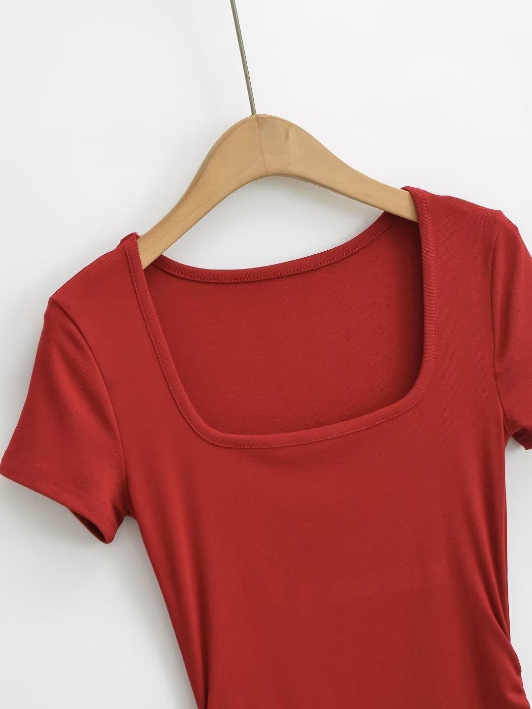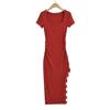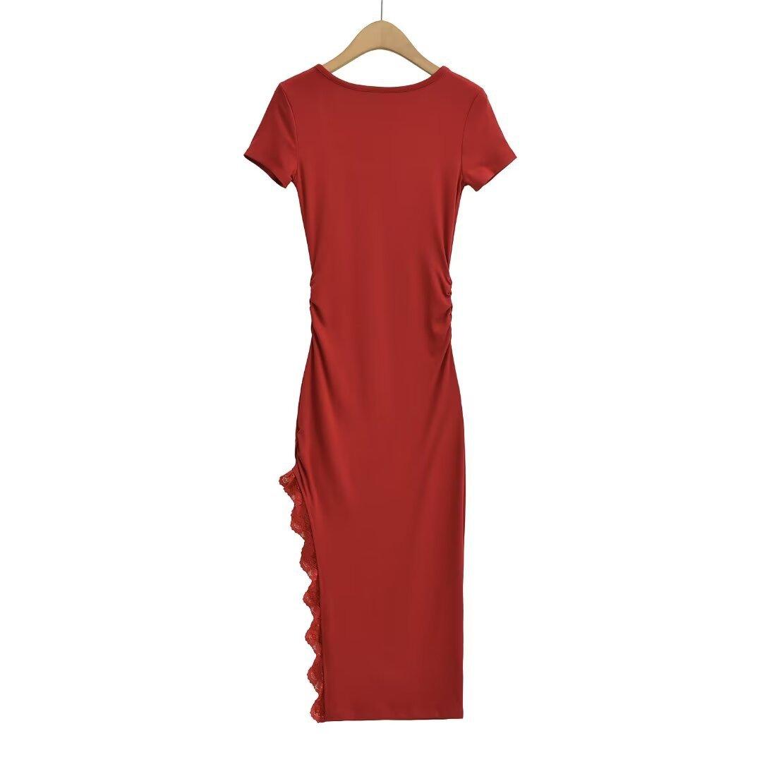 Vestido Spice Girl Cuello Cuadrado Puro Adelgazante Ajustado Encaje Lateral Manga Corta Sexy Cintura Ajustada Abertura Lateral Falda de Cadera
