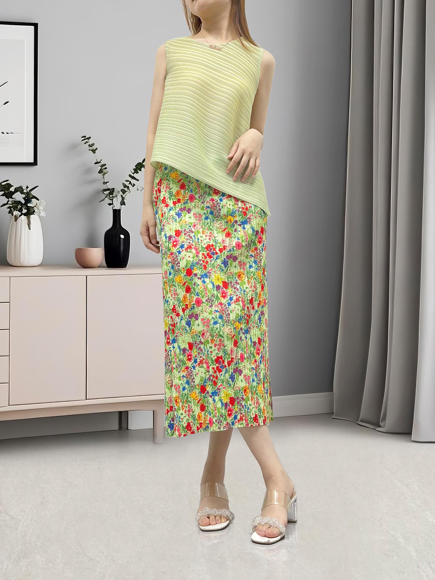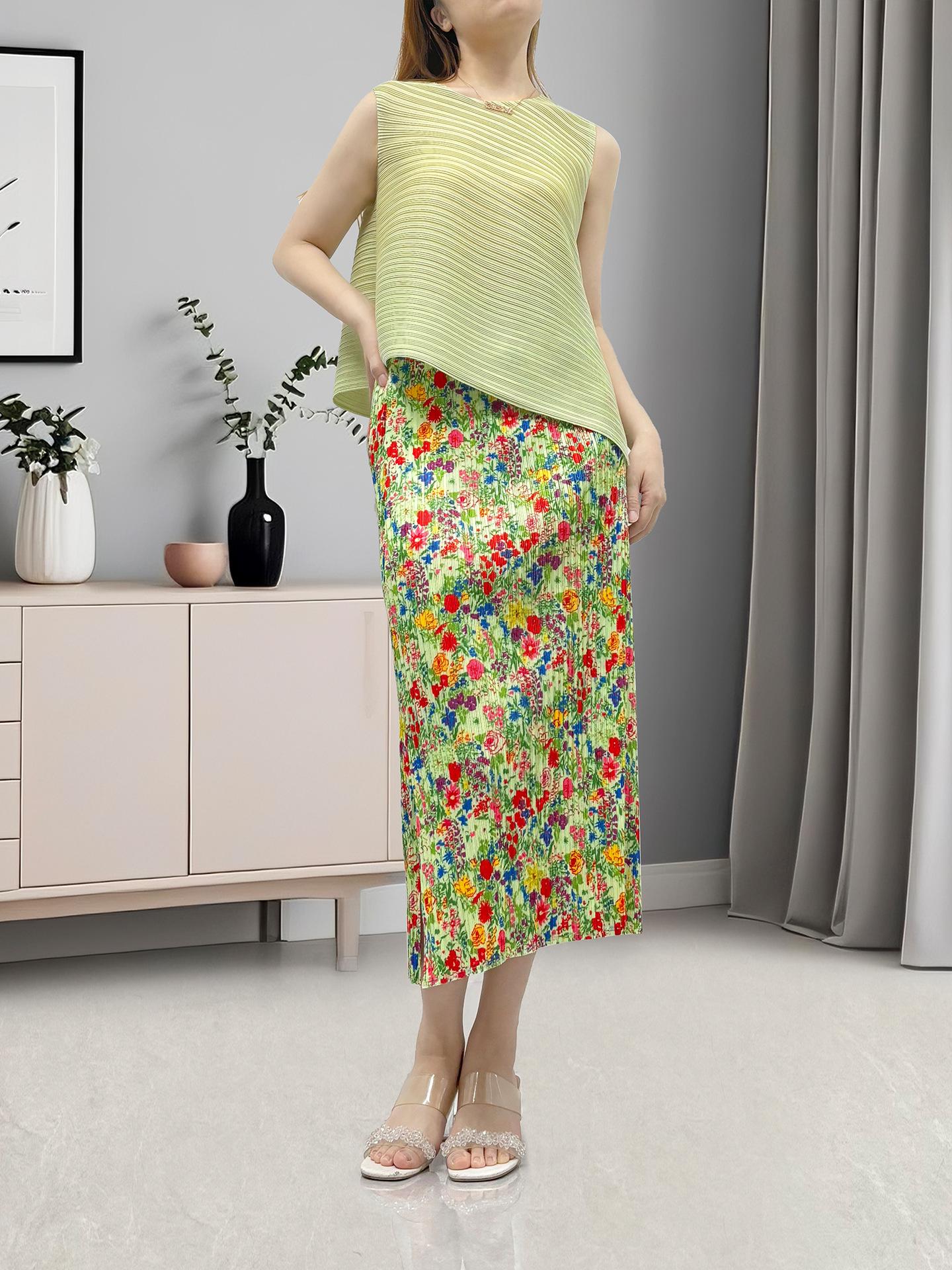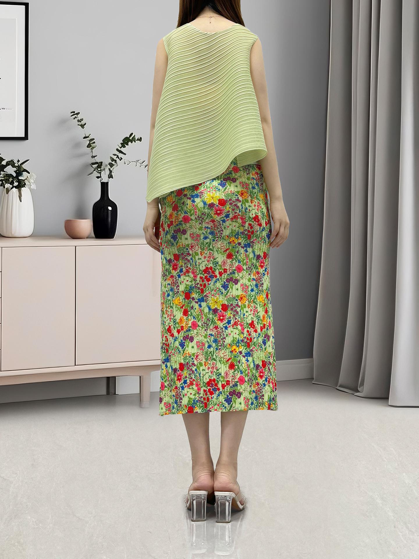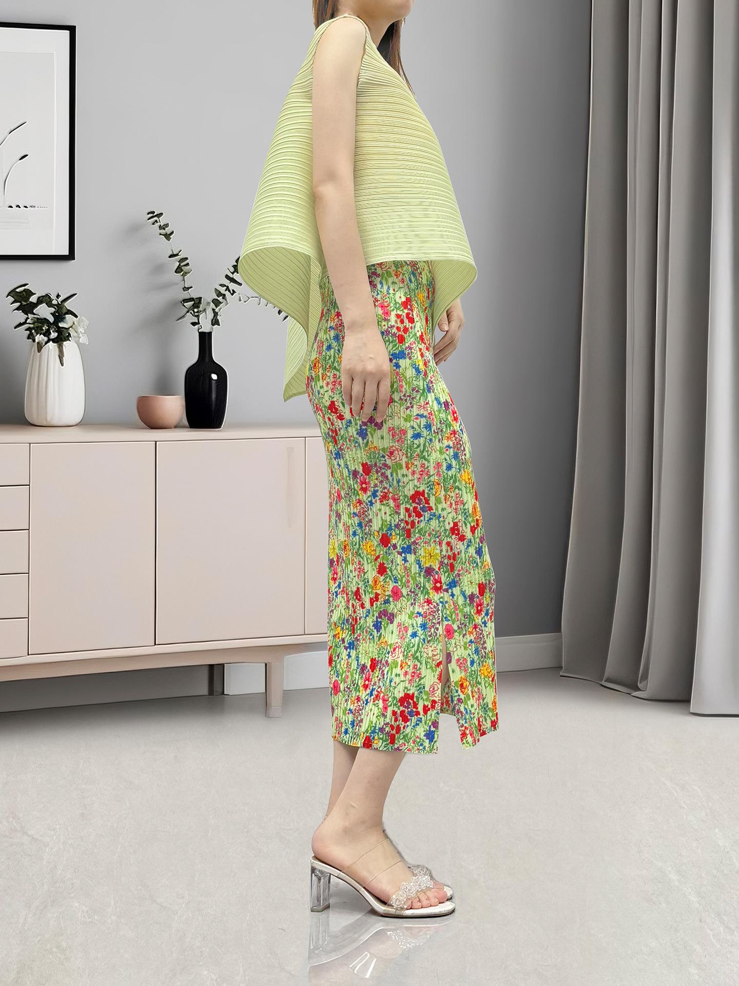 Conjunto de Ropa para Mujer de Lujo Ligero de Alta Gama Verano Estilo Vacacional Verde Más Vendido Versátil Conjunto de Dos Piezas Miyake Moderno