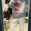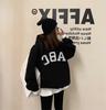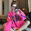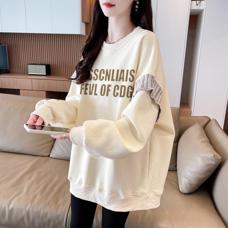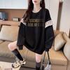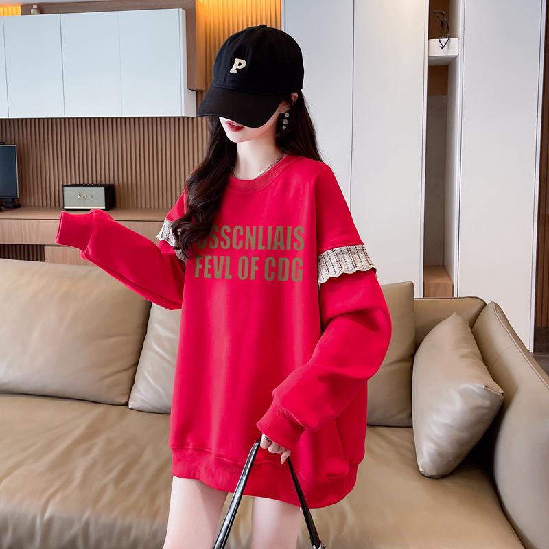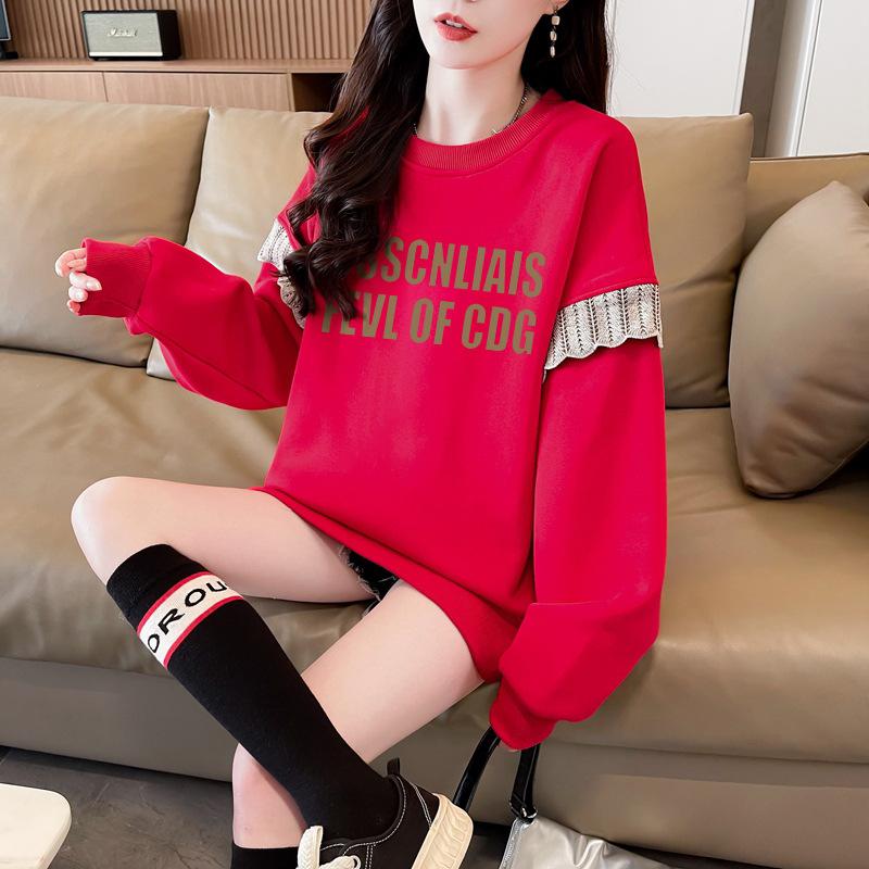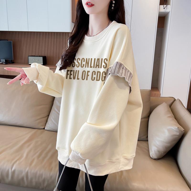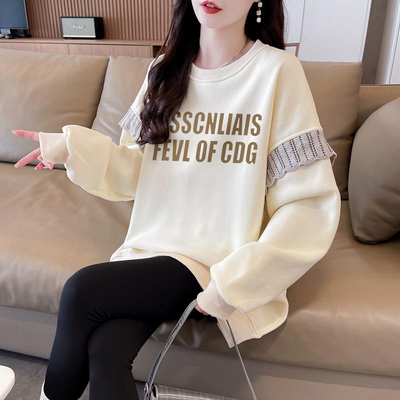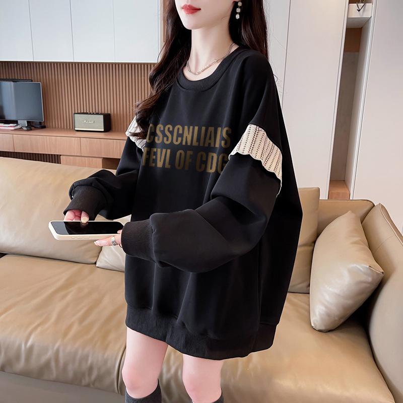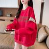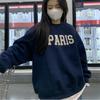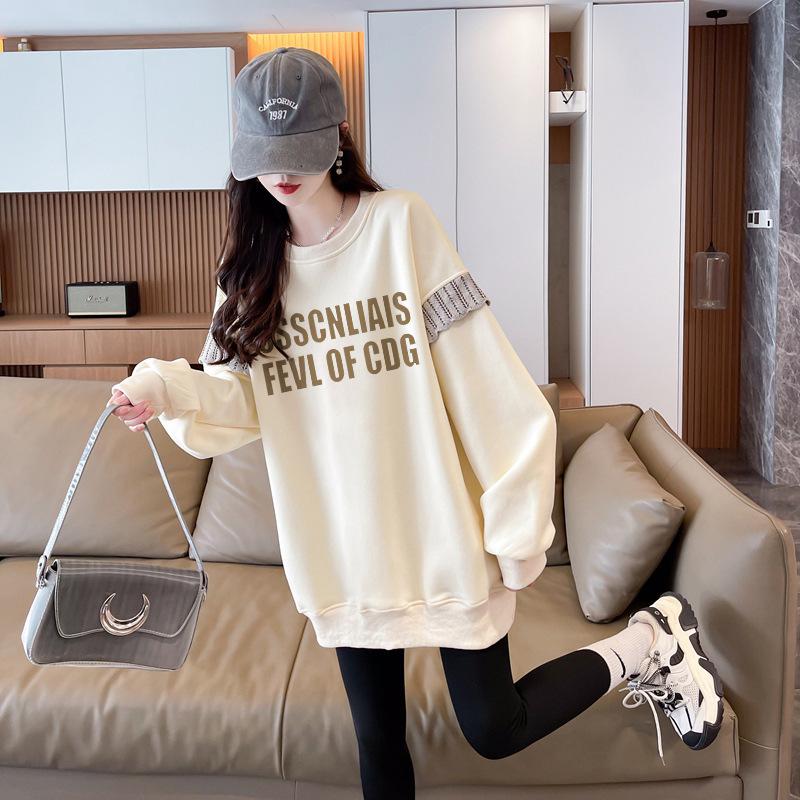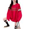 Otoño e Invierno Trendy Chic Divertido Estampado de Letras Largo Medio Oversize Forrado de Felpa Grueso Look Delgado Sudadera Cuello Redondo