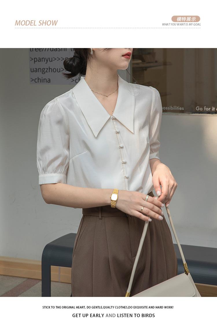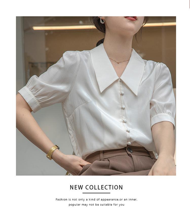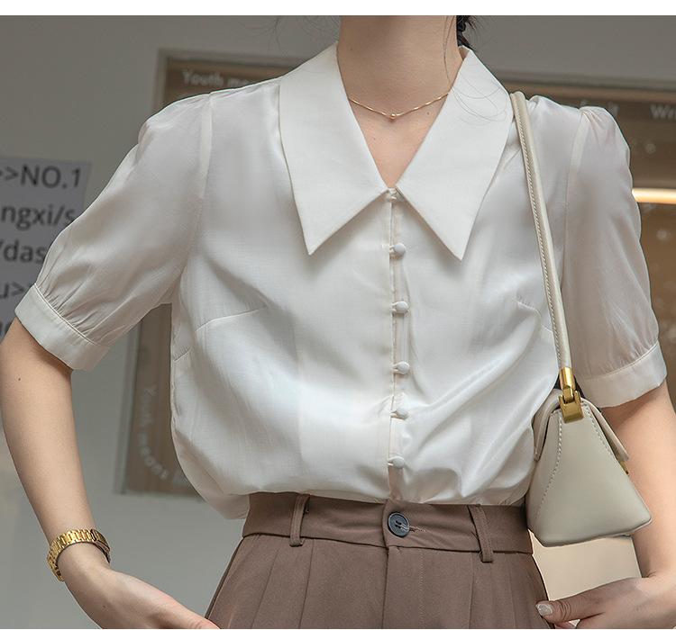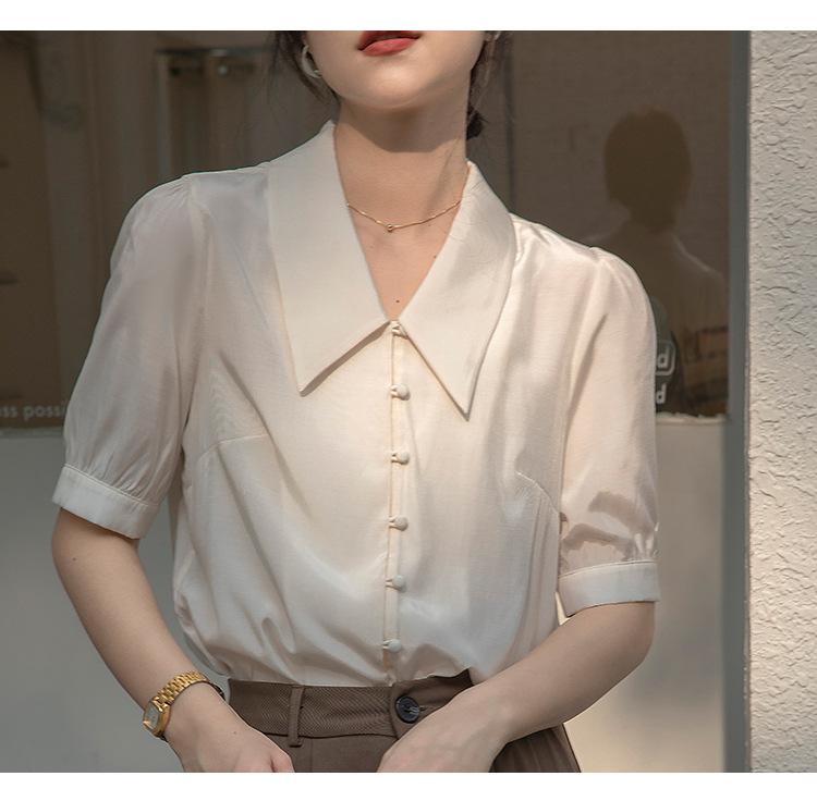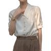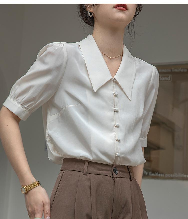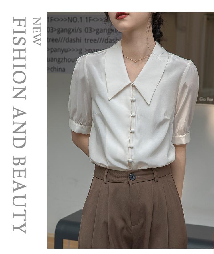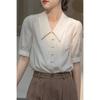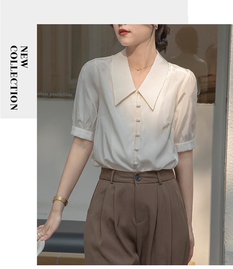 Camisa Retro Francesa de Manga Corta Mujer 2025 Principios de Otoño Nuevo Diseño Nicho Solapa Manga Abullonada Camisa A5951