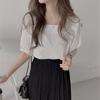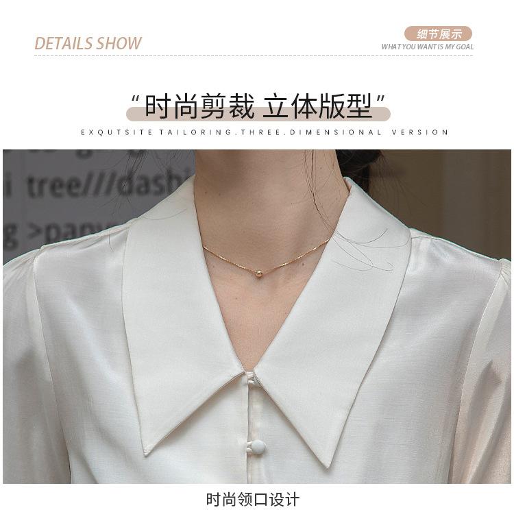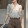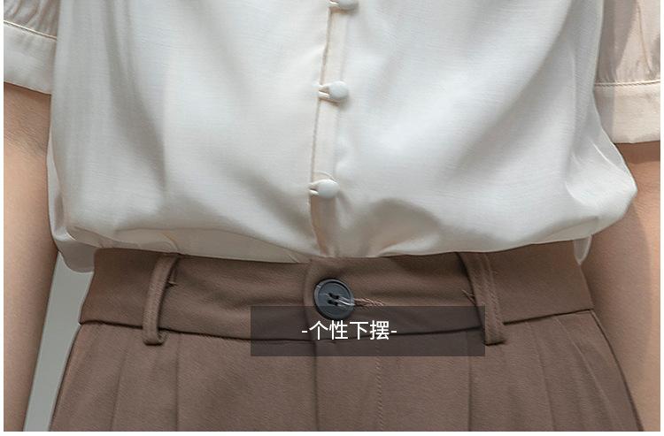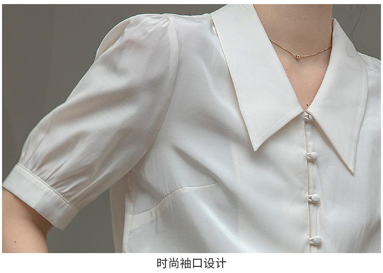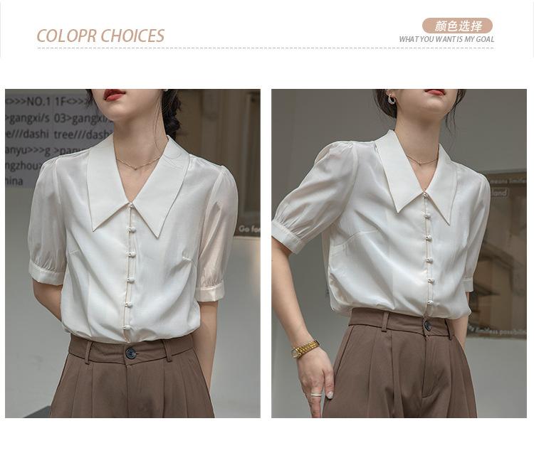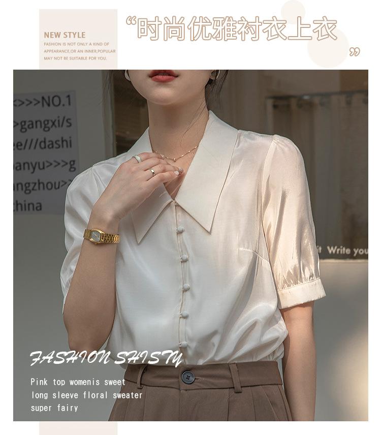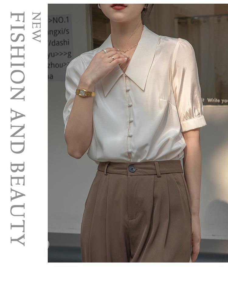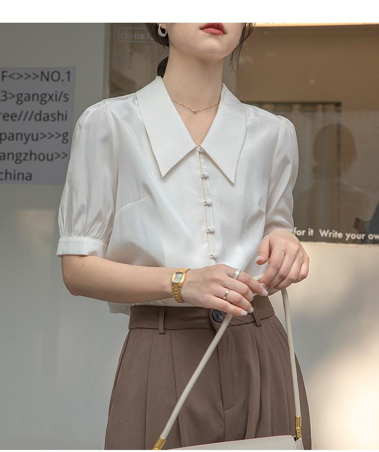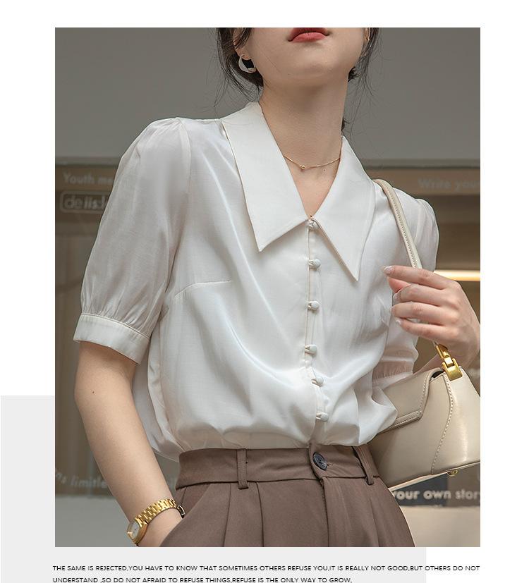 Camisa Retro Francesa de Manga Corta Mujer 2025 Principios de Otoño Nuevo Diseño Nicho Solapa Manga Abullonada Camisa A5951