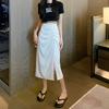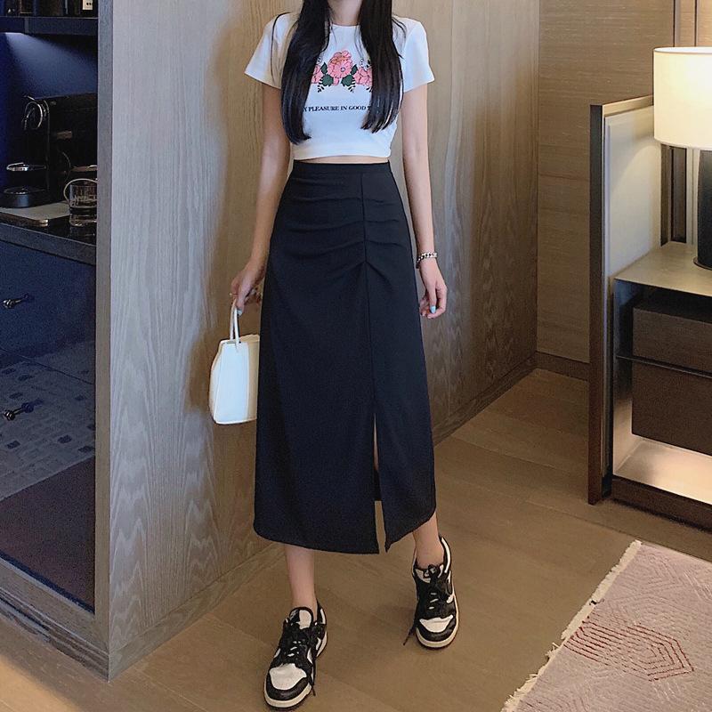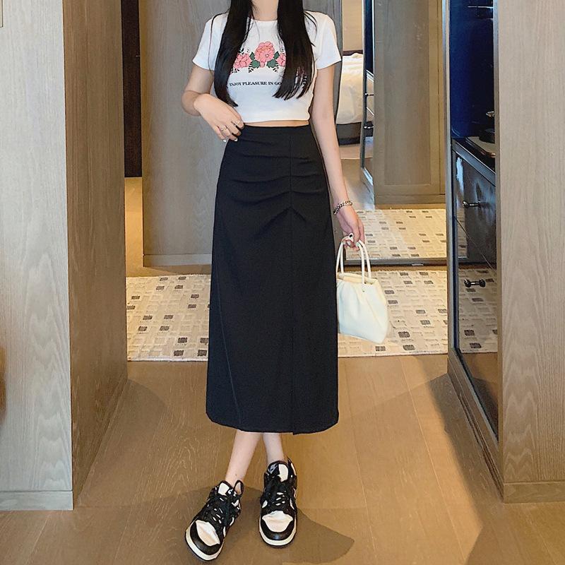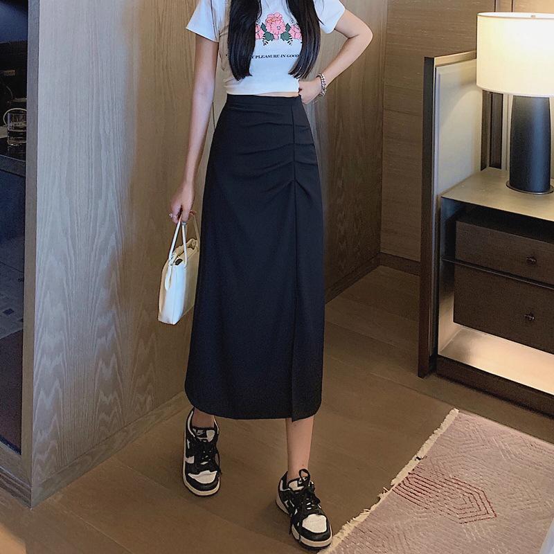 Nueva Falda de Traje Irregular de Chifón para Mujer Verano Delgada Plisada Cadera Largo Medio Abertura Falda A-Line