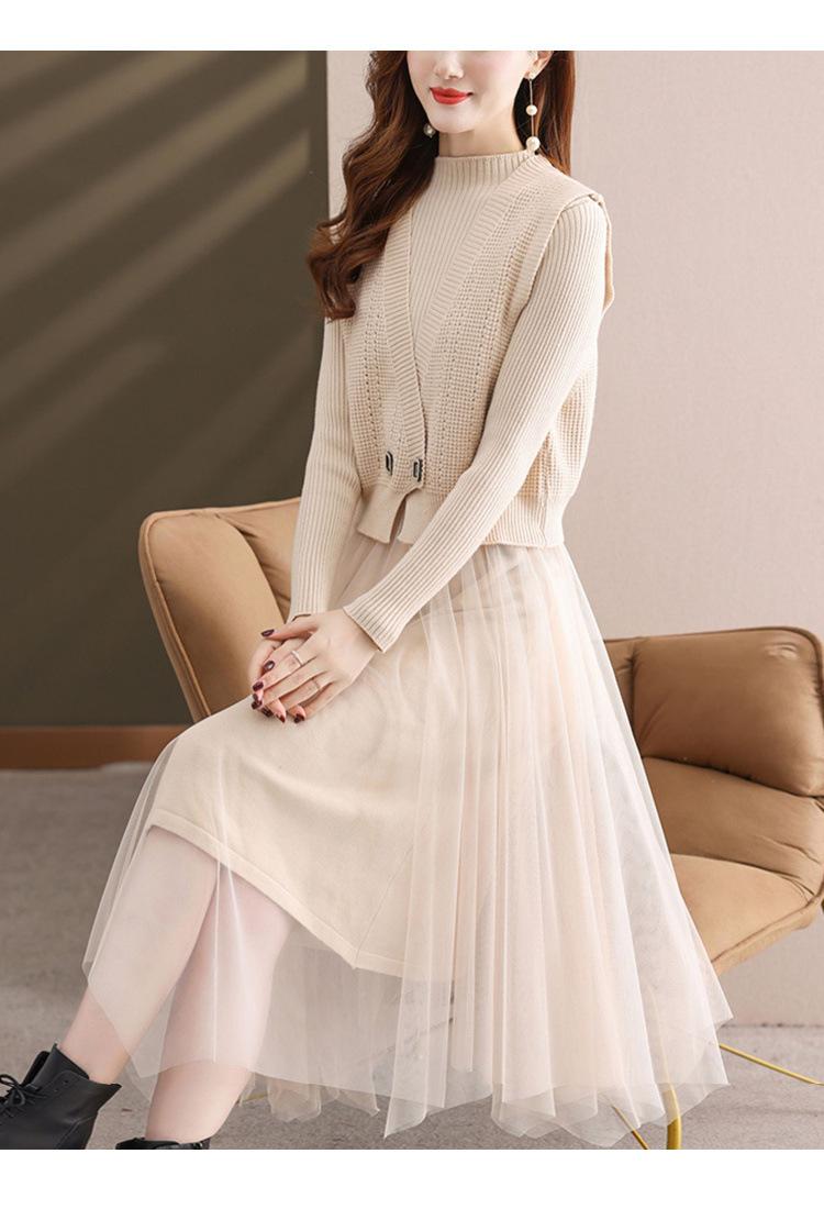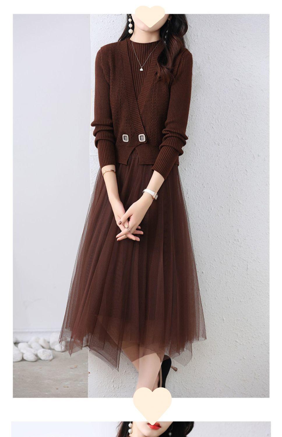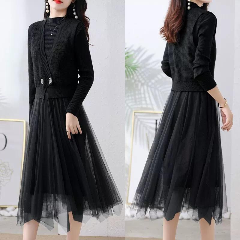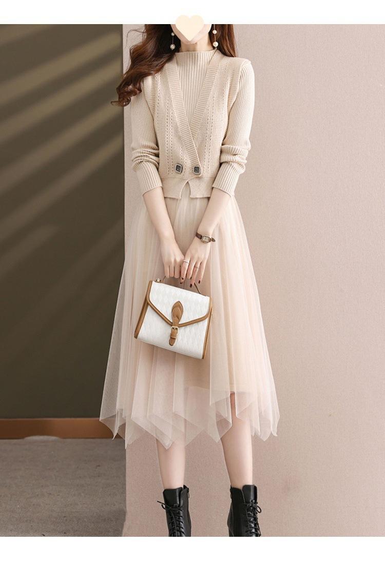Vestido Fresco de Otoño e Invierno Ropa de Otoño para Mujer 2025 Nuevo Estilo Traje de Dos Piezas Tejido de Alta Gama Falda