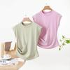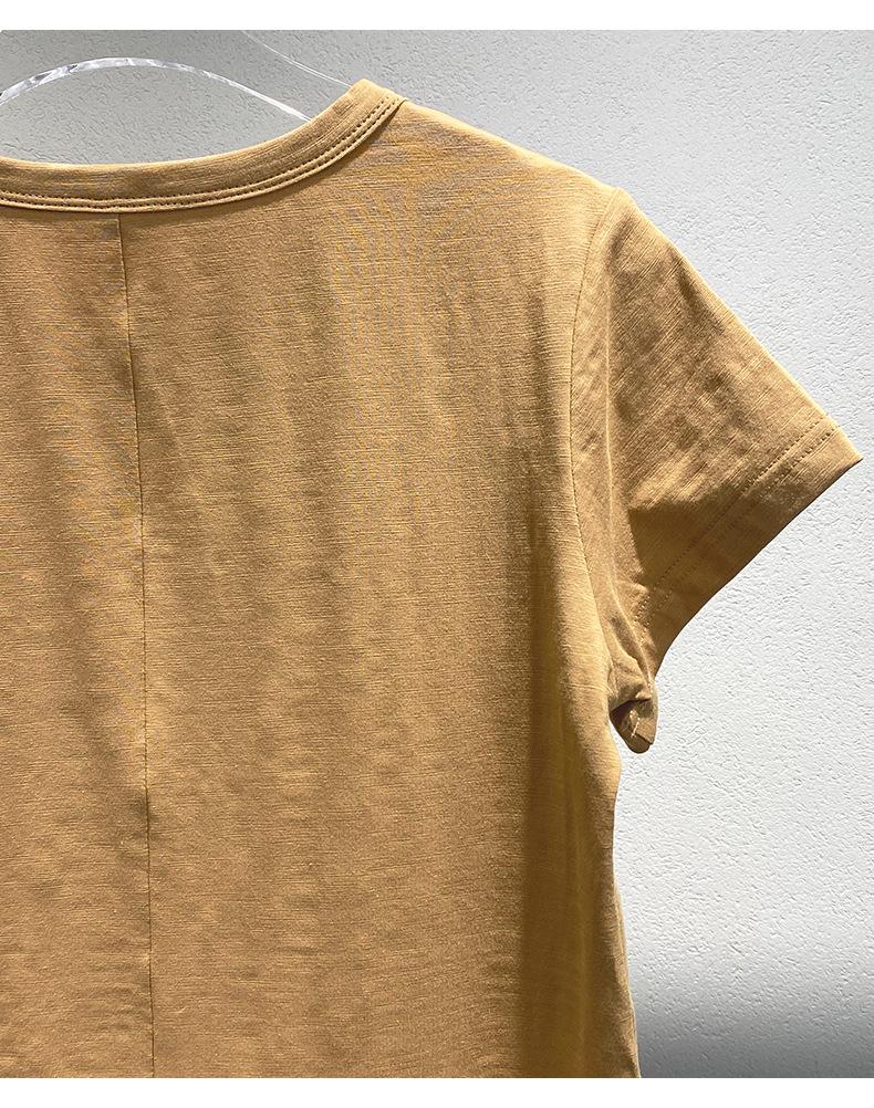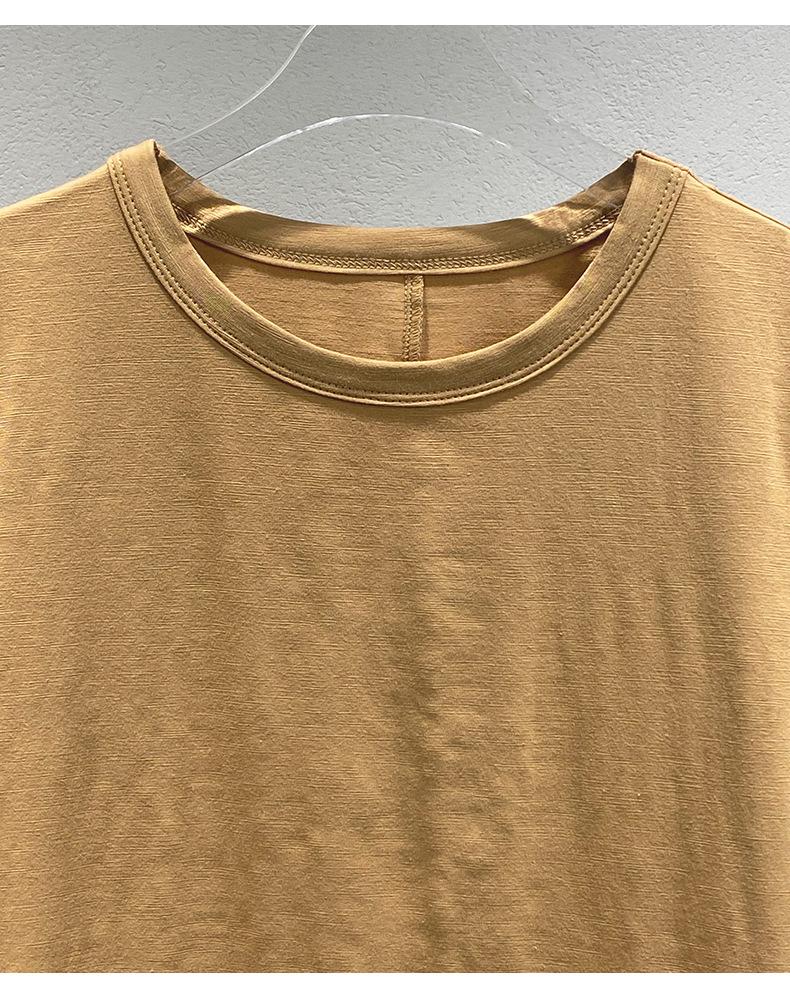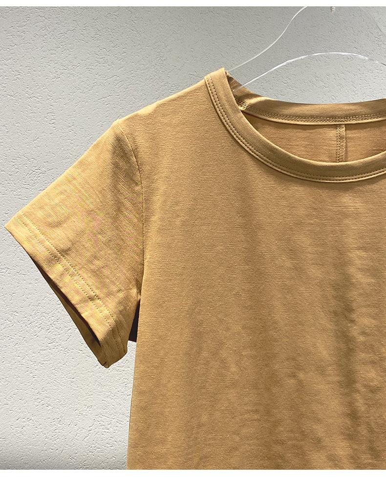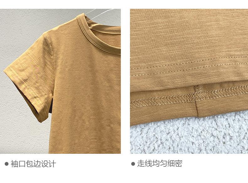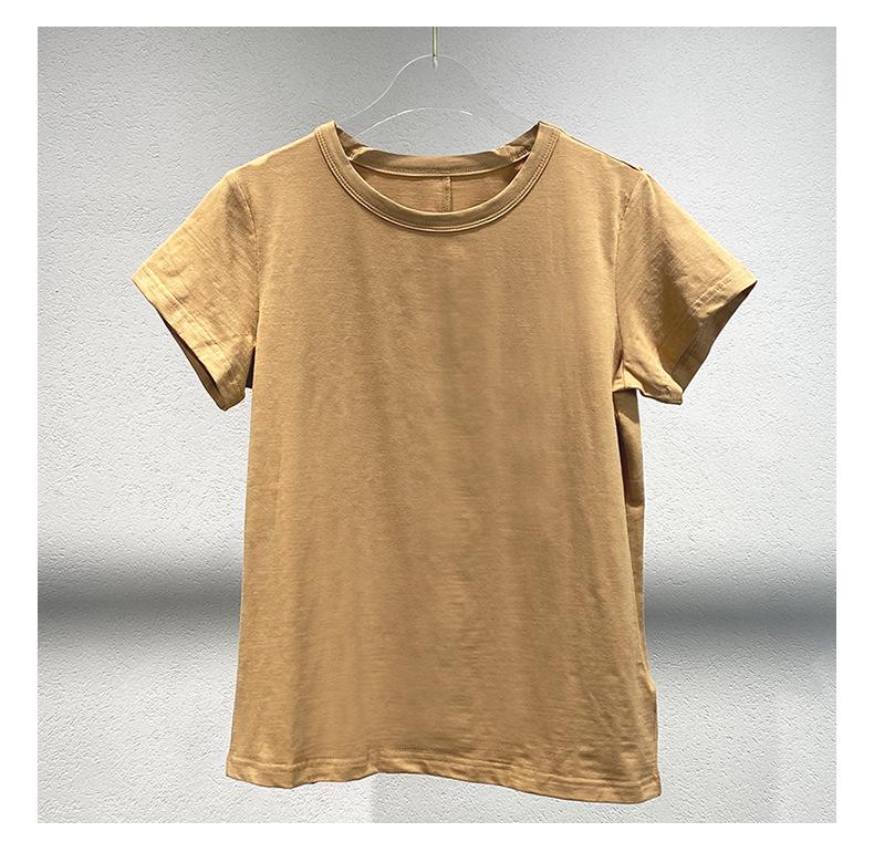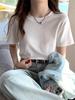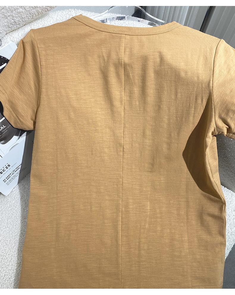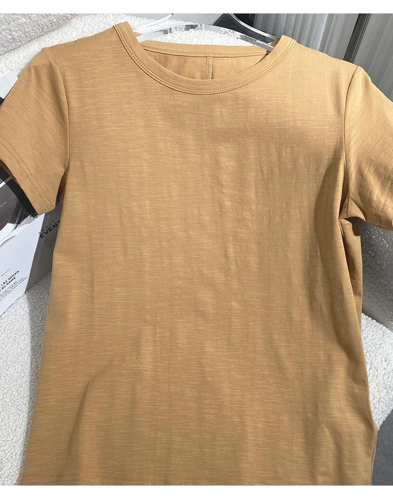 Precio Especial Nicho 2024 Verano Nuevo Camiseta Casual Holgada Combinable Cuello Redondo Manga Corta Color Sólido Top Sencillo para Mujer