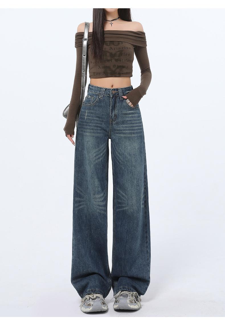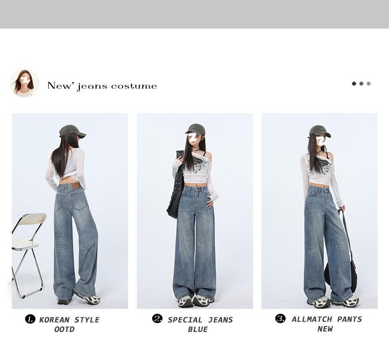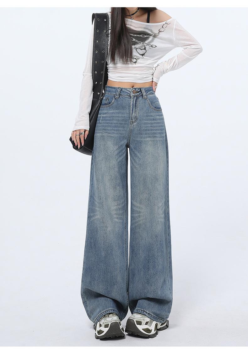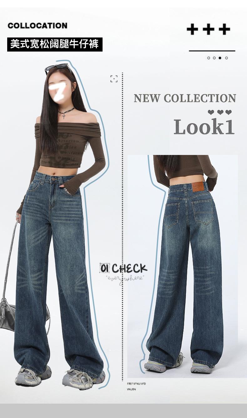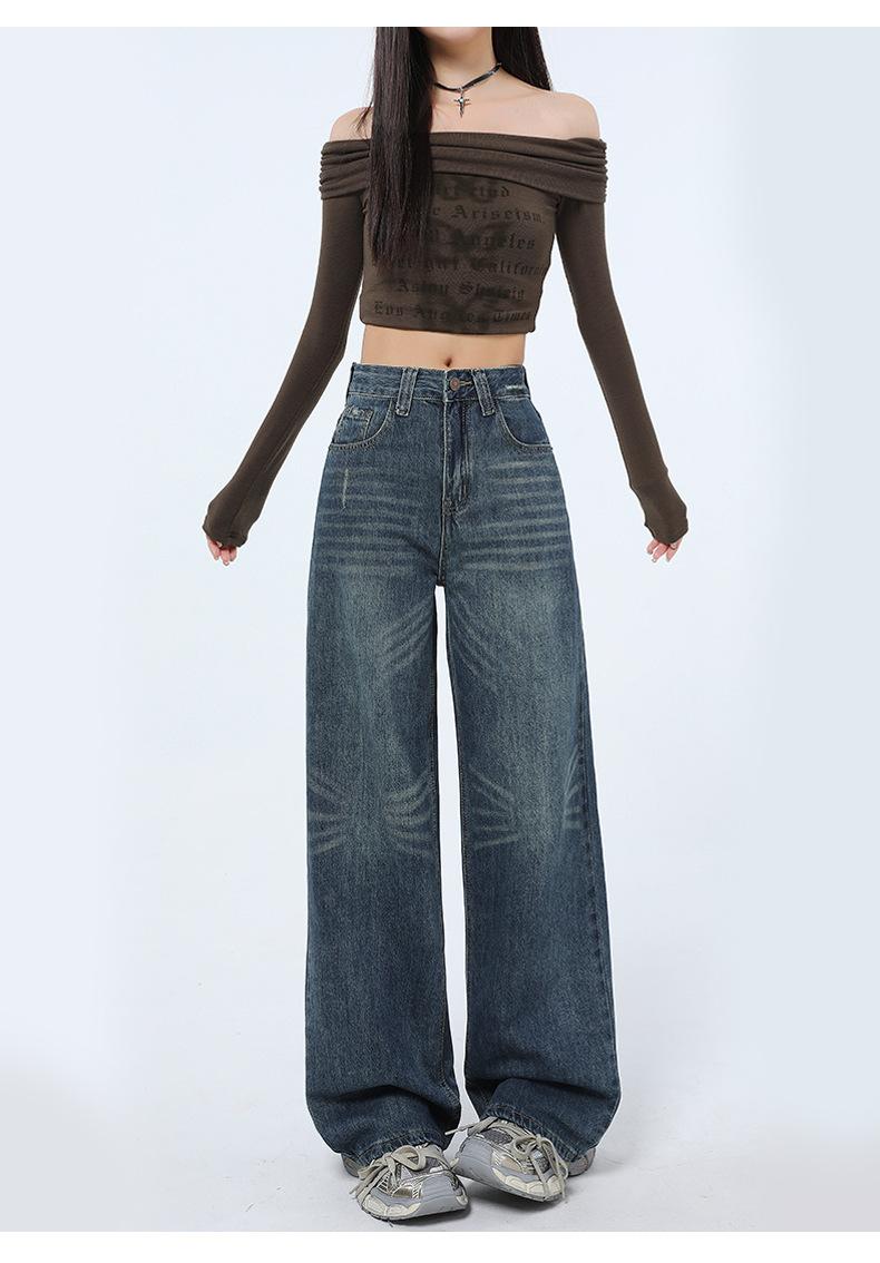 Jeans Americanos Retro de Pierna Ancha Mujer 2025 Otoño Nuevo Cintura Alta Sueltos Adelgazantes Versátiles Pierna Recta Pantalones Largos hasta el Piso