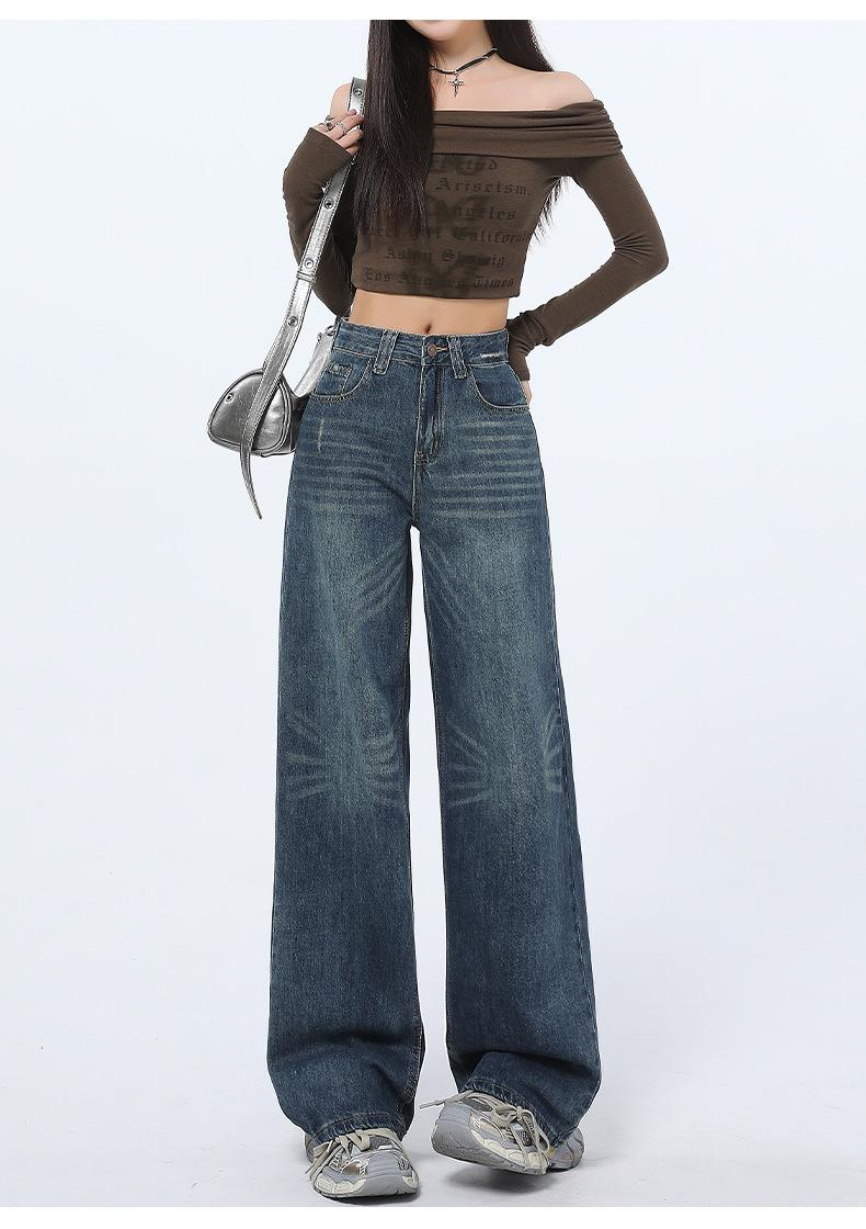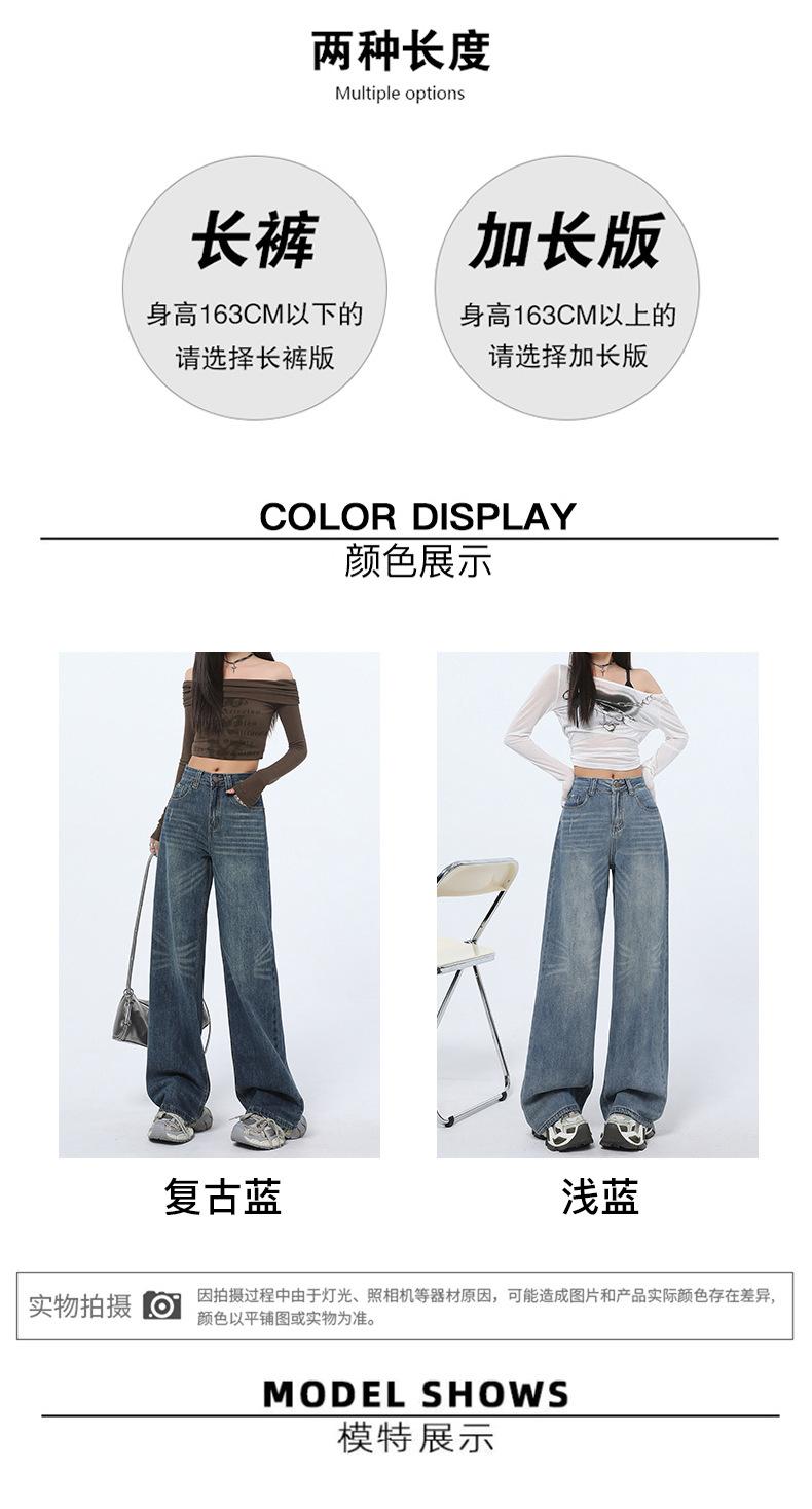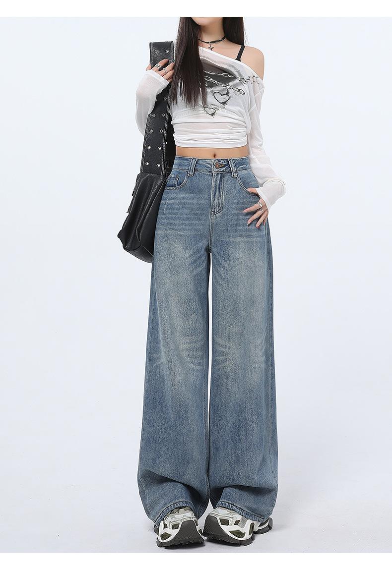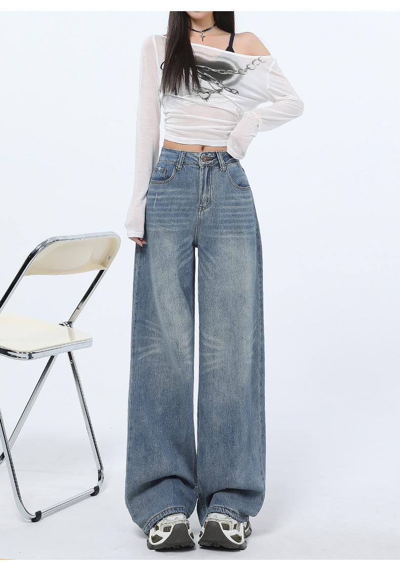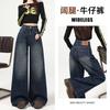 Jeans Americanos Retro de Pierna Ancha Mujer 2025 Otoño Nuevo Cintura Alta Sueltos Adelgazantes Versátiles Pierna Recta Pantalones Largos hasta el Piso