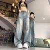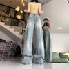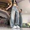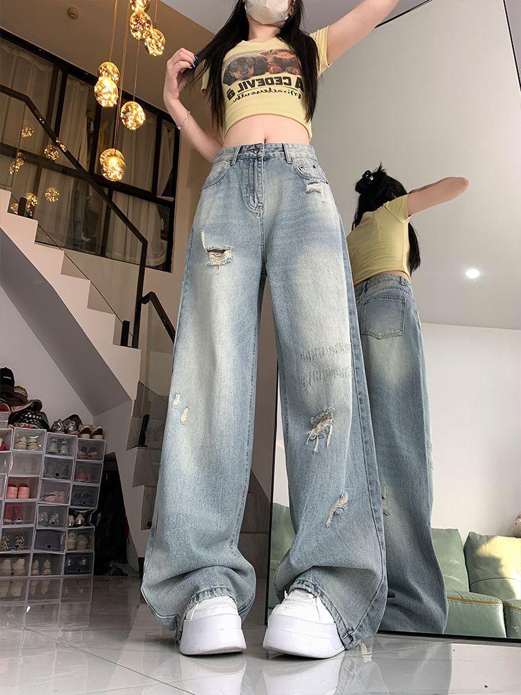 Jeans Rotos Americanos de Calle para Mujer Verano 2025 Rectos Ligeramente Sueltos Cintura Alta Slim Pierna Ancha