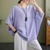 Camisa fina de primavera y verano para mujer, nueva blusa holgada de manga corta con temperamento de moda coreana y mangas murciélago para mujer