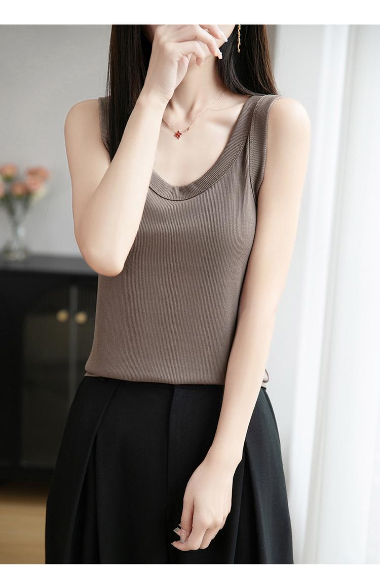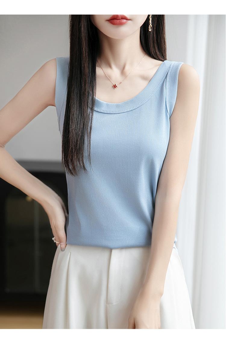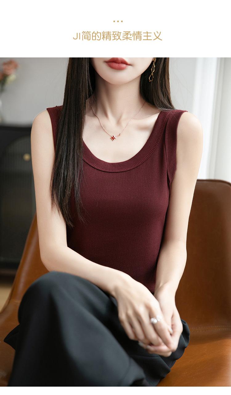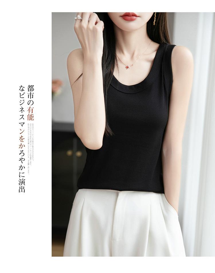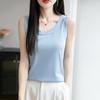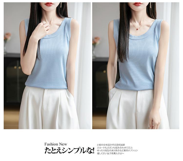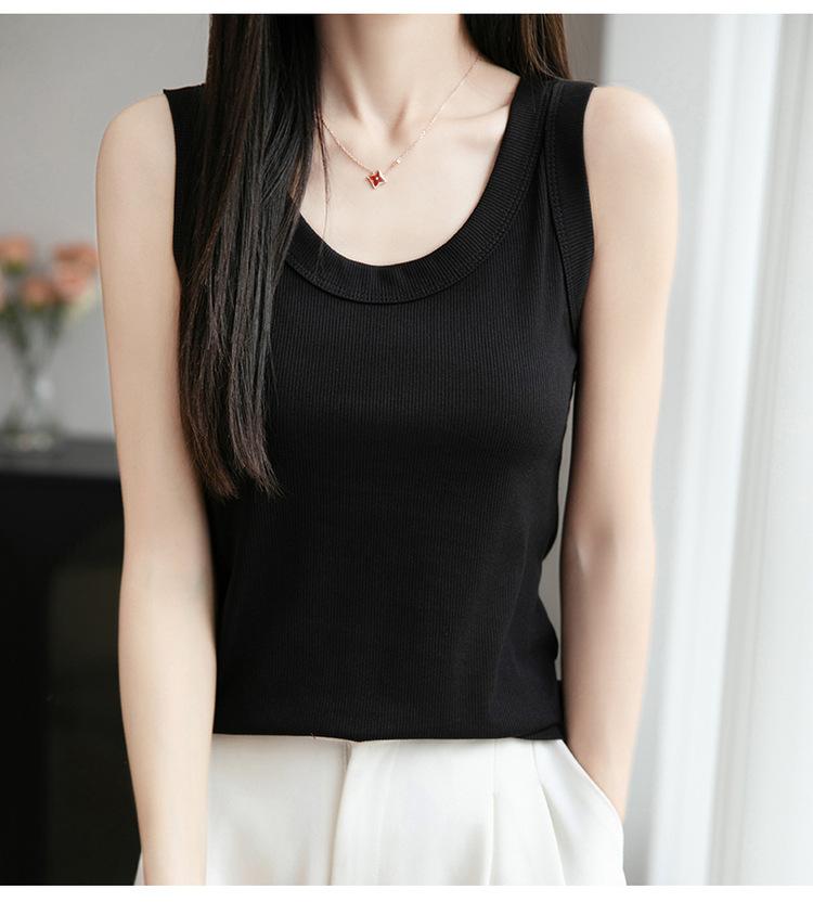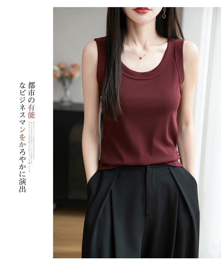 2025 Nuevo Verano Camisola de Punto de Cuello Redondo Color Puro Interior Sin Mangas Jersey Elegante Camiseta Básica Top