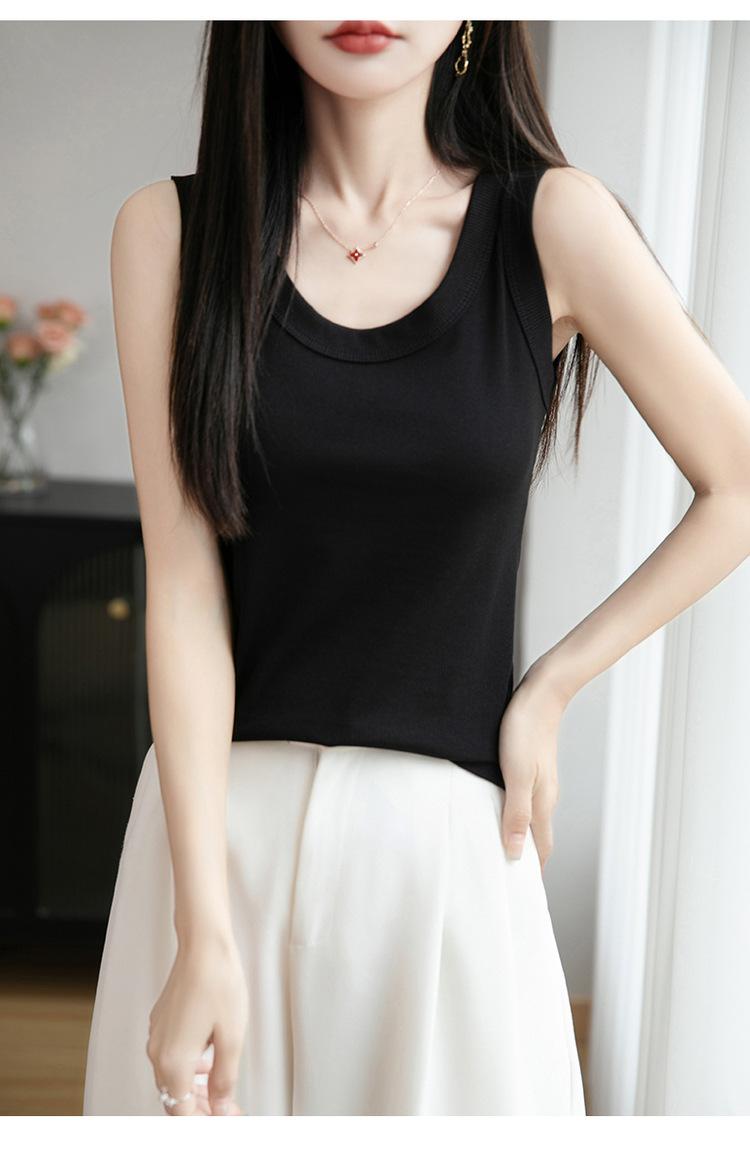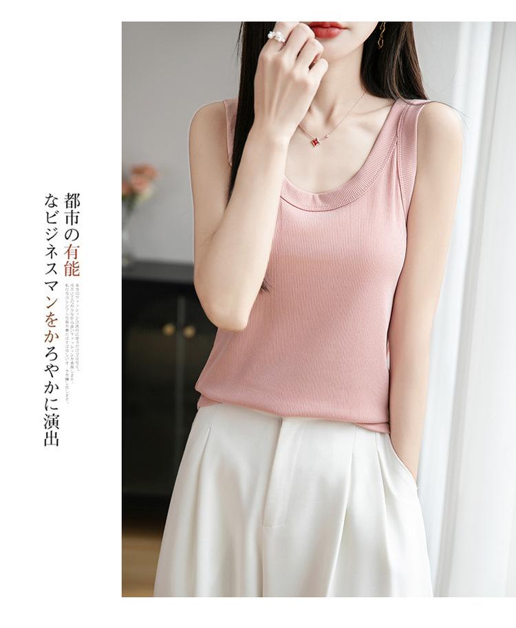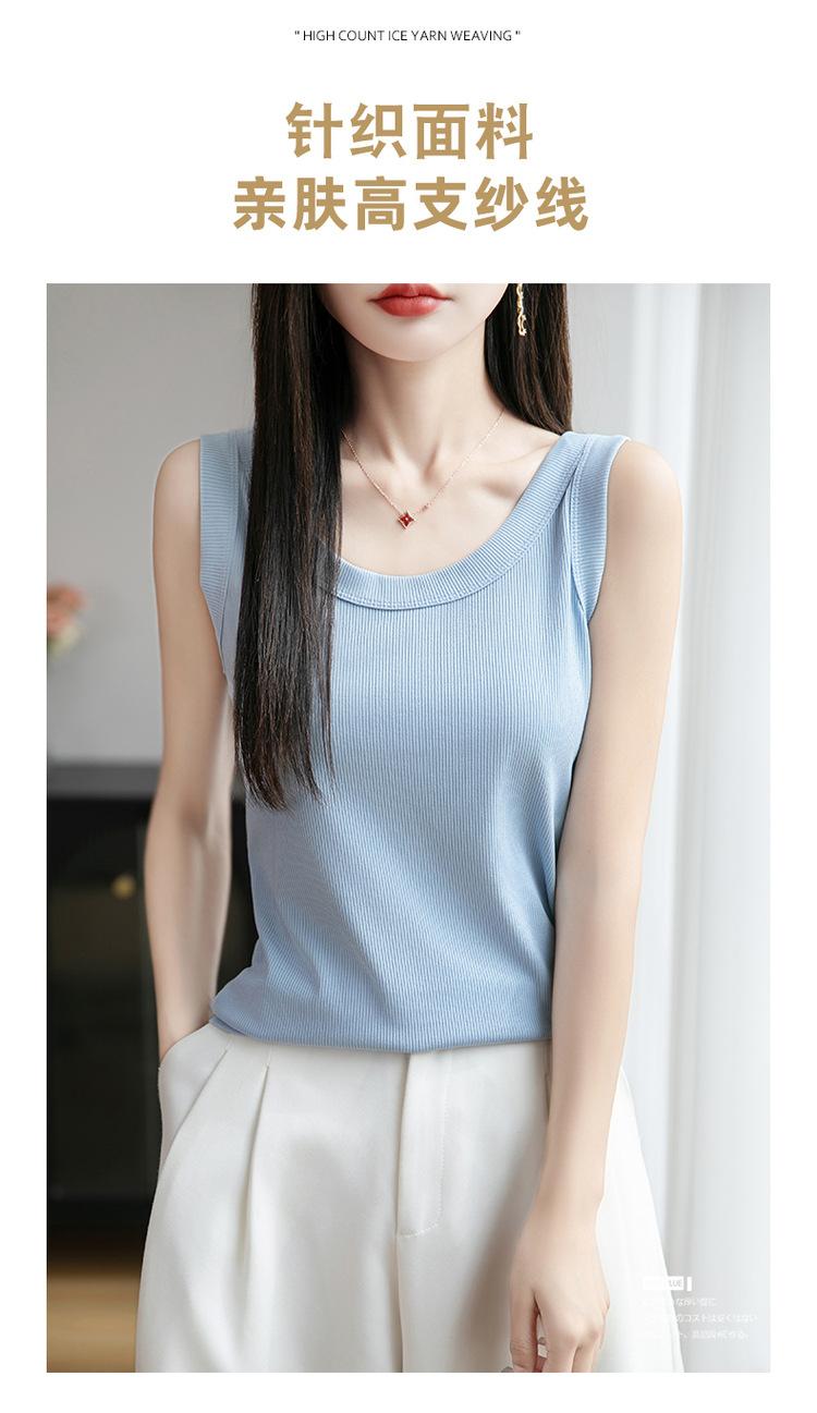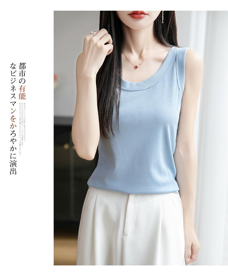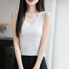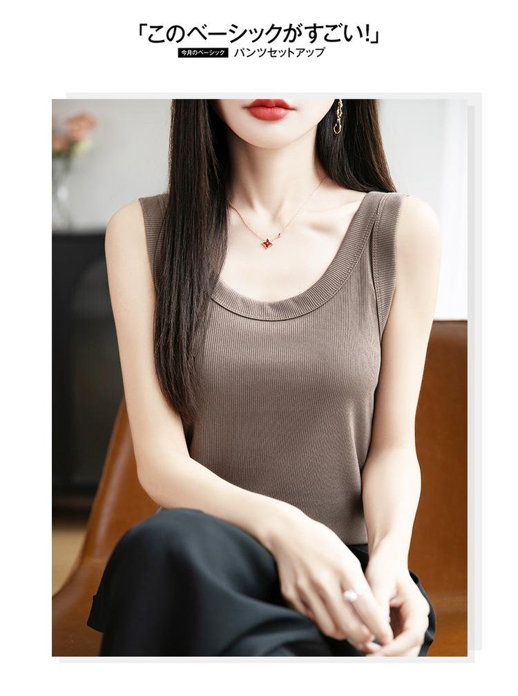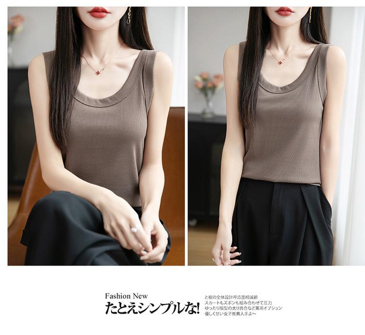 2025 Nuevo Verano Camisola de Punto de Cuello Redondo Color Puro Interior Sin Mangas Jersey Elegante Camiseta Básica Top