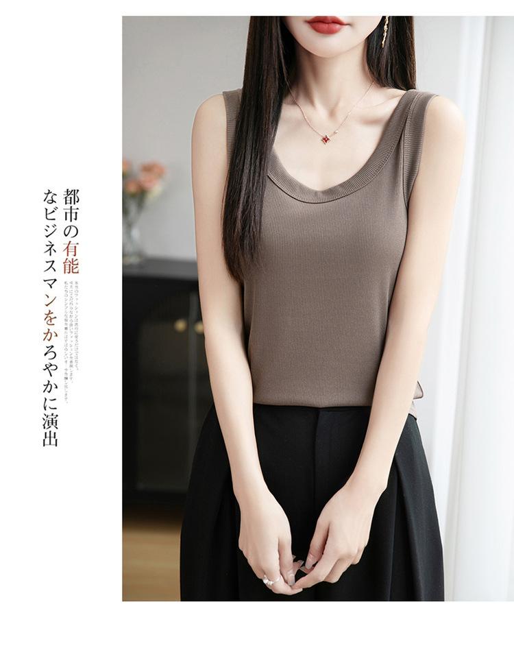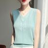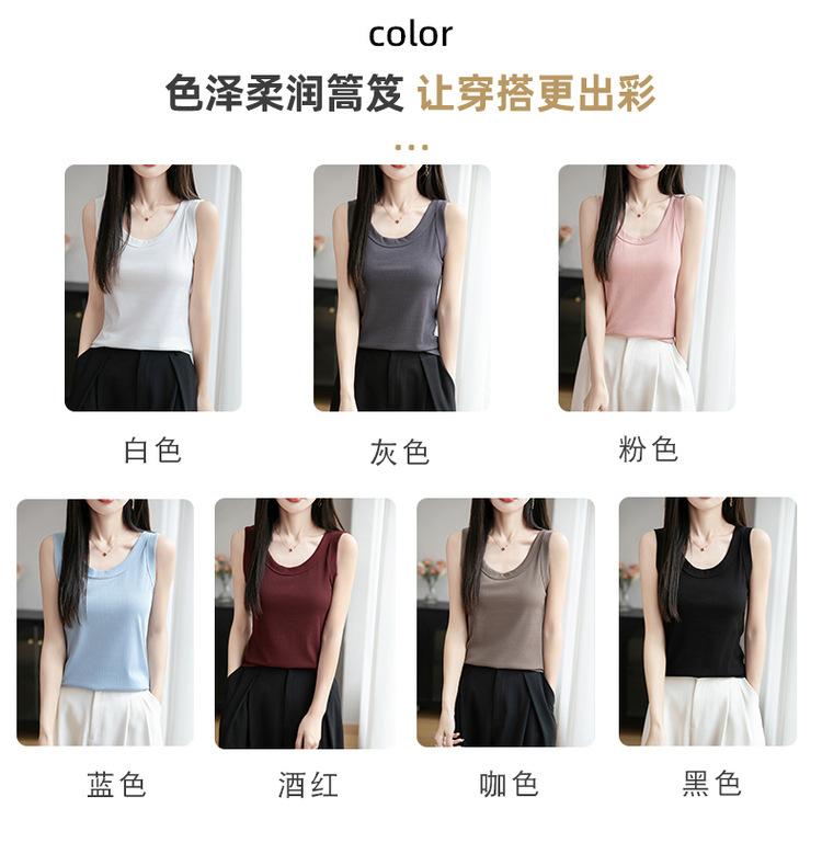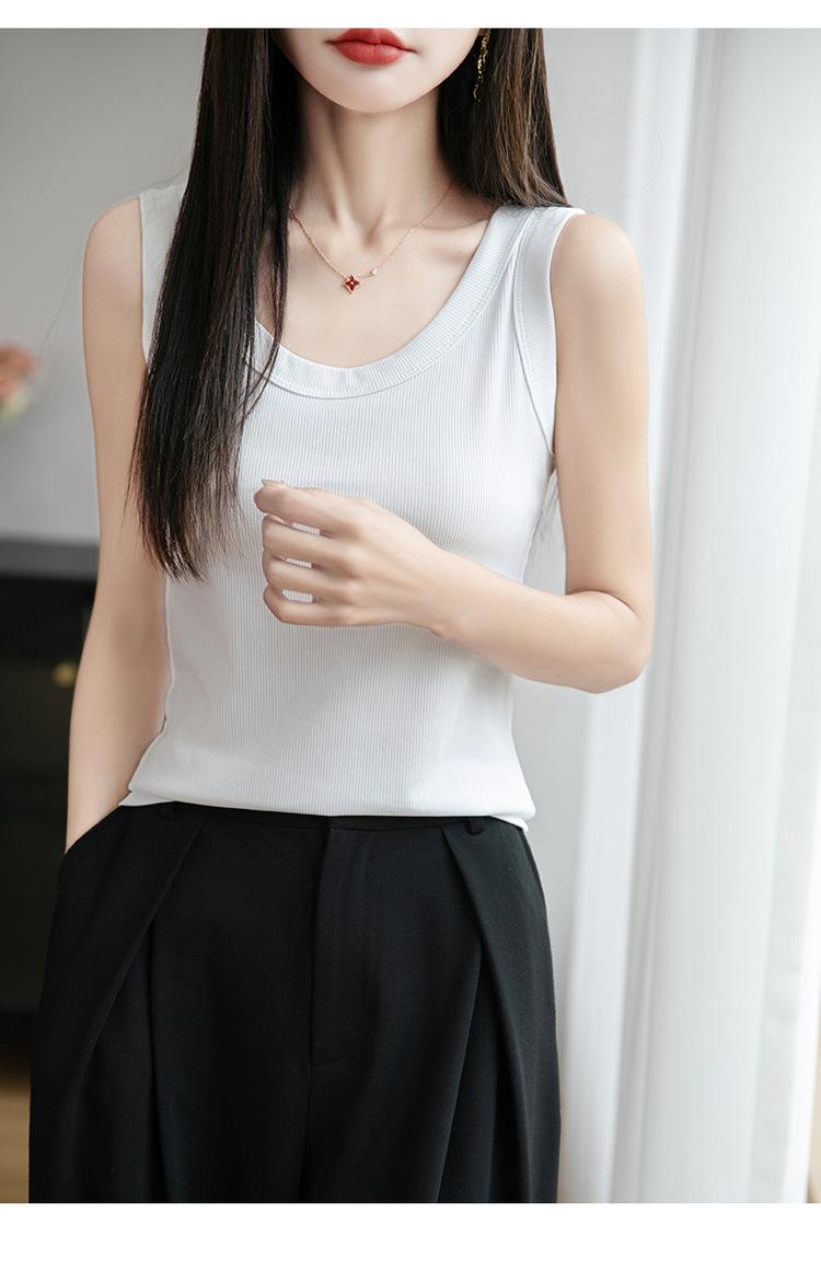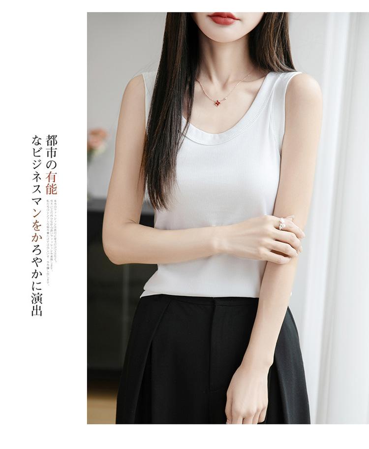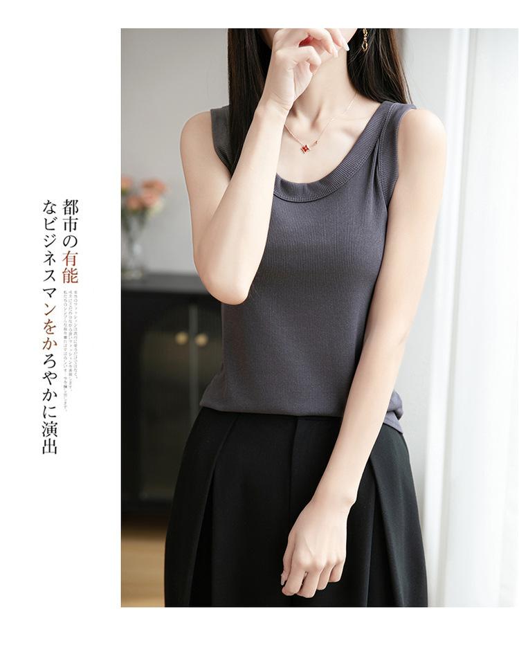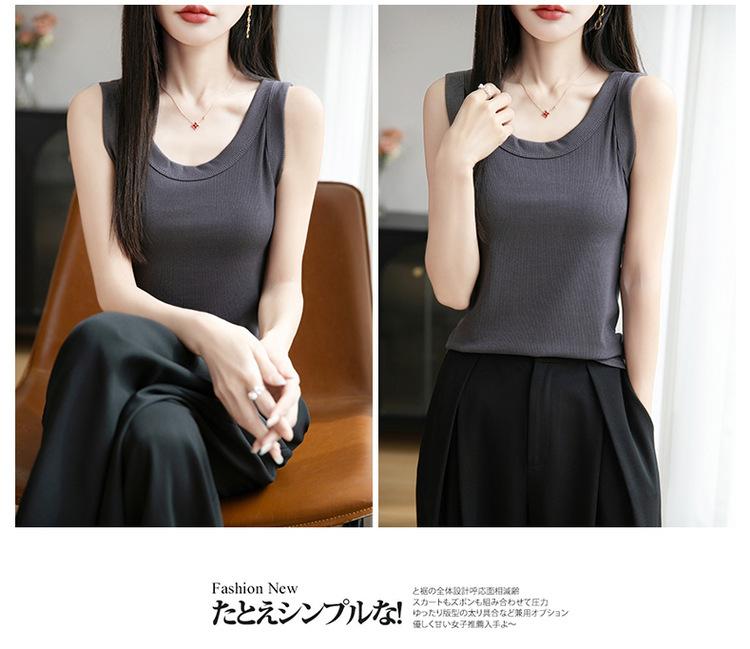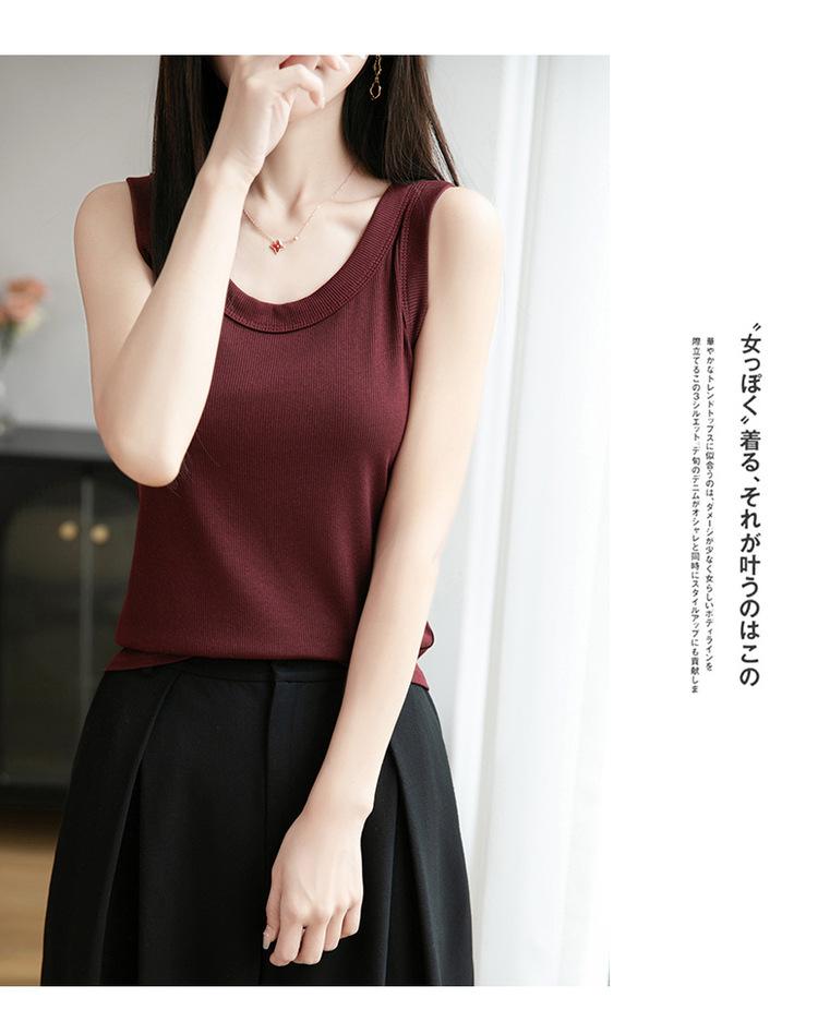 2025 Nuevo Verano Camisola de Punto de Cuello Redondo Color Puro Interior Sin Mangas Jersey Elegante Camiseta Básica Top