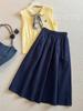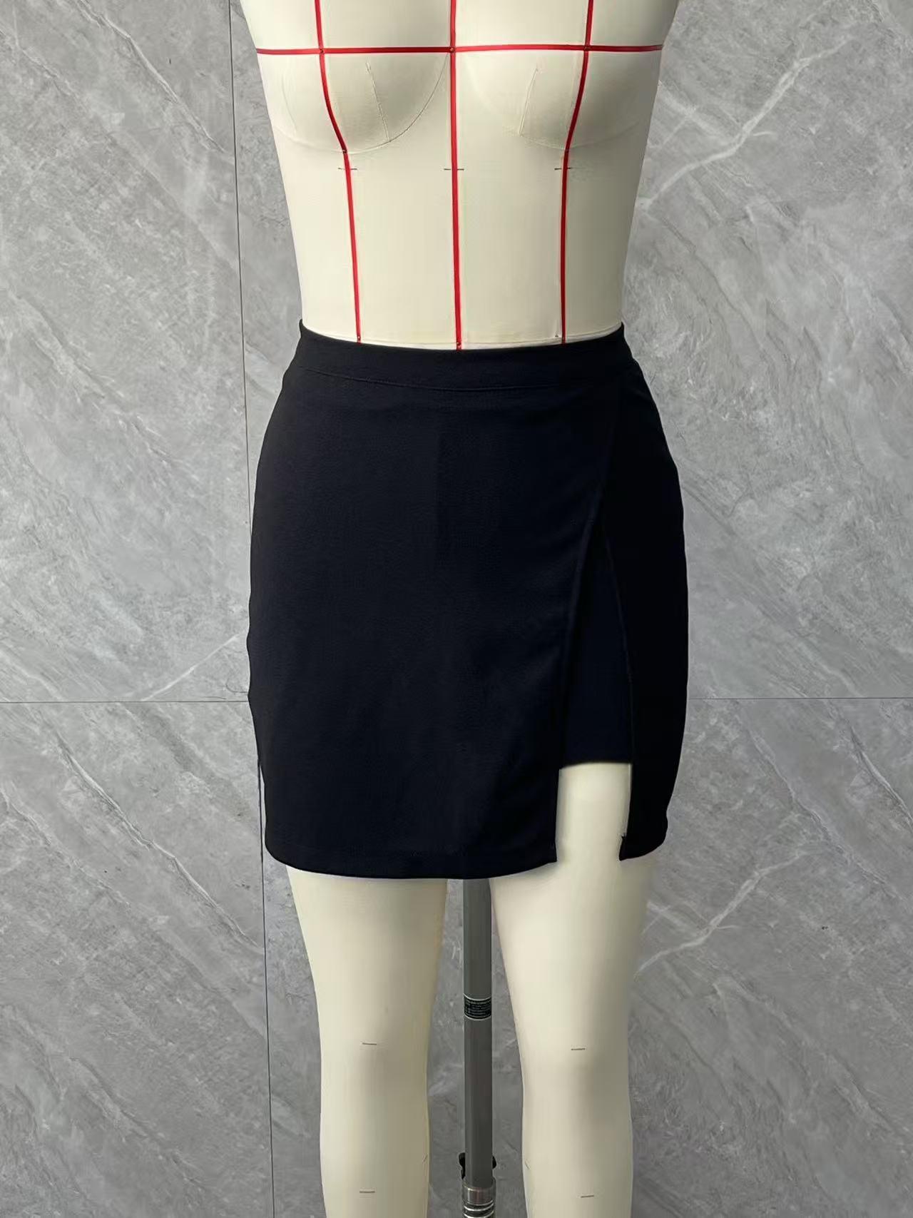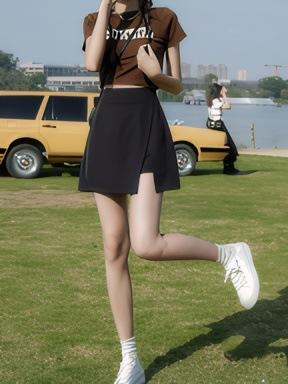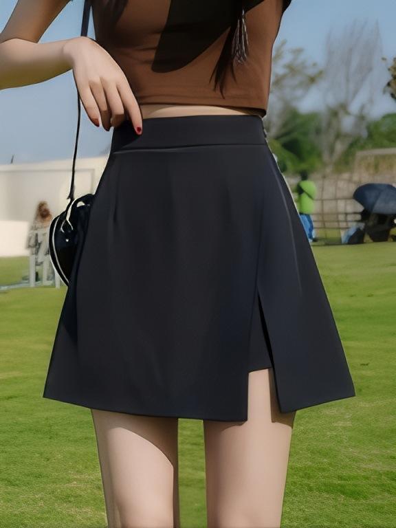 2025 Nueva Falda Corta Negra Japonesa con Abertura Petite de Media Longitud Falda A-Line Adelgazante para Figura de Pera de Gama Alta