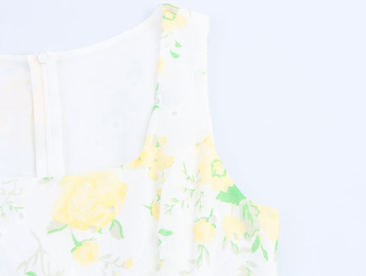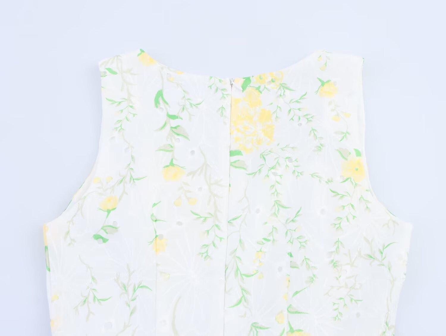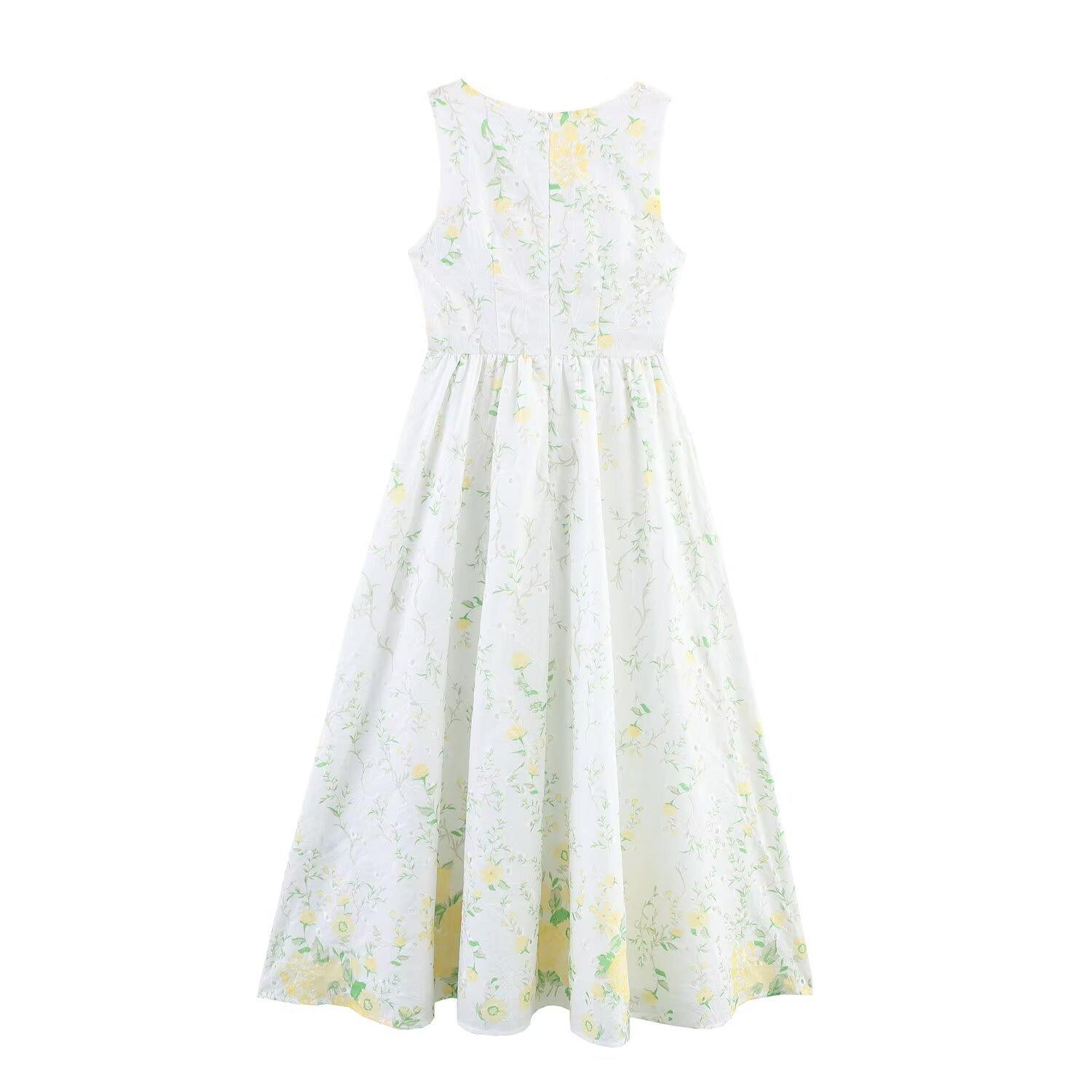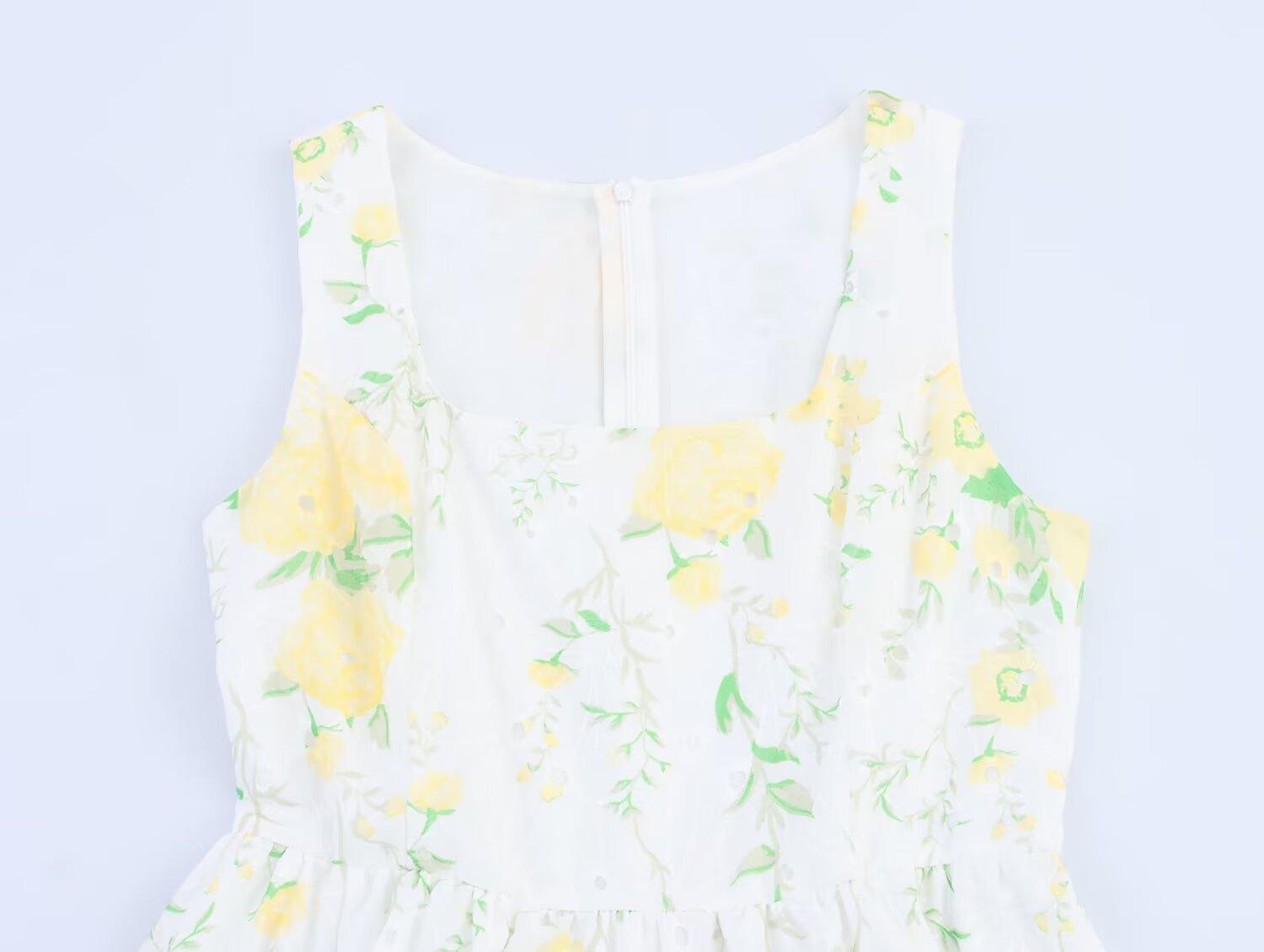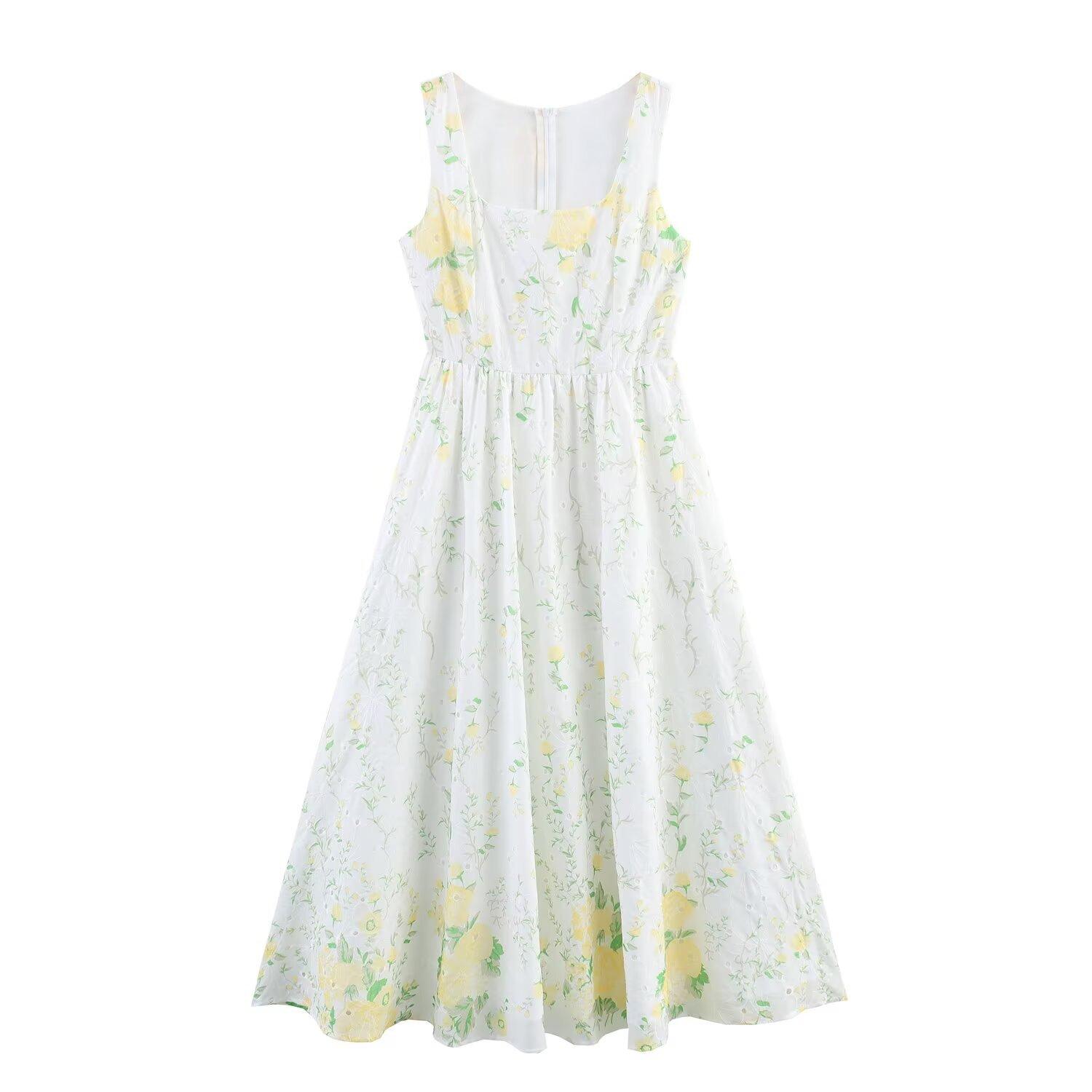 2025 Ropa Nueva de Verano para Mujer Estilo Europeo y Americano Moda Bordado Bajo Amplio Cuello Cuadrado Vestido sin Mangas