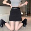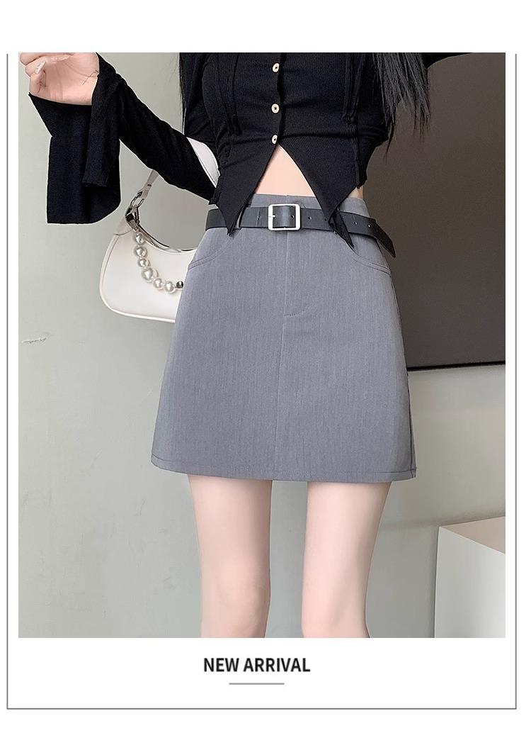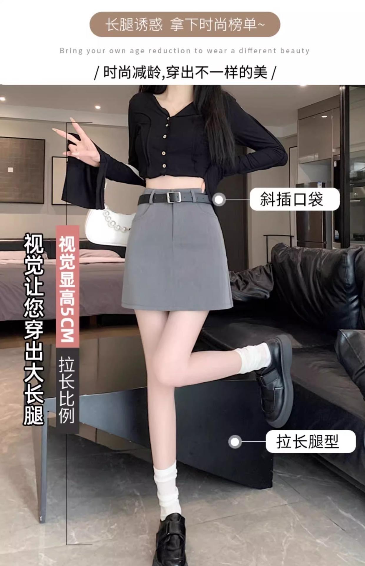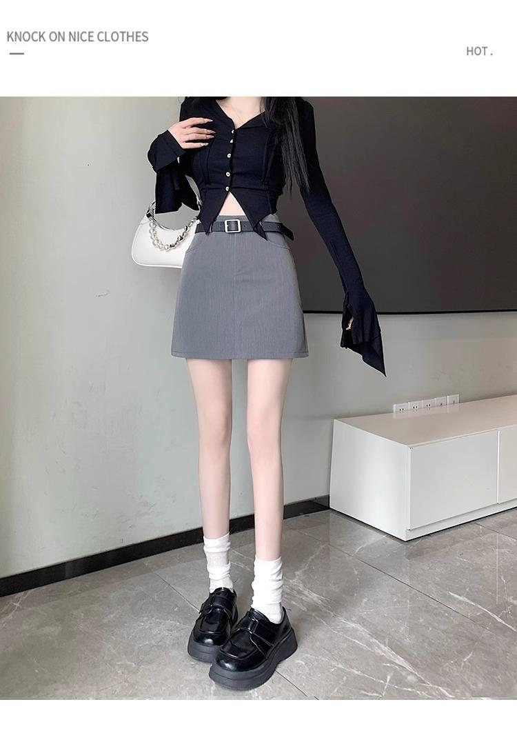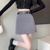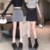 Falda Midi de Traje Gris Mujer 2025 Nueva Primavera Verano Petite Cintura Alta Falda Corta Adelgazante A-line Un Paso Bodycon
