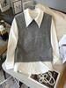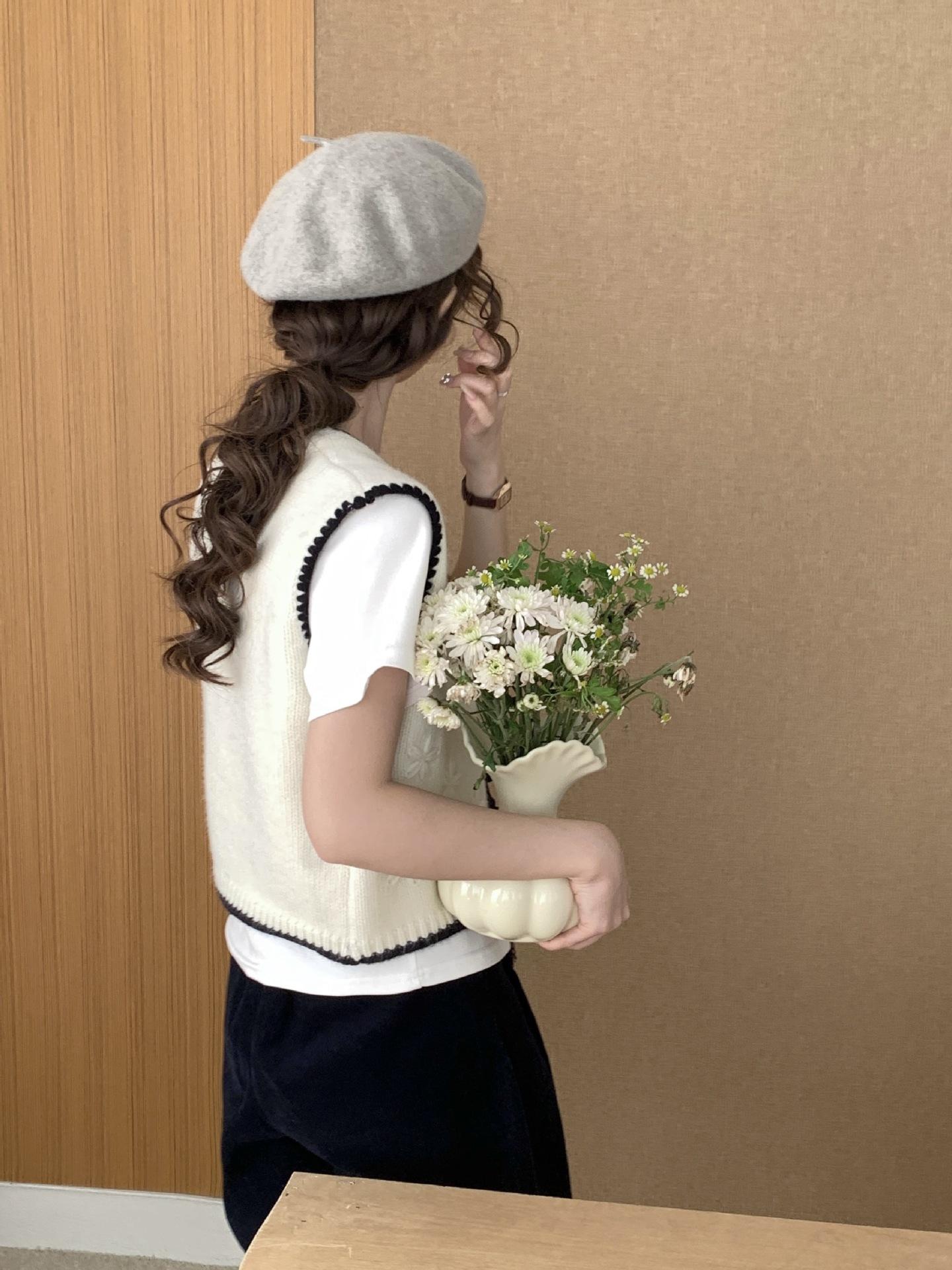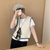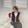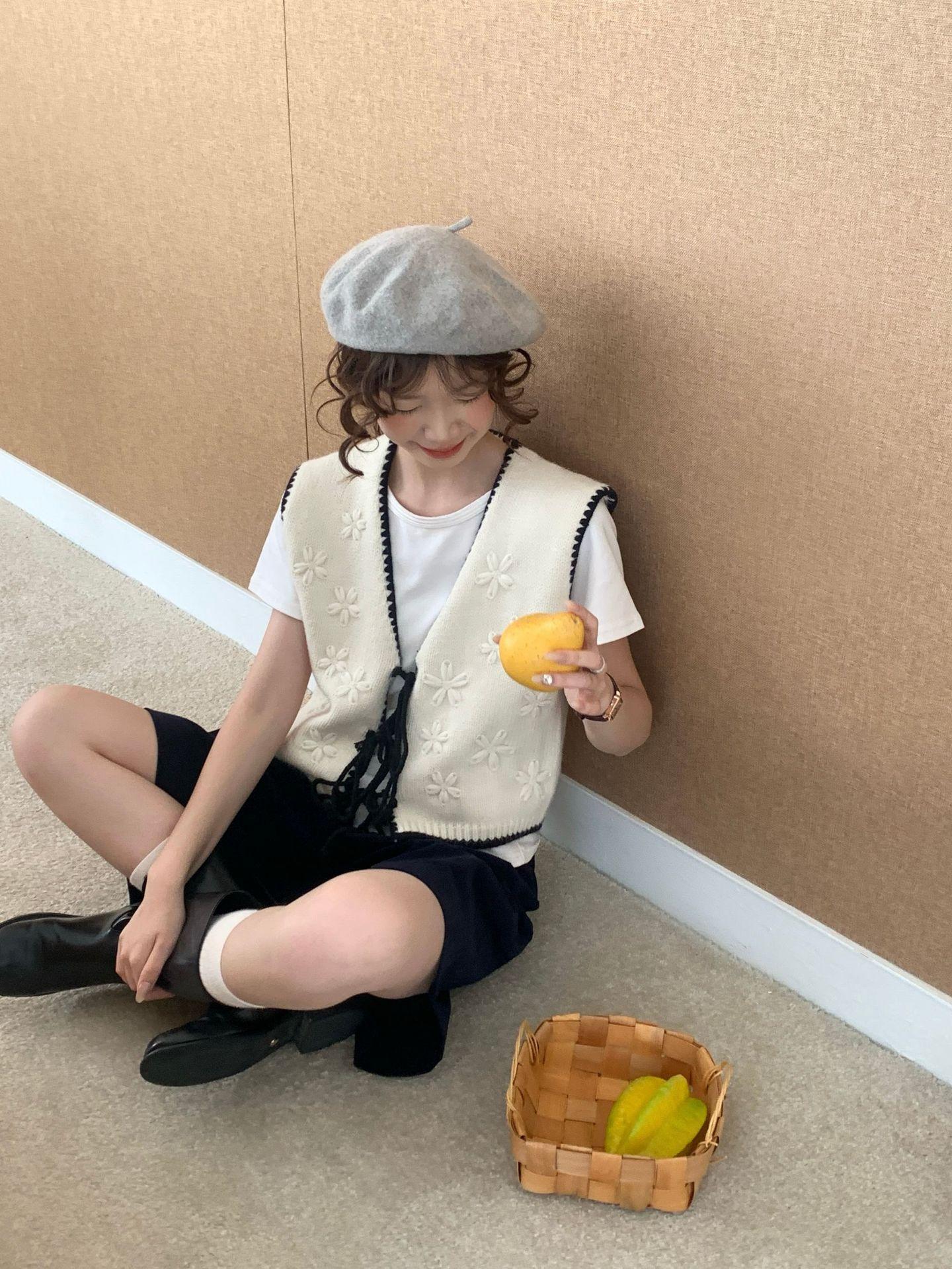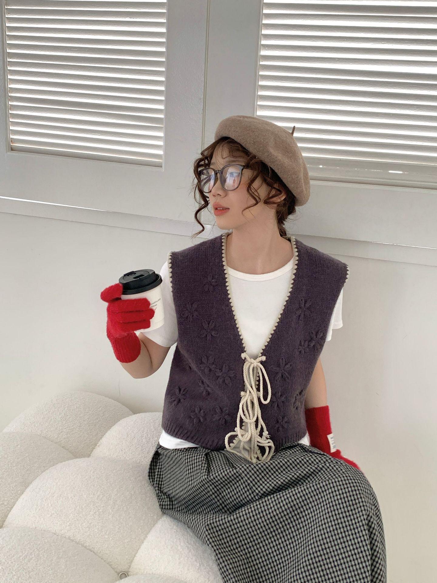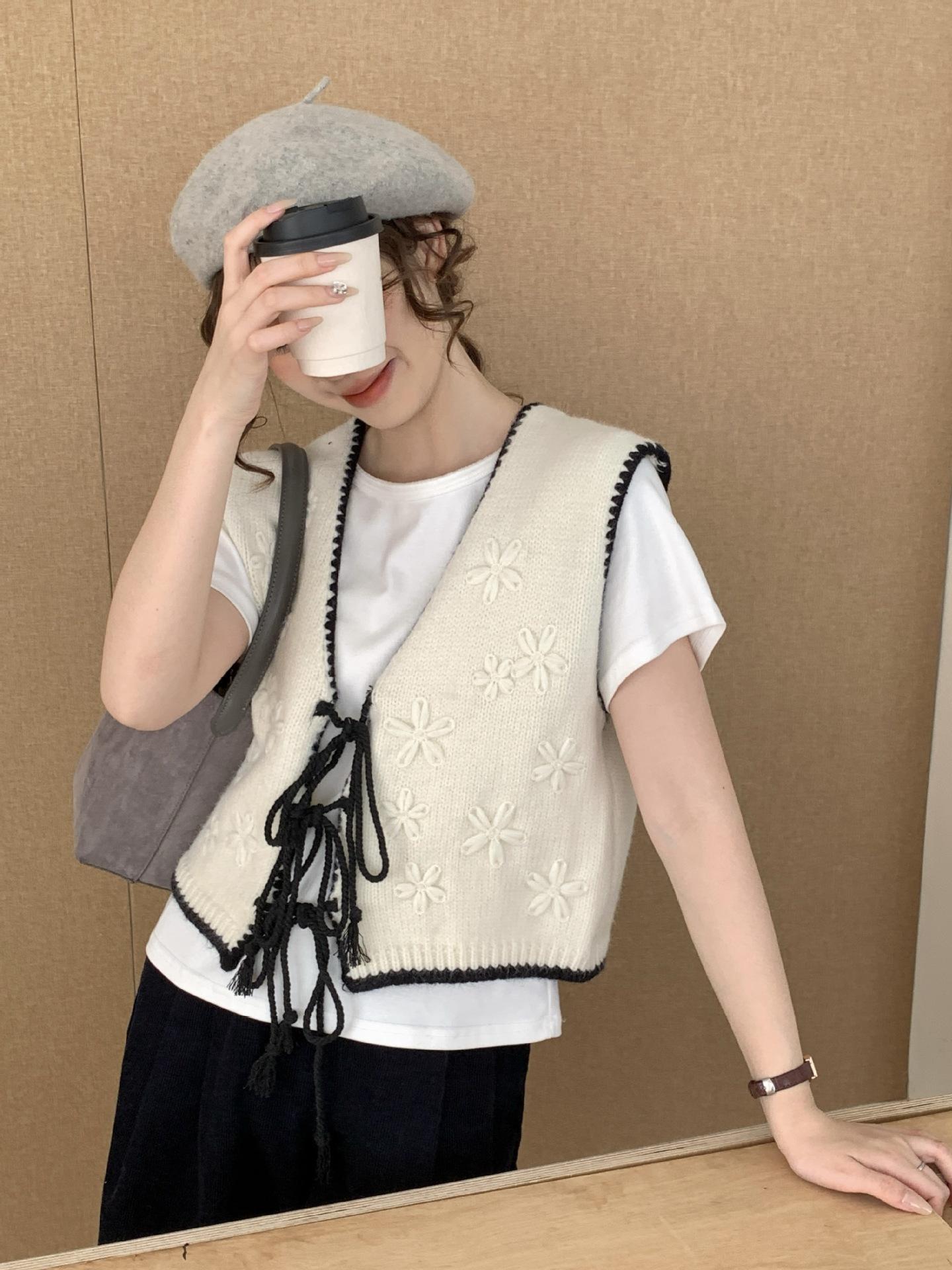 Principios de Otoño Nuevo Bordado de Flores Chaleco sin Mangas para Mujer Top de Tirantes Anudado Ropa Exterior Cárdigan de Punto Anudado Top para Superponer