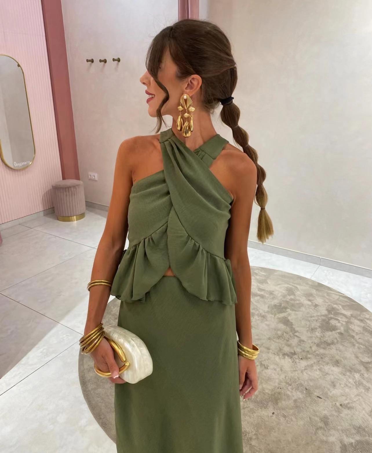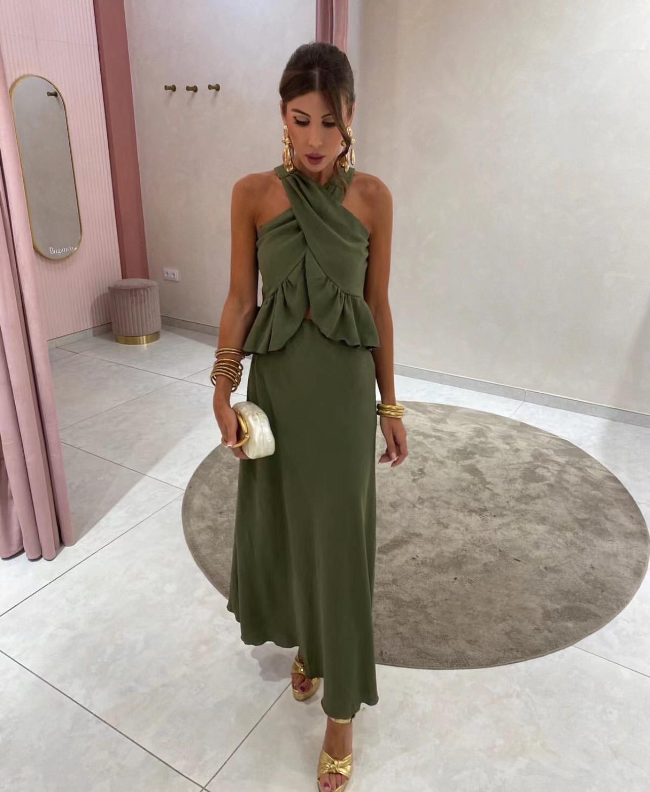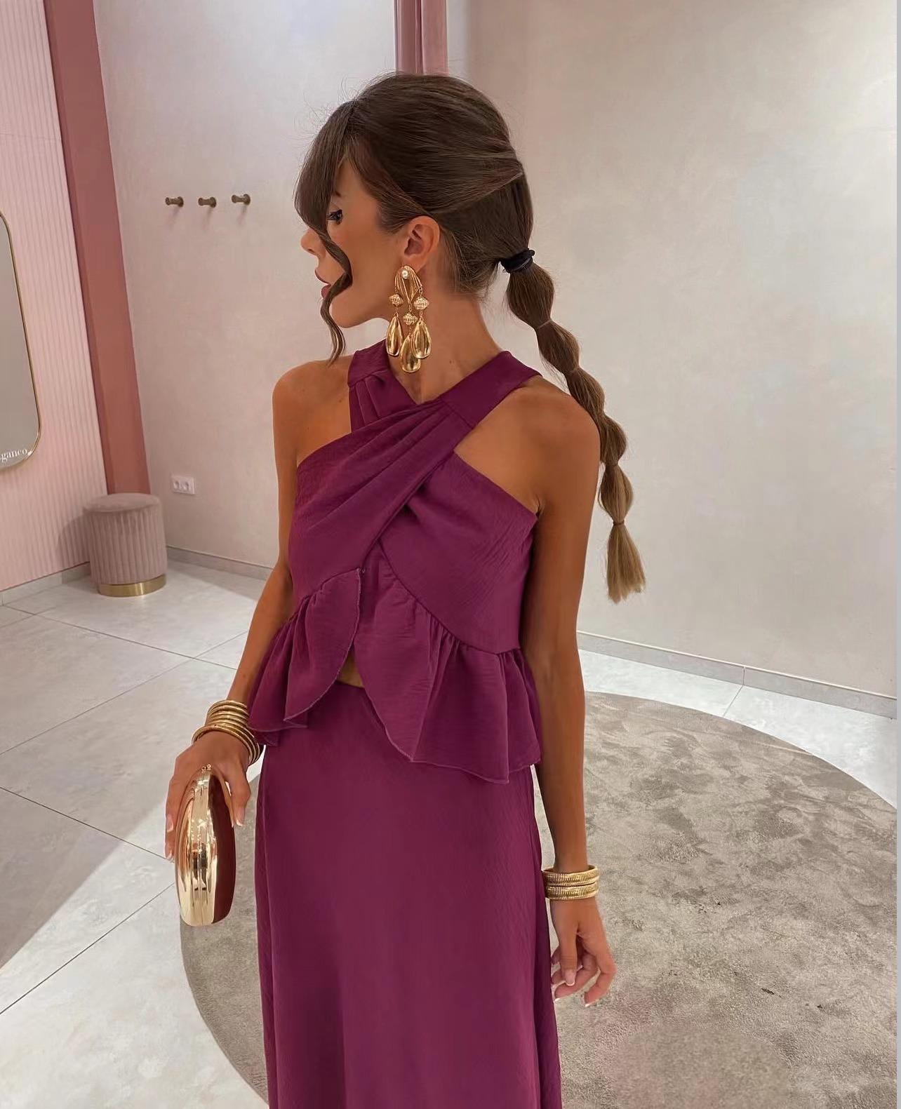 Exclusivo Transfronterizo Moda Europea y Americana Aliexpress Ins Popular Chaleco sin Mangas + Conjunto de Falda