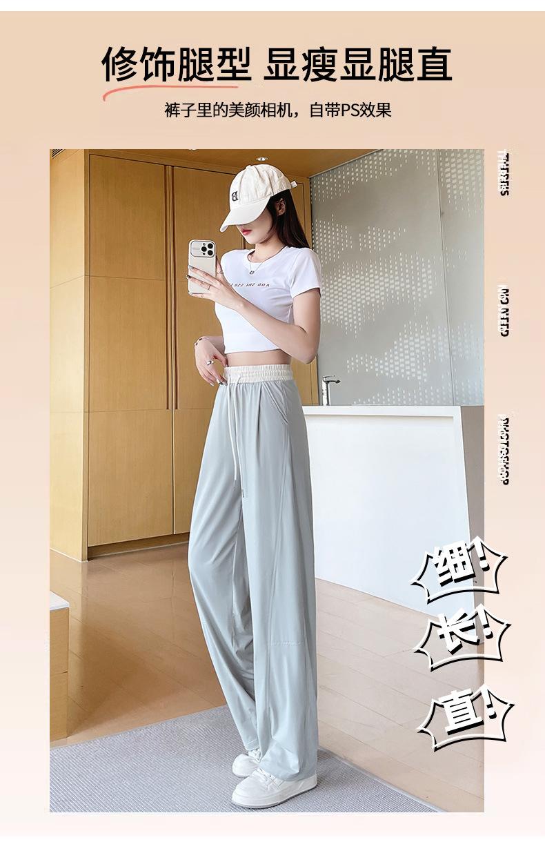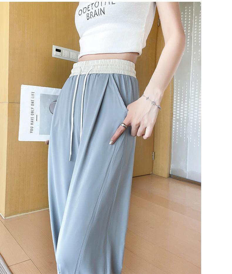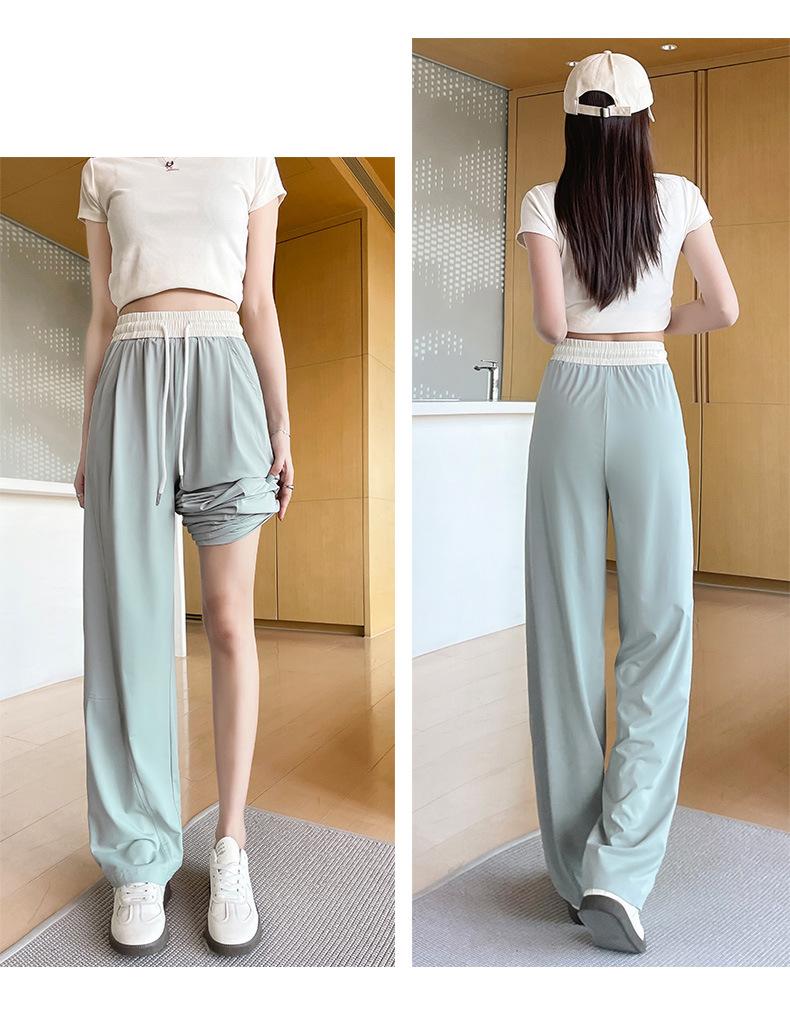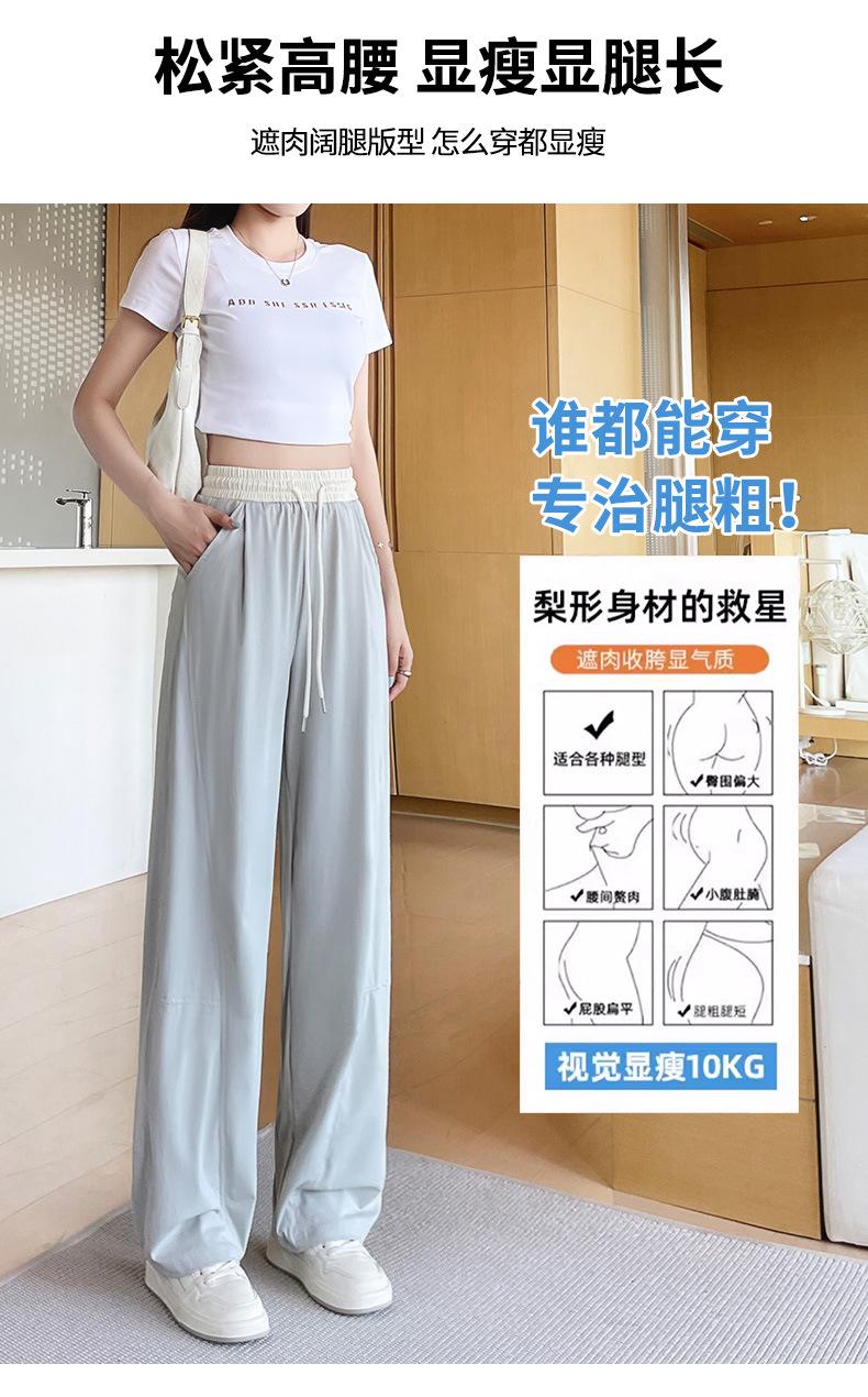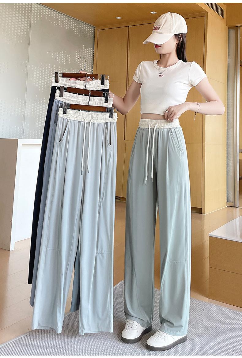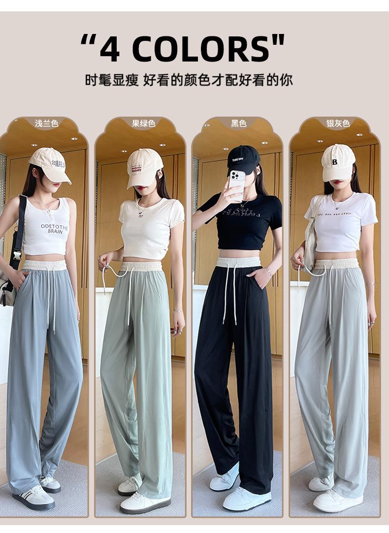 Pantalones de Pierna Ancha de Seda Helada Fresca y Fina de Verano para Mujer Protección Solar Casual Sueltos Drapeados Mascarilla Pantalones Rectos 2025 Nuevo Estilo