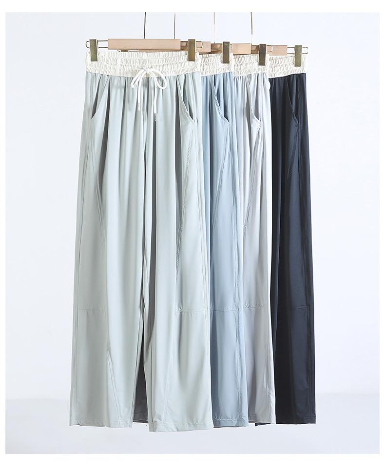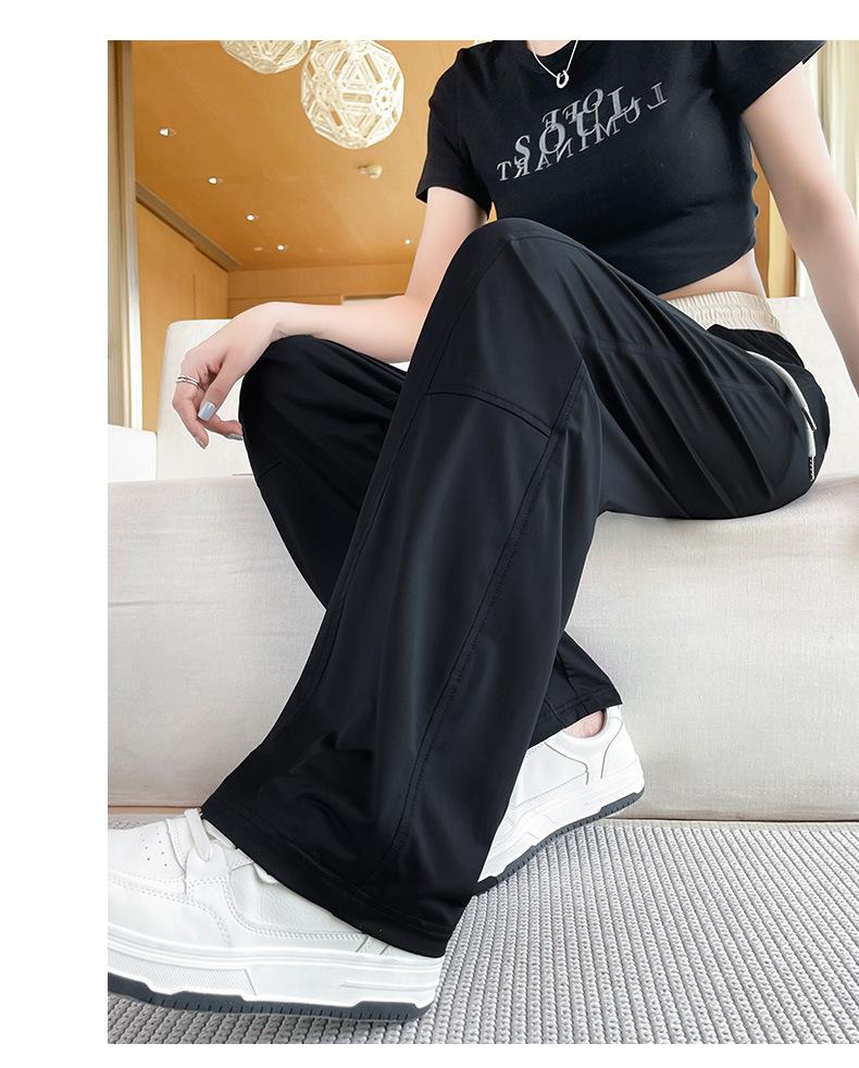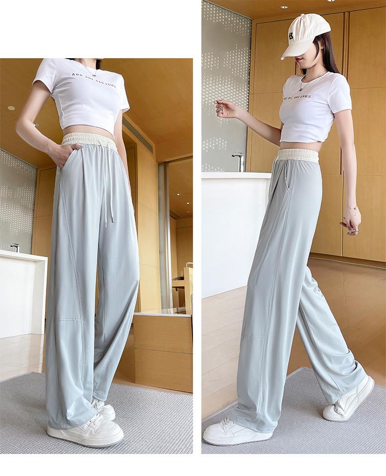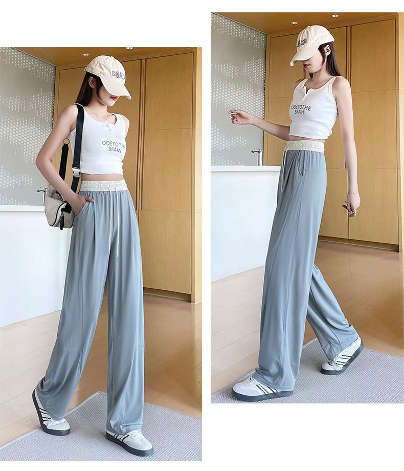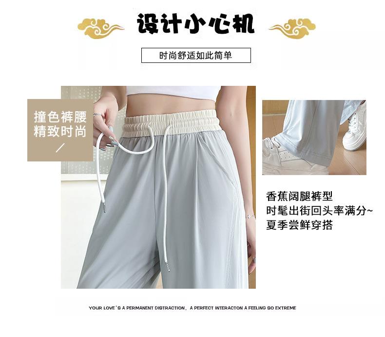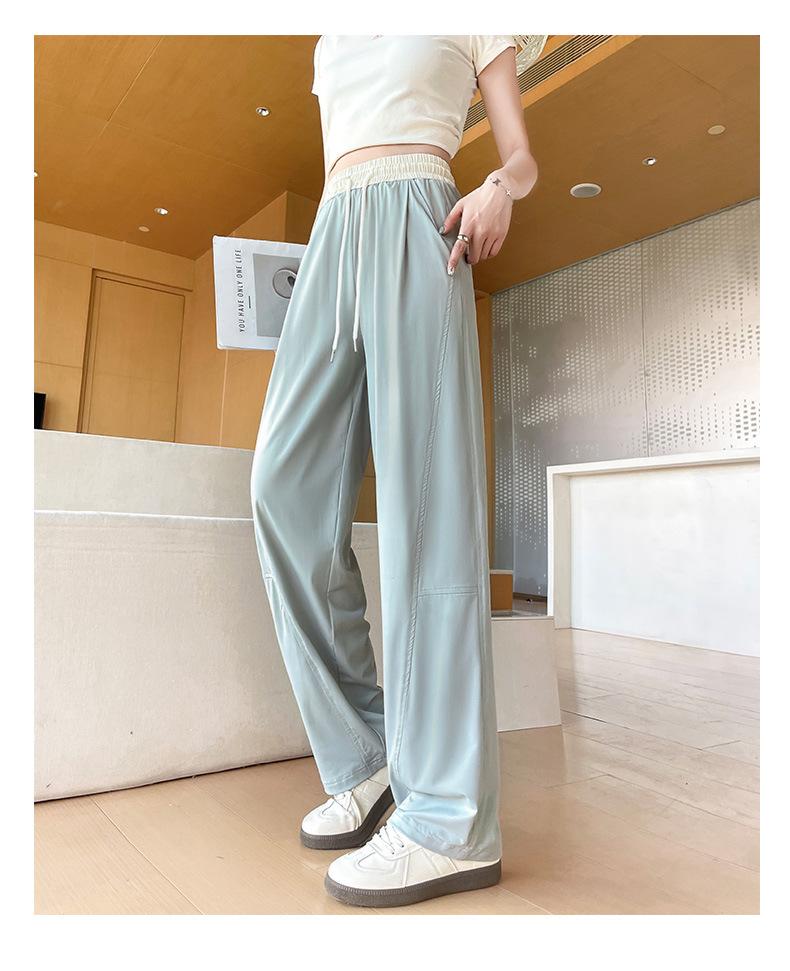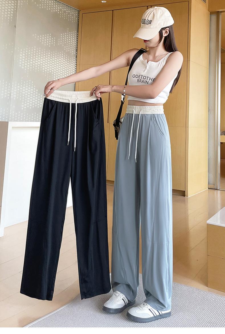 Pantalones de Pierna Ancha de Seda Helada Fresca y Fina de Verano para Mujer Protección Solar Casual Sueltos Drapeados Mascarilla Pantalones Rectos 2025 Nuevo Estilo